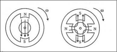 Faculdades Integradas de São Paulo (FISP) – Acionamentos Elétricos Professor Luiz Henrique Alves Pazzini 28 3.3 – Motores de Indução Trifásicos. 3.3.1 –Campo Girante Trifásico. A Figura 3.17 apresenta o campo girante produzido por uma estrutura de dois e quatro pólos magnéticos. A Figura também destaca um núcleo magnético cilíndrico representativo do rotor. Figura 3.17: Campo girante obtido por rotação mecânica das estruturas. Para obter-se o campo girante representado na Figura 3.17, é preciso arranjar conjuntos de bobinas que sejam convenientemente alojadas no estator. Quando essas bobinas forem percorridas por correntes trifásicas, irão produzir campos magnéticos, cuja resultante será um campo com intensidade constante, que gira exatamente como está representado na Figura 3.17. As correntes trifásicas em circuitos equilibrados são defasadas de 120o no tempo, e podem ser representadas matematicamente como: ia(t) = I.sen(ω.t) ib(t) = I.sen(ω.t – 120o) (3.18) ic(t) = I.sen(ω.t – 240o) Como visto, toda bobina percorrida por corrente elétrica produz um campo magnético cuja força magnetomotriz é dada por: F = N.i(t) (3.19) Sendo N o número de espiras da bobina. Consideremos três bobinas: a – a’; b – b’; c – c’; Para essas bobinas, a força magnetomotriz produzida em cada uma será dada por: Faa’(t) = N. I.sen(ω.t) Fbb’(t) = I.sen(ω.t – 120o) (3.20) Fcc’(t) = I.sen(ω.t – 240o) Se estas três bobinas forem dispostas em um mesmo eixo, como mostrada na Figura 3.18, o campo resultante seria nulo. Faculdades Integradas de São Paulo (FISP) – Acionamentos Elétricos Professor Luiz Henrique Alves Pazzini 29 Figura 3.18: Orientação das bobinas segundo um mesmo eixo. A verificação matemática seria simplesmente a composição da resultante, dada por: F(t) = N.I.[sen(ω.t) + sen(ω.t – 120o)+ sen(ω.t – 240o)] = 0 (3.21) Assim, para obter-se o campo girante é necessário que as três bobinas sejam dispostas defasadas em 120o cada, como mostrado na Figura 3.19. Figura 3.19: A) Disposição espacial das bobinas B) Representação dos eixos perpendiculares aos planos das bobinas. O campo magnético de cada bobina agirá segundo o eixo perpendicular ao seu plano, como representado na Figura 3.19. Adotando o eixo da bobina aa’ como referência, e considerando as demais bobinas defasadas de um ângulo θ = 120o (bb’) e θ = 240o (cc’), tem-se como resultante do campo magnético: F(t) = Faa’.cos 0o + Fbb’.cos 120o + Fcc’.cos 240o (3.22) F(t) = N.I.[sen(ω.t).cos 0o + sen(ω.t – 120o).cos 120o + sen(ω.t – 240o).cos 240o] (3.23) O desenvolvimento trigonométrico dessa expressão resulta em: F(t) = 1,5.N.I. sen(ω.t) (3.24) A força magnetomotriz irá produzir um campo magnético girante com velocidade e intensidade constantes. A velocidade depende da freqüência das correntes aplicadas ao Faculdades Integradas de São Paulo (FISP) – Acionamentos Elétricos Professor Luiz Henrique Alves Pazzini 30 conjunto de bobinas trifásicas. A Figura 3.20 mostra graficamente o campo girante em quatro instantes distintos. Figura 3.20: Representação do campo girante. A Figura 3.21 mostra uma representação Fasorial do campo girante resultante. Figura 3.21: Representação Fasorial do campo girante. Caso se troque a alimentação de duas bobinas, isto é, injetar a corrente da bobina b na bobina c e, ao mesmo tempo, injetar a corrente da bobina c na bobina b, tem-se como resultado a mudança no sentido de rotação do campo girante. 3.3.2 – Velocidade de sincronismo. A velocidade de rotação do campo girante é chamada de velocidade de sincronismo ou síncrona. O valor desta velocidade depende da maneira como estão distribuídas e ligadas as bobinas do estator do motor, bem como da frequência da corrente que circula pelo enrolamento estatório. Esta velocidade pode ser determinada por: Faculdades Integradas de São Paulo (FISP) – Acionamentos Elétricos Professor Luiz Henrique Alves Pazzini 31 p fns .60 = (3.25) sendo: ns = velocidade síncrona do campo girante [rpm]; f = frequência da tensão de alimentação [Hz]; p = número de pares de pólos. Observa-se que: a) um par de pólos é obtido pela montagem de 3 bobinas no estator, dispostas a 120o no espaço, e alimentados por um sistema trifásico; b) para se obter 2 pares de pólos deve-se montar sobre o estator dois conjuntos de 3 bobinas, defasadas de 60o no espaço, e alimentar cada conjunto constituído de bobinas alternadas pelo sistema trifásico; c) considerando que a frequência de rede no Brasil é 60 Hz, a velocidade síncrona de um motor com 1 par de pólos é 3.600 rpm, com 2 pares 1.800 rpm e assim sucessivamente. A Figura 3.22 Ilustra os enrolamentos de um motor de 1 par de pólos e outro de 2 pares de pólos, no qual observa-se que no motor de 4 pólos há 3 pares de duas bobinas em série, portanto alimentadas pela mesma fase. Figura 3.22: Estatores com 2 e 4 pólos. Faculdades Integradas de São Paulo (FISP) – Acionamentos Elétricos Professor Luiz Henrique Alves Pazzini 32 3.3.3 – Princípio de funcionamento. Suponhamos colocar no interior do estator uma bobina constituída por uma única espira fechada, livre para girar em torno de um eixo que coincide com o eixo de simetria do estator. Excitando-se o estator com uma corrente senoidal trifásica, irá surgir, como visto, um campo girante. Para efeito de análise vamos substituir o campo girante do enrolamento trifásico do estator por um par de pólos (Norte e Sul), girando com uma velocidade angular ωs, conforme representado na Figura 3.23 Figura 3.23: Campo produzido por um par de pólos girantes. Inicialmente a espira encontra-se parada e “vê” o campo com velocidade ωs, portanto, por efeito da variação de fluxo, produzida pelo campo girante que se desloca em volta da espira, gera-se nesta uma força eletromotriz induzida, e como ela está em curto circuito, uma corrente induzida cir