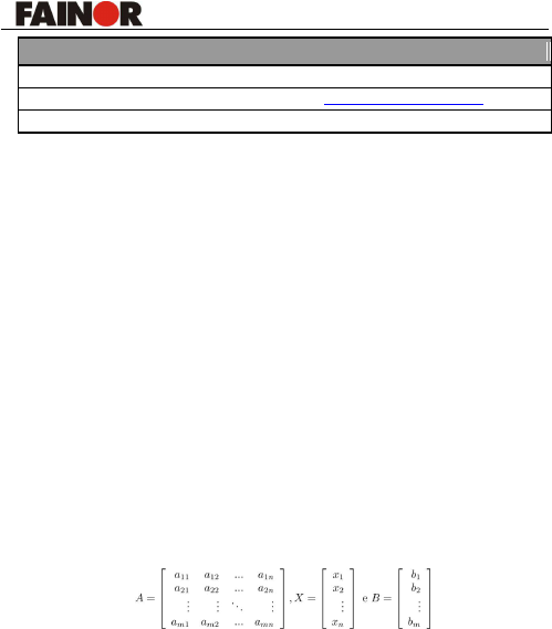 Faculdade Independente do Nordeste Credenciada pela Portaria MEC 1.393, de 04/07/2001 publicada no D.O.U. de 09/07/2001. CURSOS DE ENGENHARIA DA PRODUÇÃO/CIVIL/ELÉTRICA Componente Curricular: ÁLGEBRA LINEAR Professor: Márcia Azevedo Campos marciazevedo70@hotmail.com Aluno(a): Sistemas Lineares Equações Lineares Vários problemas nas áreas científica, tecnológica e econômica são modelados por sistemas de equações lineares e requerem a solução destes no menor tempo possível. Definicão. Uma equação linear em n incógnitas x1,...,xn é uma equação da forma a1x1 + ... + anxn = b, onde a1,...,an, b são constantes reais. Uma solução para a equação linear acima é um conjunto de números reais s1, s2, ..., sn tais que quando substituímos x1 = s1, x2 = s2, ..., xn = sn,, a equação é satisfeita. Sistemas de Equações Lineares Um sistema de equações lineares é simplesmente um conjunto de equações lineares. Definicão. Um sistema de m equações lineares em n variáveis (ou incógnitas) é um conjunto de equações lineares da forma S = { onde aij, bk para i = 1, ... , m, j = 1, ... , n e k = 1, ... , m, são constantes reais, chamados os coeficientes do sistema. Usando a notação de matrizes e, especialmente, a maneira como o produto de matrizes foi definido, o sistema linear acima pode ser representado pela equação matricial A . X = B, onde . A matriz A é chamada a matriz do sistema. Sistemas Lineares Homogêneos Definição. Um sistema linear da forma S = { ou seja, A . X = 0, é chamado um Sistema Linear Homogêneo. Um sistema linear homogêneo sempre tem solução, pois todo sistema homogêneo admite pelo menos a solução nula (também chamada solução trivial): x1 = x2 = ... = xn = 0. Faculdade Independente do Nordeste Credenciada pela Portaria MEC 1.393, de 04/07/2001 publicada no D.O.U. de 09/07/2001. Em particular, segue então que ele necessariamente possui infinitas soluções. Exemplo 1. O sistema linear homogêneo possui uma única solução, a solução nula x = y = z = 0. Resolução de Sistemas Lineares Operações Elementares Um método para resolver um sistema linear é substituir o sistema inicial por outro que tenha o mesmo conjunto solução do primeiro, ou seja, equivalente. O novo sistema é obtido após a aplicação de uma série de operações que simplificam as equações do sistema que tem a propriedade especial de não alterar o conjunto solução. Estas operações são chamadas Operações elementares: 1. Permutar duas equações do sistema. (Li Lj) 2. Substituir uma equação pela mesma equação multiplicada por um escalar diferente de zero. 3. Substituir uma equação pela mesma equação somada a outra equação multiplicada por um escalar diferente de zero. Assim podemos considerar apenas a matriz de coeficientes do sistema, chamada matriz aumentada: As operações elementares serão efetuadas sobre as linhas desta matriz. Teorema. Se dois sistemas lineares AX = B e CX = D são tais que a matriz aumentada [C|D] ´e obtida de [A|B] aplicando-se operações elementares, então os dois sistemas possuem as mesmas soluções. Sistemas que possuem as mesmas soluções são chamados Sistemas Equivalentes. Método de Gauss: Matriz dos coeficientes é uma matriz quadrada ~ [ ] Método da Matriz Inversa: Se o determinante da matriz dos coeficientes for diferente de zero, temos que se existir A -1 então X = A -1 . B Regra de Cramer: Se A . X = B é um Sistema de m equações e n incógnitas ( m = n) tal que det A ≠ 0, inversível, o sistema tem uma única solução dada por: x1 = ; x2 = ; ... ; xn = onde Aj é a matriz obtida substituindo as entradas da j-ésima coluna de A pelas entradas da matriz B dos resultados. Característica de uma Matriz _ Por meio de Operações sobre Linhas transforma-se a matriz associada ao sistema na forma Escada; _ Designa-se por A a matriz ampliada do Sistema; Faculdade Independente do Nordeste Credenciada pela Portaria MEC 1.393, de 04/07/2001 publicada no D.O.U. de 09/07/2001. _ E por B a matriz em forma de escada. Contida em B temos a matriz V dos coeficientes. Def.1: Chama-se característica de A ou CA o número de linhas com elementos não todos nulos da matriz B. Def.2: Chama-se característica de V ou CV o número de linhas com elementos não todos nulos da matriz V. Def.3: Quando CA = CV se dirá simplesmente que a Característica de B é C. Def.4: Chama-se grau de liberdade de um sistema de equações lineares à diferença g = n – C, onde g é o número de variáveis livres. Sendo m o número de equações do Sistema e n o número de incógnitas, temos: _ Se CA > CV o Sistema é Incompatível; _ Se CA = CV = C o Sistema é Compatível: - Se C = n é Compatível Determinado, e admite apenas uma solução; - Se C < n é Compatível Indeterminado, e admite infinitas soluções. EXERCÍCIOS 1. Classificar e Resolver os Sistemas: a) S = { b) S = { c) S = { d) S = { e) S = { f) S = { g) S = { 2. Utilize a regra de Cramer para resolver o Sistema: { 3. Pelo método da Inversão de Matrizes, sabendo que (A / I) ~ ( I / A-1) resolver o Sistema: { 4. Usando operações sobre linhas, estabeleça condições em k para que o sistema S: { seja compatível. 5. Discuta quanto às suas soluções o sistema, em função de k: S = { 6. Estudar Matriz Identidade e Matriz Inversa: pág 483 de Steinbruch, ex. grupo A.37, ex.1 a 7 7. Estudar Resolução de Sistemas pelo Método Matricial: pág571 de Steinbruch, ex. 20 e 21 8. Exercícios Propostos: Sistemas pág 576 de Steinbruch, exer.do grupo A.46.1 – 1 ao 37 Faculdade Independente do Nordeste Credenciada pela Portaria MEC 1.393, de 04/07/2001 publicada no D.O.U. de 09/07/2001. ENGENHARIAS DA PRODUÇÃO/ CIVIL/ELÉTRICA Componente Curricular: ÁLGEBRA LINEAR Professor: Márcia Azevedo Campos marciazevedo70@hotmail.com Aluno(a): EXERCÍCIOS AVALIATIVOS – I UNIDADE Valor: 2,0 1) Sobre Sistemas de Equações Lineares associe V caso as afirmações sejam Ver
