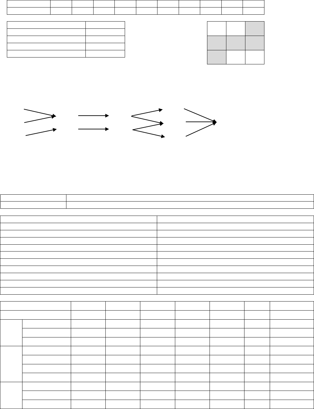 S2 - SIMULADO 2 - GESTÃO DA PRODUÇÃO ARRANJO FÍSICO + PLANEJAMENTO AGREGADO - PROF FÁBIO – 2016 Cinco setores, A, B, C, D e E, produtivos devem ser localizados. Supondo que o custo unitário do deslocamento seja o tabelado e em função da distância (modo direto), propor a melhor alternativa de arranjo físico (espaço disponível hachurado e utilizando modelo carga-distância), sabendo que esses cinco setores ocupam áreas quadradas iguais de 100 m2 cada qual. Utilizar os dados apresentados abaixo. Setores A-B A-C A-D A-E B-C B-D B-E C-D C-E D-E Quantidades 10 20 30 40 50 50 40 30 20 10 Distância Custo Até 10m 1,00 De 11 a 15 m 1,20 De 16 a 20 m 1,50 Acima de 21 m 2,00 custo de movimentação espaço disponível Uma empresa do ramo mobiliário deve montar apenas mesas. As operações e os respectivos tempos (em segundos) e a sequência são dados na figura abaixo. Devem ser montadas 800 mesas por dia e o tempo útil diário de cada operador é de 8 horas. Maximizar a eficiência da linha. A (17) I (15) D (18) F (20) B (20) J (11) L (14) E (16) G (21) C (15) K (10) A companhia X produz mesas. Você auxiliará na decisão final utilizando o método da tentativa e erro na elaboração das estratégias de produção que sempre atenderá a demanda prevista. Utilizando os dados abaixo, qual o melhor plano que tem a oferecer, hora extra nunca maior que 15% da produção no regime normal? (elaborar no mínimo 3 estratégias, com 2 estratégias auxiliares, ambas produzindo apenas no regime normal, uma tendo capacidade constante ao longo dos 4 meses, redefinindo os numero de funcionários e outra variando a capacidade produtiva, produzindo o mínimo estoque possível) Mês Jan Fev Mar Abr total Demanda prevista 2300 2500 2800 2600 10200 Discriminação Valor (R$) Custo de contratação de pessoal 300 $/funcionário Custo de demissão de pessoal 600 $/funcionário Custo de estocar 5 $/unidades.mês Custo regular de produção 30 $/unidade Custo de produção em hora extra 45 $/unidade Custo de subcontratação 60 $/unidade Produção por funcionário 10 unidades/mês Estoque inicial janeiro 200 unidades Estoque final abril (no mínimo) 100 unidades Nº inicial de funcionários 232 funcionários mês Jan Fev Mar Abr Total $ Total $ demanda prevista 2300 2500 2800 2600 10200 produção normal 30 hora extra 45 subcontrat 60 funcionários nº inicial 232 admissão 300 demissão 600 nº final estoques inicial 200 final médio 5