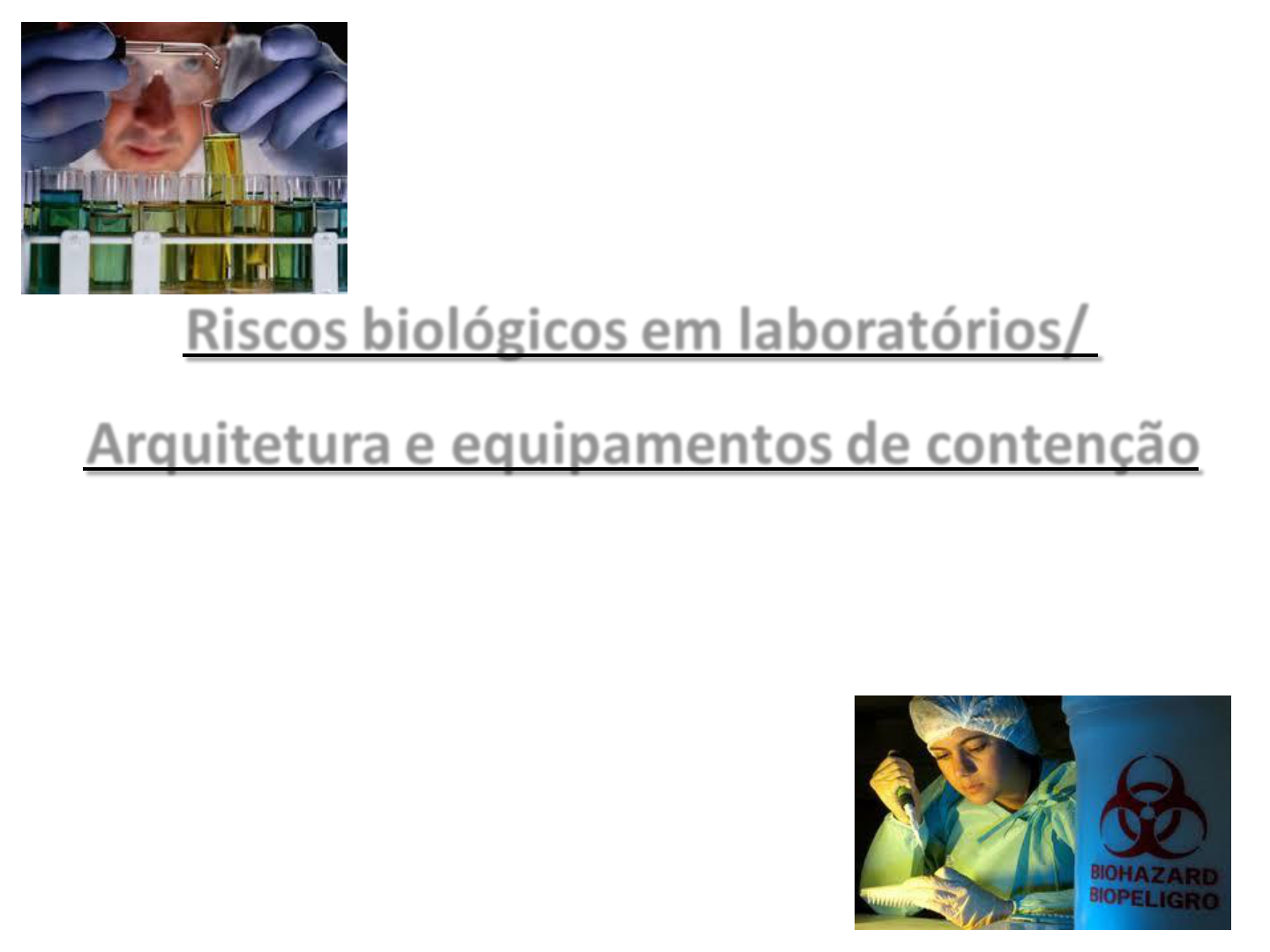 Riscos biológicos em laboratórios/ Arquitetura e equipamentos de contenção Bioética e Biossegurança Msc. Dalvania Pinho Domingues 2013 Agentes de Risco Segundo o Ministério do Trabalho (Portaria do MT No.3214 de 08/06/78): “Entende-se por agente de risco, qualquer componente de natureza física, química, biológica que possa comprometer a saúde do Homem, dos animais, do ambiente ou a qualidade dos trabalhos desenvolvidos”. Norma Regulamentadora No.5 do Ministério do Trabalho Divide-se em cinco grupos: Grupo 1- Riscos Físicos Grupo 2- Riscos Químicos Grupo 3- Riscos Biológicos Grupo 4- Riscos de Acidentes Grupo 5- Riscos Ergonômicos Arquitetura em Laboratórios EQUIPAMENTOS DE PROTEÇÃO INDIVIDUAL (EPIs) EQUIPAMENTOS DE PROTEÇÃO COLETIVA (EPCs) Equipamentos ACIDENTES EM LABORATÓRIO CAUSAS: •Falta de treinamento, conhecimento, ou experiência •Falta de cuidado (sem cautela) •Fadiga •Decide tomar um caminho mais curto •Falta de tempo suficiente; trabalho realizado com muita rapidez •Decide NÃO seguir as práticas de segurança •Não acredita que seja perigoso N° de Acidentes Condutas Instalações Biossegurança e Arquitetura em Laboratórios Níveis de Biossegurança: Baseiam-se no projeto e construção, as barreiras de contenção, os equipamentos de segurança individual e coletiva e, ainda, os procedimentos, práticas e técnicas laboratoriais. Considera-se principalmente o agente biológico ali manipulado. Biossegurança e Arquitetura em Laboratórios NB1 -Manipulação os microrganismos da classe de risco 1. Ex: Lactobacillus sp. e Bacillus subtilis. -Não é requerida nenhuma característica de desenho, além de um bom planejamento espacial e funcional e a adoção de boas práticas laboratoriais. Níveis de Biossegurança NB2 Manipulação microrganismos da classe de risco 2. Ex: Schistosoma mansoni e Vírus da Rubéola Laboratórios clínicos ou hospitalares de níveis primários de diagnóstico. Adoção das boas práticas Uso de barreiras físicas primárias: cabines de segurança biológica equipamentos de proteção individual) Uso de barreiras físicas secundárias (desenho e organização do laboratório). NB3 -Manipulação de microrganismos da classe de risco 3 ou para manipulação de grandes volumes e altas concentrações de microrganismos da classe de risco 2. Ex: Bacillus anthracis e HIV. -São requeridos além dos itens referidos no nível 2, desenho e construção laboratoriais especiais. -Deve ser mantido controle rígido quanto a operação, inspeção e manutenção das instalações e equipamentos e o pessoal técnico deve receber treinamento específico sobre procedimentos de segurança para a manipulação destes microrganismos. NB4 ou laboratório de contenção máxima -Manipulação de microrganismos da classe de risco 4 -Mais alto nível de contenção, além de representar uma unidade geográfica e funcionalmente independente de outras áreas. Esses laboratórios requerem, além dos requisitos físicos e operacionais dos níveis de contenção 1, 2 e 3, barreiras de contenção (instalações, desenho equipamentos de proteção) e procedimentos especiais de segurança. Ex: Vírus Ebola e Vírus Lassa Barreiras de contenção Todo tipo de equipamento que se coloca entre o pesquisador e seu material de pesquisa, com a finalidade de protegê-lo contra possíveis riscos biológicos, químicos e físicos. Equipamentos de Proteção Individual Equipamentos de Proteção Coletiva - Equipamentos de proteção individual (EPI) - Equipamentos de proteção coletiva (EPC) Barreiras de contenção primária Barreiras de contenção secundária - Desenho e estrutura física dos laboratórios Barreiras de contenção BOAS PRÁTICAS DE LABORATÓRIO Equipamentos de proteção individual Portaria 3214-NR6 (08/06/78) “Todo dispositivo de uso individual, de fabricação nacional ou estrangeira, destinado a proteger a saúde e a integridade física do trabalhador”. Distribuição gratuita. Luvas; Pro-pé (botas); Jaleco; Óculos; Protetor auditivo; EQUIPAMENTOS DE PROTEÇÃO INDIVIDUAL - Protetor facial; - Cremes para a pele; - Pêra de borracha; - Máscara com filtro; Protetor respiratório; Capacetes de segurança. EQUIPAMENTOS DE PROTEÇÃO INDIVIDUAL - Chuveiros de descontaminação; - Lava-olhos; - Capela química; EQUIPAMENTOS DE PROTEÇÃO COLETIVA - Balde de areia; - Extintores de incêndio; - “Sprinkle” – expele água quando detecta fumaça; - Luz ultra violeta; - Filtros; - Cabines de segurança biológica. EQUIPAMENTOS DE PROTEÇÃO COLETIVA CAPELA # A exaustão da capela é um item importantíssimo e deve ser verificada periodicamente pela medida de velocidade facial, feita por um anemômetro e expressa em metros/segundo. CABINE DE SEGURANÇA QUÍMICA CABINE DE FLUXO LAMINAR São equipamentos construídos para proteger "o que' estamos manipulando, ou seja, protegem o "produto". Usualmente chamamos todas as Cabinas de Fluxo Laminar e as Cabinas de Segurança Biológica como “Cabina de Fluxo Laminar”. Existem, porém, diferenças conceituais e normativas. Estes equipamentos podem ser de Fluxo Horizontal ou Vertical, porém não há recirculação do ar. Todo ar que entra, passando por um Pré-Filtro, passa por um Filtro Absoluto e pelo produto e sai do equipamento. Cabines de segurança biológica (CSB) Utilizadas como barreiras primárias para evitar a fuga de aerossóis ao meio ambiente. Micropartículas sólidas ou líquidas, com dimensão aproximada entre 0,1 e 50 , que podem permanecer em suspensão por várias horas. 1 = 1/1000 mm Filtros HEPA (High Efficiency Particulate Air) Feitos de microfibras de papel de vidro; Não passam partículas 0,3 m; Removem contaminantes microscópicos do ar; 99,97% eficiência Filtros ULPA (Ultra Low Penetration Air) O que se tem de mais avançado em filtros; O custo pode chegar a 150% o do filtro HEPA; Não passam partículas 0,1 m; 99,999% eficiência. Divididas em classes,