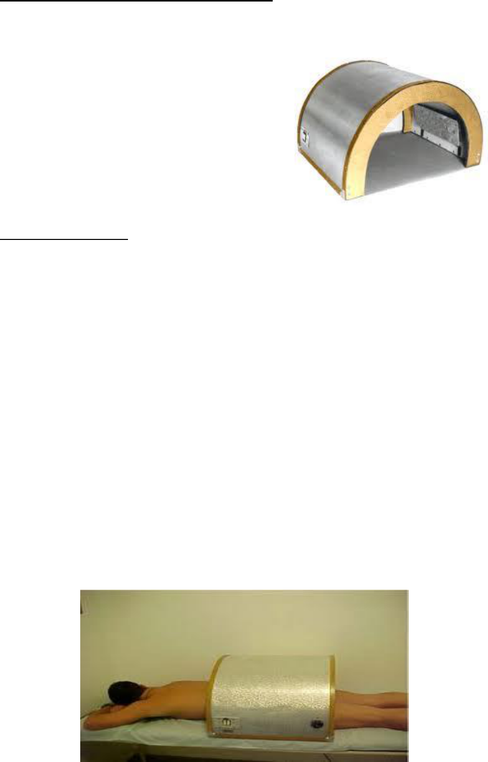 TERMOTERAPIA – calor superficial FORNO DE BIER O Forno de Bier, assim denominado em homenagem ao seu inventor Dr. August Bier, é um compartimento que se coloca por sobre a região a ser tratada, dentro do qual é gerado calor a partir de resistências elétricas. Equipamento confeccionado em alumínio ou vidro, com 2 resistências de amianto e uma válvula de termostato. Técnica de Aplicação: Verificar utilização de objetos plásticos e metálicos e retirá-los. Sobre a área a ser tratada não pode usar roupa sintética. Verificar a integridade da pele a ser tratada. Deve estar íntegra (s/ lesões), limpa e sem qualquer uso de pomadas ou cremes. Testar a sensibilidade da região a ser tratada. Não deve ser aplicado em regiões com alteração de sensibilidade, pode ocasionar queimadura. Temperatura: 40º à 45ºC – dose terapêutica, temperatura ideal sem provocar sudorese. Contudo, sempre perguntar ao paciente sua sensação térmica. A forma de aplicação do forno de Bier e bastante simples: Constatada a necessidade da aplicação do calor superficial sobre determinada região do paciente, o mesmo será colocado em uma posição confortável (se for a coluna lombar, por exemplo, coloca-se o paciente em decúbito ventral, com uma almofada sob o abdome). Coloca-se o forno de Bier sobre a região, que deverá estar despida, e em seguida coloca-se um cobertor de flanela sobre o forno para fechar as aberturas laterais, impedindo assim, a perda de calor. O tempo de aplicação do forno geralmente varia de 20 a 30 minutos. Todo esse tempo de aplicação do calor é necessário, pois o forno não tem calor suficiente para elevar a temperatura do corpo com facilidade, devido à capacidade de dissipação do organismo e à baixa capacidade de produção de calor do forno. Alguns terapeutas sugerem pré-aquecer o forno, no entanto, essa metodologia não fará diferença significativa. Como cuidados, é importante informar ao paciente que ele não pode ficar se movimentando sob o forno, já que existe o risco de queimadura; avisar ao paciente que qualquer aumento de calor, ou qualquer sensação incomum como tontura etc. deve-se informar imediatamente ao terapeuta. Principais desvantagens do forno de Bier Difícil controle da temperatura, pois o termostato (que não faz parte de todos os fornos) não faz um controle de temperatura eficiente devido à variação de temperatura interna. A inexistência de um cronômetro (timer) que desligue o forno no momento determinado. Isso obriga o terapeuta marcar em seu próprio relógio, ou adquirir um despertador. É raro encontrar fornos que sejam pequenos, sendo assim, aplicamos sempre em grandes áreas, por exemplo: se quisermos aplicar o forno no joelho, temos que aplicar em parte da perna e parte da coxa. Devido à baixa penetração e à grande área do forno, é necessário um tempo bastante grande de exposição para produzir o efeito fisiológico. Isso não só toma muito tempo do terapeuta, como proporciona um consumo de energia elevado. Estas desvantagens são os principais motivos do forno de Bier estar entrando em desuso, No entanto, ainda é utilizado. Indicações Aquecimento local para pré-cinesioterapia, massoterapia; Contratura muscular; Dor crônica Contra-indicações Caixa craniana; Alterações vasculares; Edemas; Infecções e inflamações; Tumores; Alteração de sensibilidade; Queimaduras; Gestantes (lombar) BANHO de PARAFINA Forma de calor superficial, máximo 3mm de profundidade. gabinete metálico externo tanque metálico interno *entre os dois tanques é cheio d’água, para aquecimento em banho-maria do óleo que irá derreter a parafina (a partir dos 30ºC) óleo mineral e parafina *Temperatura terapêutica do banho de parafina é entre 40 e 45oC, bom aquecimento mas sem risco de queimadura. VANTAGENS: meio de produção de calor reciclável e durável baixo custo = apenas o gabinete é caro fácil aplicabilidade em MMSS e MMII calor mais duradouro que a compressa e o forno de Bier DESVANTAGENS: inviabilidade de ser trocada a cada paciente -proliferação de fungos, pois é um meio de cultura (40 e 45ºC não é suficiente para eliminar fungos e bactérias); acúmulo de fâneros (pele, unhas, restos de pele) *deve-se retirar a parafina endurecida e ferver em óleo periodicamente a parafina não tem aplicação imediata, leva de 2 à 3h para alcançar a temperatura ideal o óleo mineral não suja, tudo ocorre na parafina Técnica de Aplicação: I. Imersão: Somente para pés e mãos = fator limitante Mergulha e retira o membro cerca de 5 vezes = película de + ou - 3mm. Cobre com plástico e toalha felpuda (algodão), mantidos de acordo com o objetivo. *Hiperemia: 15 à 20min = temperatura mantida por um bom tempo, perda de calor muito pequena. II.Pincelão: Com um pincel passar a parafina Também colocar um plástico e uma toalha Fator limitante = sujeira no local de trabalho *Tricotomia: depilação antes da aplicação Cuidados: -retirar objetos de qualquer tipo (anel, relógio,pulseira e também esmalte) -verificar a integridade da pele (micoses, ferimentos,retirada de cutícula(ferida)) *Teste de Sensibilidade: quente e frio. Dois tubos iguais, um com água gelada e outro com água quente = sensibilidade é subjetiva. Depois de mergulhada a primeira vez, não se deve mais mexer a região: trinca a parafina e na outra imersão penetra, provocando desconforto = região estava dessensibilizada. Indicações contraturas musculares distúrbios articulares (artrites) nodos de Bourchard = falange média ou proximal nodos de Habberdeen = falange distal (dor ao movimentar quando não está aquecido) pré-massoterapia de mão e perna Contra-indicações face distúrbios de sensibilidade micoses processos hemorrágicos ativos ou processos cicatriciais incompletos processos infecciosos independente de controle por antibiótico processos neoplásicos: tumores de pele queimaduras em qualquer fase = devido a formação d