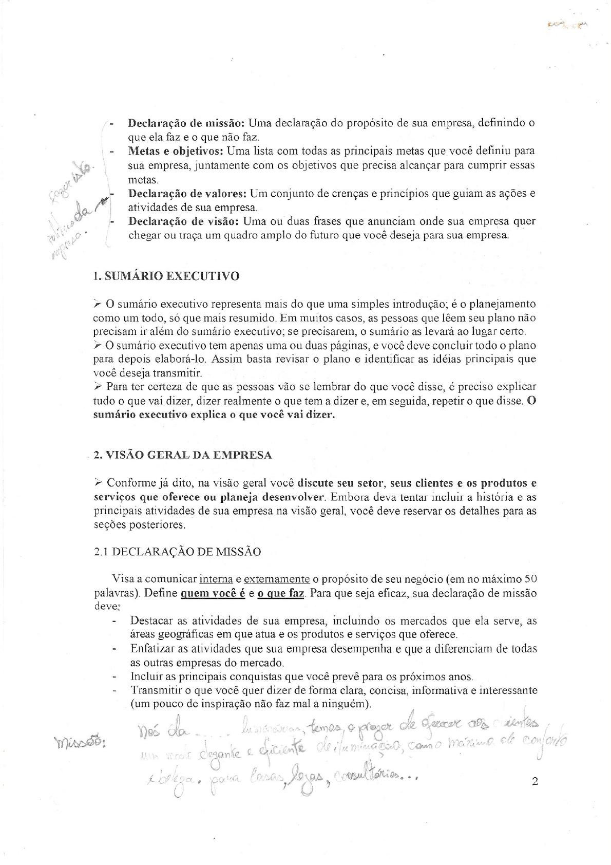 como um todo, só que mais resumido. Em muitos casos, as pessoas que lêem seu plano não