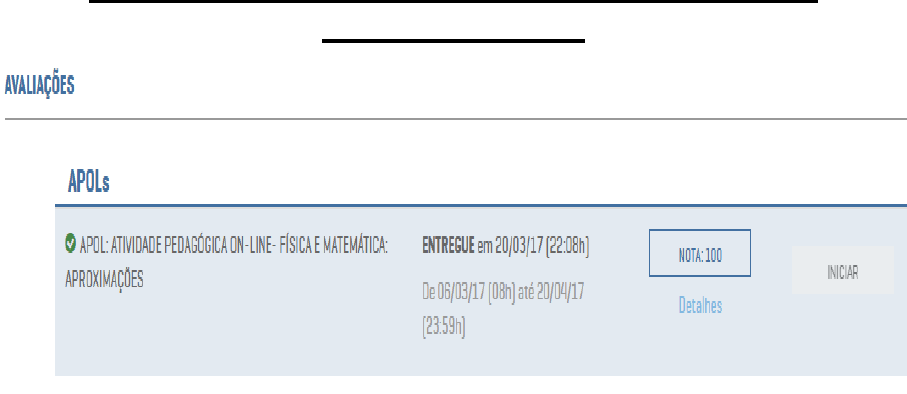APOL – NOTA 100 - DE FÍSICA E MATEMÁTICA: APROXIMAÇÕES Questão 1/5 - Física e Matemática: Aproximações Leia o fragmento se texto a seguir: “Em relação ao papel da Matemática no ensino de Física, a habilidade estruturante desempenha uma função muito importante, pois diz respeito à formulação do pensamento matemático, à problemática ou o conhecimento em questão”. Após esta avaliação, caso queira ler o texto integralmente, ele está disponível em: PIETROCOLA, Maurício; KARAM, Ricardo Avelar Sotomaior. Habilidades Técnicas Versus Habilidades Estruturantes: resolução de problemas e o papel da matemática como estruturante do pensamento físico. Alexandria Revista de Educação em Ciência e Tecnologia, v. 2, n.2, p. 190, jul. 2009. De acordo com o texto-base Habilidades Técnicas Versus Habilidades Estruturantes, em relação à habilidade estruturante, analise as afirmativas a seguir, assinalando V para as verdadeiras e F para as falsas. ( V ) É a capacidade de se fazer o uso organizacional da Matemática em domínios externos a ela (especialmente em Física). ( V ) É a habilidade de pensar matematicamente os fenômenos do mundo físico, ou, de ler esse mesmo mundo por meio de uma linguagem matemática, ou ainda, de estruturar o mundo físico por meio da matemática. ( F ) É a capacidade de manipular tecnicamente gráficos, tabelas, dados estatísticos etc. ( F ) É a capacidade de manipular tecnicamente números, equações, figuras geométricas etc. ( F ) Naturalmente, a busca pelo desenvolvimento de habilidades estruturantes no ensino de Física passa pela formulação de leis e princípios. Agora, assinale a alternativa com a sequência correta: A V – V – F – F – F B F – V – V – F – F C V – F – V – F – V D F – F – V – V – V E V – F – V – F – V Questão 2/5 - Física e Matemática: Aproximações Leia o excerto a seguir: De acordo com o texto-base A matemática como estruturante do conhecimento físico, assinale a alternativa que corresponde à descrição correta da fórmula matemática mostrada acima. A A força elétrica entre os corpos é função do meio, das cargas elétricas e da distância entre as cargas, sendo o seu módulo proporcional ao quadrado dessa distância e ao produto das cargas elétricas. B A força elétrica depende das cargas elétricas e da distância entre elas, sendo o seu módulo proporcional ao produto das cargas e ao inverso do quadrado da distância entre essas cargas. C A força elétrica entre os corpos é função do meio, das cargas elétricas e da distância entre elas e cresce com o aumento do quadrado da distância entre as cargas. D A força elétrica depende do meio e aumenta com o produto dos módulos das cargas elétricas e com o quadrado da distância entre elas. E A força elétrica entre os corpos depende do meio em que se encontram as cargas e é proporcional ao produto dessas cargas e ao inverso do quadrado da distância entre elas. Questão 3/5 - Física e Matemática: Aproximações Analise o fragmento de texto a seguir: De acordo com o texto-base Habilidades Técnicas Versus Habilidades Estruturantes: Resolução de Problemas e o Papel da Matemática como Estruturante do Pensamento Físico, sobre o papel da matemática no ensino de física, analise as sentenças a seguir, assinalando V para as verdadeiras e F para as falsas: ( V ) Graficamente é possível representar a função linear y=kxy=kx como uma reta que passa pela origem e possui inclinação k, dada por tgα=ktgα=k, onde αα é o ângulo formado entre a reta e o eixo x. ( V ) x tradicionalmente representa a variável independente, y a variável dependente e k a constante de proporcionalidade. ( F ) Na Física, a separação entre variáveis dependentes e independentes é unívoca, ou seja, a tensão sempre será a variável dependente e a resistência e a corrente as variáveis independentes. ( F ) Na Física, só é possível obter a tensão se for medida a corrente elétrica. ( F ) Na Física, só é possível obter a corrente se for medida a tensão. Agora, assinale a alternativa com a sequência correta: A F – V – V – F – F B V – V – F – F – F C F – V – V – F – V D V – V – V – F – F E V – V – V – V – V Questão 4/5 - Física e Matemática: Aproximações Leia o fragmento de texto a seguir: “A metodologia de ensino através da resolução de problemas traz simultaneamente as principais dimensões do trabalho docente: o ensino, a aprendizagem e a avaliação. No entanto, o envolvimento dos estudantes nas tarefas de resolução de problemas é diferente: uns mais, outros menos e alguns até indiferentes”. Após esta avaliação, caso queira ler o texto integralmente, ele está disponível em: ROMANATTO, Mauro Carlos. Resolução de problemas nas aulas de Matemática. Revista Eletrônica de Educação. São Carlos, SP: UFSCar, v. 6, n. 1, p. 299-311, maio 2012. p. 303. De acordo com o texto-base Resolução de problemas nas aulas de Matemática, em relação à prática docente na metodologia de ensino através da resolução de problemas, assinale a alternativa correta. A Nessa prática docente, o aleatório e o não pensado são situações que não ocorrem durante a busca das soluções para os problemas trabalhados. B Nessa prática pedagógica, quase tudo é previsível, conhecido e, por decorrência, controlável nas aulas de resolução de problemas. C Nessa prática docente, quase sempre, impera a imprevisibilidade e a incerteza e, por isso, gera a necessidade constante de avaliação das consequências das ações propostas. D O surgimento de situações inesperadas é pouco constante e, por isso, exige pouca preparação do professor para enfrentá-las. E Nessa prática docente, o professor é mais solicitado a responder às perguntas dos alunos do que formulá-las. Questão 5/5 - Física e Matemática: Aproximações Leia o fragmento de texto a s