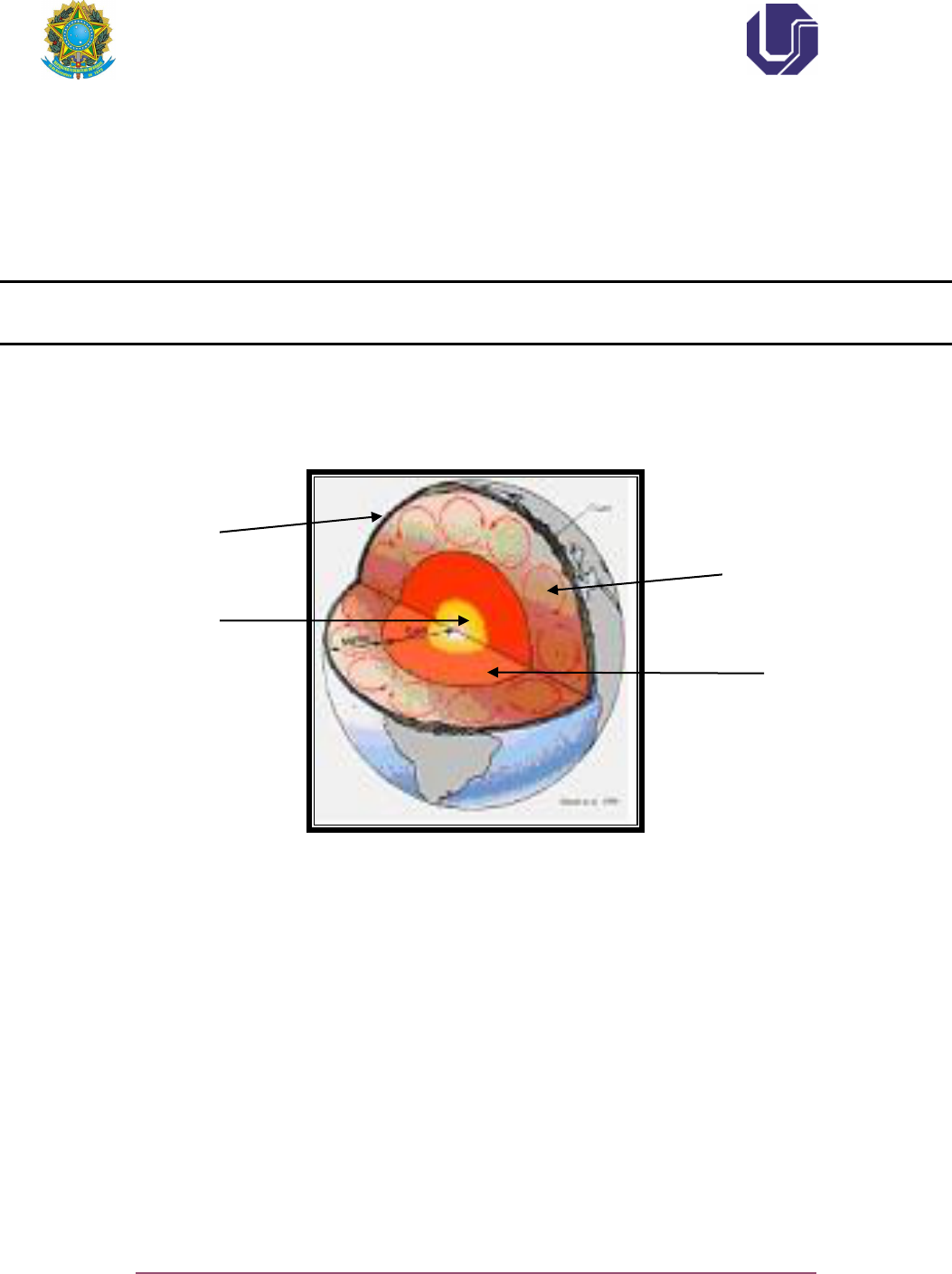 SERVIÇO PÚBLICO FEDERAL MINISTÉRIO DA EDUCAÇÃO UNIVERSIDADE FEDERAL DE UBERLÂNDIA Curso de Geografia Disciplina GGE 002 – Geologia Estudo Dirigido - Parte 1 Discente: PATRICK GIULIANO TARANTI Matrícula: 11711GEO232 Turno: NOTURNO I- Estrutura da Terra 1 Observe a figura abaixo: a. Localize o Núcleo Interno, o Núcleo Externo, o Manto e a Crosta. Resposta: “A” = Núcleo Interno; “B” – Núcleo Externo; “C” = Manto; “D” = Crosta b. Qual é o nível mais quente do planeta? E o mais frio? Resposta: O nível mais quente do planeta está localizado no Núcleo Interno, com temperaturas superiores a 6000 ºC, já o nível mais frio do planeta está localizado na Crosta, com temperaturas que podem ser negativas. c. Identifique o estado físico de cada nível do planeta, utilizando das informações do módulo “O interior da Terra” Resposta: Quanto ao estado físico de cada nível que compõe o planeta podemos declarar que: o Núcleo Interno é sólido; que o Núcleo Externo é líquido; que o Manto é viscoso; e, por fim, a Crosta que é sólida. (http://webgeology.alfaweb.no/webgeology_files/brazil/earthsinterior_bra.html) 2 Em que nível da Terra é gerado o campo magnético terrestre? Explique. “A” “B” “D” “C” SERVIÇO PÚBLICO FEDERAL MINISTÉRIO DA EDUCAÇÃO UNIVERSIDADE FEDERAL DE UBERLÂNDIA Resposta: O campo magnético terrestre é, segundo a maioria dos estudiosos do tema, gerado no núcleo externo do planeta, tal fato deve-se a composição e ao estado físico dos materiais que nele se encontram, aliado ao movimento das correntes convecção. 3 Explique o aparente paradoxo dos diferentes estados físicos dos Núcleos Interno e Externo, frente às condições físico-químicas de cada um? Resposta: O núcleo externo é provavelmente composto de ferro metálico e outros elementos, todos em estado líquido, e o núcleo interno é composto de ferro e níquel, e é sólido porque, apesar das imensas temperaturas, está sujeito a pressões tão elevadas que os átomos ficam compactados; as forças de repulsão entre os átomos são vencidas pela pressão externa, e a substância acaba se tornando sólida. Observa-se, portanto, que a pressão e o ponto de fusão são determinantes para estabelecer-se o estado físico do núcleo interno e externo, considerando-se a composição química destes, uma vez que elementos de peso atômico maior tendem a submergir, fazendo com que os mais leves cedem espaço para estes, portanto emergindo. 4 A Terra é um planeta geologicamente ativo! Qual o “motor” dessa atividade? De onde provém? Resposta: Podemos declarar que a força motriz dessa atividade advém do núcleo em razão da sua elevada temperatura, a qual transfere o calor para as camadas mais externas. Este sistema de condutividade, de troca de temperaturas faz com que ocorram os eventos tectônicos e vulcânicos. O motor deste sistema são as Correntes de Convecção. 5 Sabe-se que as Correntes de Convecção ocorrem no Manto do Planeta. O que são Correntes de Convecção? Por que elas ocorrem? Resposta: As Correntes de Convecção são movimentos circulares que se desenvolvem ao nível da astenosfera, devidos às grandes diferenças de temperatura e densidade existentes no interior da terra. Através delas, a matéria que forma as placas ascende à superfície nas zonas de rift, deriva e por arrefecimento torna-se rígida. Admite que o núcleo externo, extremamente quente, se encontra no estado de fusão; o calor desta região propaga-se para o manto, por condução; as partes externas do núcleo arrefecem mais do que as internas e, devido à diminuição da temperatura, produz-se um aumento da densidade no material. O material, mais frio e mais denso, desce e o material da parte interna do núcleo, mais quente e menos denso, sobe, gerando-se, também, correntes de convecção. 6 Por que dividimos a Crosta terrestre em Continental e Oceânica? Resposta: Divide-se em crosta continental e crosta oceânica, devido a sua formação e composição, onde as crostas oceânicas são de formação mais novas e mais pesadas ricas em ferro (basicamente basáltica), cuja a espessura é de aproximadamente de 5-15 km; já a crosta continental, são de formação mais antigas e compostas por materiais mais leves (basicamente granítica), cuja a espessura é de aproximadamente de 20-90 km. Crosta continental tem uma densidade de cerca de 2.7g/cm³, já a densidade média da crosta oceânica é 3g/cm³. SERVIÇO PÚBLICO FEDERAL MINISTÉRIO DA EDUCAÇÃO UNIVERSIDADE FEDERAL DE UBERLÂNDIA 7 Resolva as cruzadas abaixo (extraído em 12/03/2016 de http://cafecomhistoriaeeducacao.blogspot.com.br/2014/05/cruzadinha-crosta-terrestre- e.html) 1) Porção interior da Terra. Composta principalmente por níquel e ferro. 2) Camada externa e sólida da Terra. Nela estão contidas as rochas, o solo, os minerais, o leito dos oceanos, as cordilheiras e demais relevos. 3) Contribui evitando o desmatamento e diminui a degradação ambiental. 4) São formadas pela compactação de partículas de outras rochas. 5) Ato de separar o lixo em reciclável e não reciclável. 6) São encontrados nas rochas e nos seus sedimentos. São classificados como metálicos e não metálicos. 7) São os elementos naturais usados para atender as necessidades da sociedade. 8) Um dos países mais ricos em bauxita. 9) A partir do século XIX, ganhou importância como fonte de energia. Dele extraem o diesel, a gasolina e o querosene. 10) Cerca de 60% das jazidas de petróleo encontram-se no _______________. 11) O _________________ é um dos maiores reservatórios de petróleo do mundo. É encontrado no litoral brasileiro. 12) Países que mais consomem petróleo: China, Japão e ______________. 13) Áreas com maior concentração de minério. 14) Fonte de energia limpa. Mais barato, eficiente e versátil. 15) Era usado para movimentar, nas fábricas, diversos tipos de máquinas, dando início assim, à