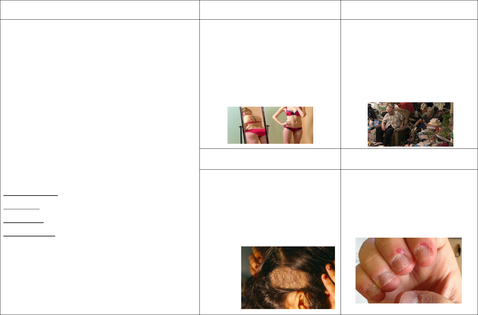 Julia Hannah Santos Pereira Universidade Positivo TOC E TRANSTORNOS RELACIONADOS TRANSTORNO OBSESSIVO-COMPULSIVO TRANSTORNO DISMÓRFICO CORPORAL TRANSTORNO DE ACUMULAÇÃO Jean-Ettiene Esquirol (1º descrição clínica) – 1838 Sigmund Freud (neurose obsessiva) – 1909 DSM lll – 1980 Obsessões, compulsões ou ambas. Obsessão: pensamentos recorrentes e persistentes, intrusivos e indesejados que causam acentuada ansiedade e sofrimento. O indivíduo tenta neutraliza-lo ou afasta-lo com algum outro pensamento ou ação. Compulsão: (rituais) comportamentos repetitivos ou atos mentais que o indivíduo se sente compelido a executar em resposta a uma obsessão ou de acordo com regras rigidamente aplicadas. Esses comportamentos visam reduzir ou prevenir o sofrimento e ansiedade de situação temida. Claramente não realistas. Tomam tempo do indivíduo (+ de 1 hora diária), causam prejuízos sociais e profissionais. Não é bem explicada como sintomas de um outro Tr. mental ou uso de substâncias. Especificar Insight bom/razoável: admite que as crenças do TOC não são ou podem não ser verdadeiras. Insight pobre: acredita que as crenças do TOC provavelmente são verdadeiras. Insight ausente: completamente convencido que as crenças do TOC são verdadeiras. (Delirante). Relacionado a tique: história passada ou atual relacionada. Crenças disfuncionais: perfeccionismo e intolerância à incerteza. Até 30% dos indivíduos com TOC têm um transtorno de tique ao longo da vida. As compulsões não são executadas por prazer, embora alguns indivíduos experimentem alívio da ansiedade ou sofrimento. Ex: limpeza, simetria, pensamentos proibidos ou tabus, danos. A idade média de início do TOC é 19,5 anos, e 25% dos casos iniciam- se até os 14 anos de idade. O início dos sintomas é geralmente gradual; entretanto, um início agudo também tem sido relatado. Suicídio: relatos de até ¼ das pessoas que possuem o diagnóstico. Prevalência: 1,2% EUA (mulheres) - Preocupação com defeitos ou falhas na aparência física não observáveis. - Comportamento repetitivo. - Sofrimento, causam prejuízos sociais e profissionais. - Não explicada pelo diagnóstico de Trs. Alimentar ou outros. Com dismorfia muscular: Preocupação com a ideia de que sua estrutura corporal é muito pequena ou insuficientemente musculosa. Especificar INSIGHT. - Dificuldade em descartar pertences, independentemente de seu valor real. - Sofrimento ao descartar pertences. - Congestionamento e obstrução do espaço. - Não explicada por outros diagnósticos. Com aquisição excessiva: Se a dificuldade de descartar os pertences está acompanhada pela aquisição excessiva de itens que não são necessários ou para os quais não existe espaço disponível. (80% a 90% dos casos). Especificar INSIGHT. TRICOTILOMANIA TRANSTORNO DE ESCORIAÇÃO (skin-picking) (Transtorno de arrancar cabelo). - Arranca-los de forma recorrente, resultando a perda de cabelos. - Tentativas de evitar tal comportamento. - Sofrimento, causam prejuízos sociais e profissionais. - Não explicada por outros diagnósticos. *qualquer região do corpo em que há pelos* *sentem constrangimento, vergonha e descontrole* - Beliscar a pele de forma recorrente, lesionando-a. - Tentativas de evitar tal comportamento. - Sofrimento, causam prejuízos sociais e profissionais. - Não explicada por outros diagnósticos. Normalmente rosto, braços e mãos. Podem usar unhas, pinças, alfinetes ou outros objetos