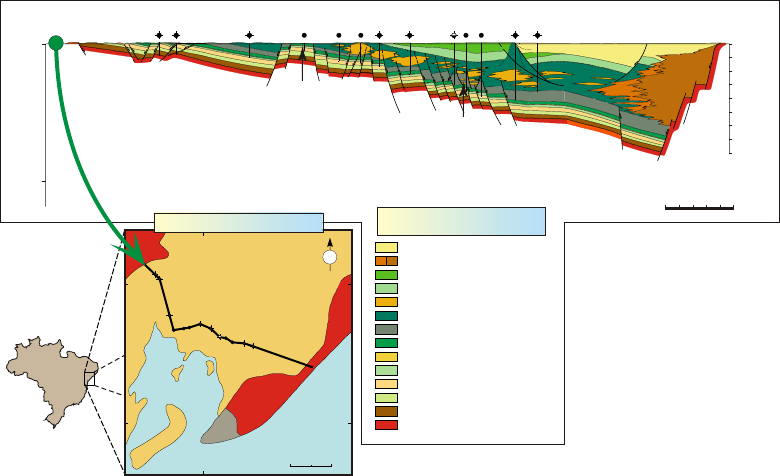 ++ BRASIL 0 20km10 13 S 12 30'S 38 30'W N O CE AN O AT LÂ N TI C O SALVADOR Bacia do Recôncavo ++++ +++++ ++++ +++++ +++++ +++++ ++ ++ + + + + ++ ++ +++ ++ +++ ++ +++ +++ +++ +++ + + + + + + + +++++++ +++++++ +++++++ +++++++ +++++++ +++++++ +++++++ +++++ +++++ +++ ++ + ++ + + + ++ + + + ++ + + + + ++ + + + + + + + + ++ + + + + + + + + + + + + + + + + + + + + + + + + + + + + + + + + + + + + + + + + + + + + + + + + + + + + + + + + + + + + + 0 10km 1000 0m 2000 3000 4000 5000 6000 7000 8000m ++ ++ + + + + ++ ++ + + + + + + + + + + + + + + + + + + + + + + + + + + + + + + + + + + + + + 0 2 4 6 8 10km NW SE ALTO DE DOM JOÃO DOM JOÃO HIGH BAIXO DE CAMAÇARIPLATAFORMA DE SÃO DOMINGOS Campo de Dom João Campo de Cexis Localização da seção Fm. São Sebastião Fm. Salvador Fm. Pojuca Fm. Taquipe Mb. Pitanga Fm. Maracangalha Fm. Candeias - Mb. Gomo Fm. Candeias - Mb.Tauá Fm. Água Grande Fm. Itaparica Fm. Sergi Fm. Aliança Fm. Afligidos Embasamento+ + + LegendaLegendaLocalização da seção RECÔNCAVO BASIN SCHEMATIC CROSS-SECTION SEÇÃO GEOLÓGICA ESQUEMÁTICA DA BACIA DO RECÔNCAVO SÃO DOMINGOS PLATFORM CAMAÇARI LOW Cexis Field Dom João Field Modificado de Penteado, (1999) Modified from Penteado, (1999) Página 1