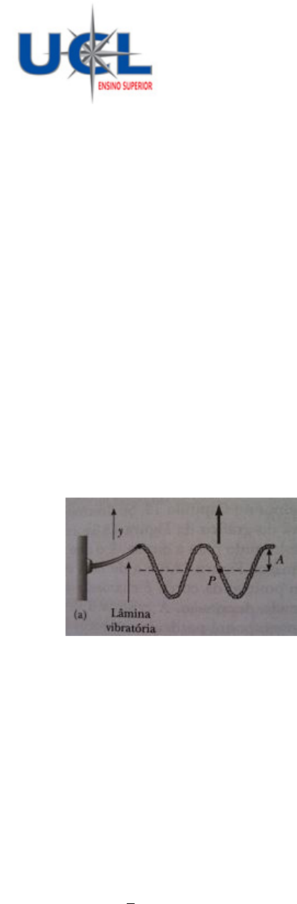 Lista de Exercícios de Física II: Ondas I 1) A função de para uma onda que viaja em uma corda esticada é (unidades no SI) Y (x,t) = 0,350 sem (10π – 3πx + π/4). a) Quais são a velocidade e a direção do percurso da onda? b) Qual é a posição vertical de um elemento da corda em t = 0, x = 0,100 m? c) Quais são o comprimento de onda e a frequência da onda? d) Qual é a velocidade transversal máxima de um elemento da corda? Resp. (3,33 m/s, -5,48 m, 0,667m, 5,00 Hz, 11,0 m/s) 2) A corda mostrada na figura abaixo se propaga com uma frequência de 5,00 Hz. A amplitude do movimento é de A = 12,0 cm, e a velocidade da onda é 20,0 m/s. Além disso, a onda é tal que y = 0 em x = 0 e t = 0. Determine: a) A frequência angular e o número de onda para essa onda; b) Escreva uma expressão para a função de onda. c) Calcule a velocidade transversal máxima d) A aceleração transversal máxima de um elemento da corda. Resp. (31,4 rad/s, 4,00 m, 1,57 rad/m, 3,77 m/s, 118 m/s²) 3) Uma onda transversal em uma corda é descrita pela função de onda Y = 0,120 sen( 𝜋 8 x + 4πt) onde x e y são dados em metros e t em segundos. Determine: a) A velocidade e a aceleração transversal em t = 0,200 s para um elemento da corda localizado em x = 1,60 m. b) Quais são o comprimento de onda, o período e a velocidade de propagação dessa onda? Resp. (-1,51 m/s, 0, 16,0 m, 0,500 s, 32,0 m/s) 4) Uma corda de piano com por unidade de comprimento igual a 5,00 x 10-3 kg/m está sob uma tensão de 1350 N. Encontre a velocidade com que uma onda viaja nesta corda. Resp. (520 m/s) 5) Um cabo de Ethernet tem 4,00 m de comprimento e uma massa de 0,200 kg. Um pulso transversal é produzido por um puxão em uma extremidade do cabo esticado. O pulso faz quatro viagens para baixo e para trás ao longo do cabo em 0,800 s. Qual é a tensão no cabo? Resp. (80,0 N) 6) As ondas transversais se propagam com uma velocidade de 20,0 m/s em uma corda sob tensão de 6,00 N. Qual é a tensão necessária para uma velocidade de onda ser de 30,0 m/s na mesma corda? Resp. (13,5 N) 7) Uma onda harmônica de 200 Hz, com uma amplitude de 1,2 cm, se move ao longo de uma corda de 40 m de comprimento com 0,120 kg de massa e 50 N de tração. a) Qual é a energia total média das ondas em um segmento da corda de 20 m de comprimento? b) Qual é a potência transmitida quando a onda passa por um ponto da corda? Resp. (6,8 J, 44 W) 8) Uma onda transversal em uma corda é descrita pela função de onda Y = 0,15 sen (0,80 x – 50t), onde x e y são dados em metros e t em segundos. A massa por unidade de comprimento da corda é de 12,0 g/m. Determine: a) A velocidade da onda; b) A frequência e o comprimento de onda; c) A potência transmitida pela onda. Resp. (62,5 m/s; 7.96 Hz; 7,85 m; 21,1 W) 9) Uma corda transporta uma onda; um segmento de 6,00 m da corda contém quatro comprimentos de onda completos e massa de 180 g. A corda vibra de forma senoidal com uma frequência de 50,0 Hz e um deslocamento de pico a vale de 15,0 cm. (A distância “pico a Lista de Exercícios de Física II: Ondas I vale” é a distância vertical entre a posição extrema positiva e a posição extrema negativa.) a) Escreva a função que esta onda descreve se propagando na direção x positiva. b) Determine a energia fornecida para a corda. Resp. (Y = 0,075 sen (4,19 x – 314t); 625 W) 10) Suponha que você ouça um estrondo de trovão 16,2 s depois de ver o raio associado a ele. A velocidade da luz no ar é de 3,00 x 108 m/s. a) Quão longe está o trovão? b) Você precisa saber a velocidade da luz para responder? Resp. (5,56 km) 11) Estando em uma faixa de pedestres você ouve uma frequência de 560 Hz da sirene de uma ambulância que se aproxima. Depois que a ambulância passa, a frequência observada da sirene é 480 Hz. Determine a velocidade da ambulância a partir dessas observações. Resp. (26,4 m/s) 12) Um bloco com um alto-falante parafusado a ele está ligado a uma mola com constante de mola de k = 20,0 N/m, conforme mostrado na figura abaixo. A massa total do bloco com o alto-falante é 5,00 kg e a amplitude de movimento deste aparelho é 0,500 m. O alto- falante emite ondas sonoras de frequência de 440 Hz. Determine as frequências mais alta e mais baixa ouvidas pela pessoa à direita do alto-falante. Suponha que a velocidade do som é de 343 m/s. Resp. (439 Hz; 441 Hz) 13) Em uma estrada, um motorista viaja para o norte a uma velocidade de 25,0 m/s. Um carro de polícia, viajando para o sul a uma velocidade de 40,0 m/s, aproxima-se com a sirene produzindo um som com frequência de 2500 Hz. a) Qual é a frequência que o motorista observa conforme o carro de polícia se aproxima? b) Qual a frequência que ele detecta depois que o carro passa por ele? Resp. (3,04 kHz e 2,08 kHz)