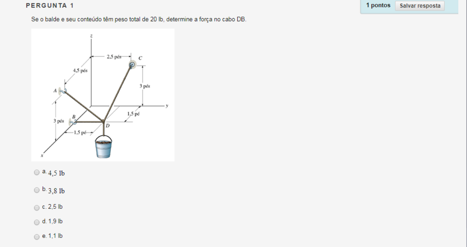 Questão 5 A estática de uma forma geral estuda a ação de força sobre os corpos, sendo que na estática de corpo rígido não se tem a restrição de um pon