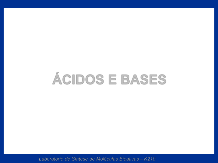 1 Laboratório de Síntese de Moléculas Bioativas – K210 Prof. Gustavo Química Orgânica Teórica 1B ÁCIDOS E BASES 2 Laboratório de Síntese de Moléculas Bioativas – K210 Prof. Gustavo Química Orgânica Teórica 1B ÁCIDOS, BASES E SAIS SEGUNDO A TEORIA DE ARRHENIUS (1884) 3 Laboratório de Síntese de Moléculas Bioativas – K210 Prof. Gustavo Química Orgânica Teórica 1B Ácidos e Bases de Brønsted–Lowry • Ácidos doam prótons. • Bases recebem prótons. • Fortes reagem para formar conjugados fracos. • Quanto mais fraca a base, mais forte o ácido conjugado. • Bases estáveis são bases fracas. 4 Laboratório de Síntese de Moléculas Bioativas – K210 Prof. Gustavo Química Orgânica Teórica 1B • Ácido de Lewis: substância que aceita um par de elétrons • Base de Lewis: substância que doa um par de elétrons Ácidos e Bases de Lewis 5 Laboratório de Síntese de Moléculas Bioativas – K210 Prof. Gustavo Química Orgânica Teórica 1B Equilíbrio Ácido/Base Ka: Constante de dissociação do ácido A acidez de um composto é dada pela seu valor de pKa Acidez de um Composto Permanece constante 1000g 18g/mol x 1L [H2O] = = 55,56 6 Laboratório de Síntese de Moléculas Bioativas – K210 Prof. Gustavo Química Orgânica Teórica 1B A Equação de Henderson–Hasselbalch • Uma substância existe principalmente em sua forma ácida quando pH < pKa • Uma substância existe principalmente em sua forma básica quando pH > pKa A HA logpHp aK A Equação de Henderson-Hasselbalch relaciona o pKa e o pH REARRANJANDO: 7 Laboratório de Síntese de Moléculas Bioativas – K210 Prof. Gustavo Química Orgânica Teórica 1B pKa = - log Ka pKa 14 12 10 8 6 4 2 0 Ácidos fortes Bases fortes Ka 10-14 10-10 10-6 10-2 Comparação de Valores pKa e Ka Os menores valores de pKa O ácido é forte -2 102 •O pKa é usado para descrever a força dos ácidos . •É um númro único, sem expoentes.. No ponto de equivalência 8 Laboratório de Síntese de Moléculas Bioativas – K210 Prof. Gustavo Química Orgânica Teórica 1B Descrição gráfica de pKa de ácidos e bases 9 Laboratório de Síntese de Moléculas Bioativas – K210 Prof. Gustavo Química Orgânica Teórica 1B Calculando o pKa do H3O + 1000g 18g/mol x 1L [H2O] = = 55,56 pKa (H3O) + = - log(55,56) = -1,74 Portanto, ácidos com pKa menor que -1,74 protonarão a água completamente. 10 Laboratório de Síntese de Moléculas Bioativas – K210 Prof. Gustavo Química Orgânica Teórica 1B Calculando o pKa da H2O Portanto, bases B cujos ácidos conjugados HB tiverem um pKa superior a 15,74 deprotonarão completamente a água. 11 Laboratório de Síntese de Moléculas Bioativas – K210 Prof. Gustavo Química Orgânica Teórica 1B 12 Laboratório de Síntese de Moléculas Bioativas – K210 Prof. Gustavo Química Orgânica Teórica 1B FATORES QUE AUMENTAM A ACIDEZ ESTABILIZAÇÃO DA BASE CONJUGADA HA + H2O H3O + + A- Uma base conjugada (A-) mais estabilizada deslocará o equilibrio da equação acima para direita e, conseguentemente, aumentará a concentração do ácido (H3O +). 13 Laboratório de Síntese de Moléculas Bioativas – K210 Prof. Gustavo Química Orgânica Teórica 1B A estabilização da base conjugada faz com que o ácido seja forte. Fatores que influenciam na estabilidade da base conjugada: Tamanho do átomo Eletronegatividade Efeitos indutivos Ressonância Hibridização Estabilização da Base Conjugada 14 Laboratório de Síntese de Moléculas Bioativas – K210 Prof. Gustavo Química Orgânica Teórica 1B Quando os átomos têm tamanhos muito diferentes, o ácido mais forte é aquele em que o próton liga-se ao maior átomo (variação na mesma família) Tamanho do Átomo 15 Laboratório de Síntese de Moléculas Bioativas – K210 Prof. Gustavo Química Orgânica Teórica 1B Tamanho do Átomo - Ligação em Haletos de Hidrogênio 16 Laboratório de Síntese de Moléculas Bioativas – K210 Prof. Gustavo Química Orgânica Teórica 1B Quando os átomos têm aproximadente o mesmo tamanho, o ácido mais forte terá o seu próton ligado ao átomo mais eletronegativo (variação no mesmo período) Tamanho do Átomo 17 Laboratório de Síntese de Moléculas Bioativas – K210 Prof. Gustavo Química Orgânica Teórica 1B Seta Curva (Curly Arrows) indicar o movimento dos elétrons quando ligações são feitas, quebradas ou movidas. Uma seta curva representa o movimento de um par de elétrons de sua posição original para uma nova posição. A cauda da seta sinaliza de onde o par elétrons veio, e da ponta da seta mostra para onde o par elétron está indo. seta curva representa o movimento momentâneo de um par de elétrons de um orbital preenchido para um vazio). NOÇÕES SOBRE SETAS CURVAS 18 Laboratório de Síntese de Moléculas Bioativas – K210 Prof. Gustavo Química Orgânica Teórica 1B Dipolos de ligação pode induzir um pequeno dipolo nas ligações vizinhas Reduzindo o valor pKa: facilita remoção H + Efeito Indutivo Neste caso o cloro exerce efeito indutivo retirador que como consequência aumenta a força do ácido carboxílico. 19 Laboratório de Síntese de Moléculas Bioativas – K210 Prof. Gustavo Química Orgânica Teórica 1B O efeito indutivo retirador de elétrons aumenta a acidez de um ácido conjugado Efeito Indutivo 20 Laboratório de Síntese de Moléculas Bioativas – K210 Prof. Gustavo Química Orgânica Teórica 1B • Ácido acético é mais ácido do que etanol CH3COH O CH3CH2OH pKa = 4.76 pKa = 15.9 acetic acid ethanol • A deslocalização de elétrons no ácido acético, através de ressonância, estabiliza a base conjugada CH3C O O CH3C O O EFEITO DE RESSONÂNCIA 21 Laboratório de Síntese de Moléculas Bioativas – K210 Prof. Gustavo Química Orgânica Teórica 1B Ressonância 3 híbridos de ressonância para o íon carbonato 22 Laboratório de Síntese de Moléculas Bioativas – K210 Prof. Gustavo Química Orgânica Teórica 1B Acidez de um Hidrog