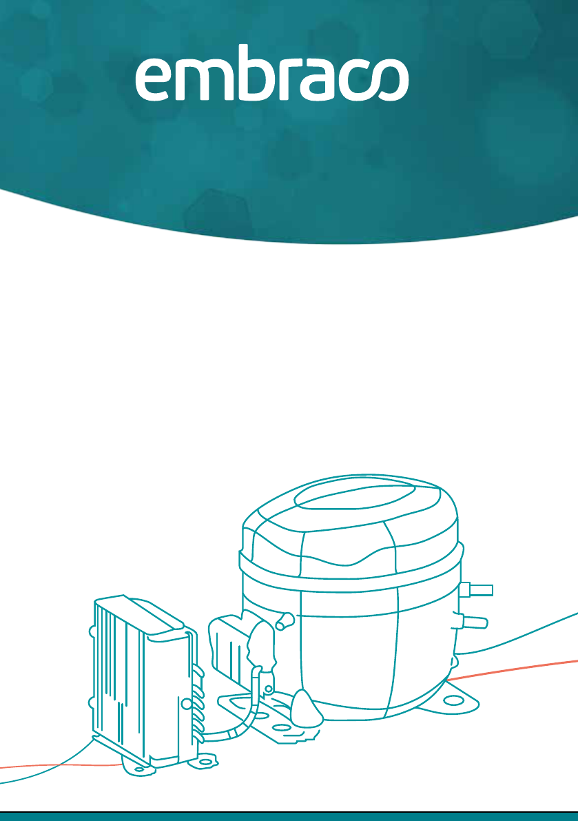 POWER IN. CHANGE ON. COMPRESSOR FULLMOTION COMO FAZER A TROCA ANTES DE COMEÇAR: TENSÃO: SINAL DE CONTROLE: • Verifique se o sistema não está energizado. • Desconecte o sistema da tomada antes de realizar qualquer tipo de verificação ou manutenção; • Nunca, em hipótese alguma, tente energizar o compressor Embraco Fullmotion com tensão direto da rede (“partida direta”). Isso danificará permanentemente o compressor; • Para realizar a substituição corretamente de um inversor Embraco Fullmotion, é necessário conhecer dois parâmetros do inversor: tensão e sinal de controle. Veja abaixo como verificar. Verifique qual a tensão do inversor original que está instalado no sistema. A tensão pode ser verificada na etiqueta localizada no inversor, conforme imagem abaixo: Verifique qual tipo de sinal de controle é utilizado no inversor original. Para isto, verifique o código Embraco do inversor localizado na etiqueta (conforme mostrado abaixo) e verifique a lista disponível nas páginas 08 a 15 qual o tipo de sinal de controle. Com as informações de tensão de entrada e sinal de controle, verifique na tabela abaixo o código do inversor que deveser adquirido para realizar a troca: Estes inversores não são compatíveis com refrigeradores da marca Liebherr. Neste caso, entrar em contato direto coma fabricante do sistema. O inversor deve ser substituído por um outro inversor de mesma tensão. O inversor a ser instalado deve conter as mesmas características de tensão de entrada e sinal de controle que o inversor originalmente utilizado no sistema. Isto garantirá o funcionamento adequado do produto. Código do inversor Tensão de Entrada (V) Sinal de controle 519308328 100-127 Frequência 519308329 100-127 Drop-in 519308330 220-230 Frequência 519308331 220-230 Drop-in REMOVENDO O INVERSOR DANIFICADO01 Remova o inversor original do sistema, para isso siga os seguintes passos: 1. Remova a tampa do inversor para ter acesso às conexões elétricas; 2. Remova o chicote de alimentação (1), chicote de sinal (2) e chicote de aterramento (3); 3. Desconecte o inversor do compressor; 4. Desparafuse e remova o inversor do sistema. Terminal Hermético 3 1 Chicote de aterramento Cabo do compressor (Interno CN07)Chicotede sinal2 Cabo Compressor Chicote de alimentação INSTALANDO O NOVO INVERSOR02 2. Remova a tampa do inversor para ter acesso às conexões elétricas; 3. Conecte o chicote de alimentação (1), chicote de sinal (2) e chicote de aterramento (3); 4. Oriente os cabos adequadamente na caixa do inversor e monte a tampa lateral para fechar as conexões; 5. Parafuse a tampa. 1. Fixe o inversor no sistema usando os pontos de fixação; Obs.: Caso o inversor original seja montado diretamente ao compressor, o novo inversor deve ser acomodado da melhor maneira possível no refrigerador para garantir que o mesmo não se mova durante o funcionamento normal do sistema. Ponto de fixação Ponto de fixação Cabo do compressor 3 1 2 Chicote de aterramento Cabo do compressor (Interno CN07)Chicotede sinal Chicote de alimentação Código do inversor Sinal de Controle 519306000 Frequency 519306001 Frequency 519306002 Drop-in 519306003 Drop-in 519306004 Frequency 519306005 Frequency 519306006 Frequency 519306007 Frequency 519306008 Frequency 519306009 Drop-in 519306010 Frequency 519306011 Frequency 519306012 Frequency 519306014 Frequency 519306015 Drop-in 519306017 Drop-in 519306018 Drop-in 519306019 Drop-in 519306020 Drop-in 519306021 Drop-in 519306022 Frequency 519306023 Frequency 519306024 Frequency 519306025 Frequency 519306026 Drop-in 519306027 Drop-in 519306028 Drop-in 519306029 Drop-in 519306030 Frequency 519306031 Drop-in 519306032 Frequency 519306033 Drop-in Código do inversor Sinal de Controle 519306034 Frequency 519306035 Drop-in 519306036 Drop-in 519306038 Frequency 519306039 Drop-in 519306040 Drop-in 519306042 Frequency 519306042 Frequency 519306043 Frequency 519306044 Frequency 519306045 Frequency 519306045 Frequency 519306046 Drop-in 519306048 Frequency 519306050 Drop-in 519306051 Frequency 519306052 Frequency 519306054 Drop-in 519306055 Drop-in 519306056 Frequency 519306057 Drop-in 519306058 Frequency 519306059 Frequency 519306060 Drop-in 519306061 Drop-in 519306062 Drop-in 519306064 Drop-in 519306065 Frequency 519306066 Drop-in 519306067 Drop-in 519306068 Frequency 519306069 Drop-in Código do inversor Sinal de Controle 519306070 Frequency 519306071 Drop-in 519306072 Drop-in 519306073 Drop-in 519306074 Frequency 519306075 Drop-in 519306076 Frequency 519306077 Frequency 519306079 Frequency 519306080 Drop-in 519306081 Frequency 519306082 Drop-in 519306083 Drop-in 519306084 Frequency 519306085 Drop-in 519306086 Frequency 519306087 Frequency 519306088 Drop-in 519306089 Drop-in 519306090 Drop-in 519306091 Frequency 519306091 Frequency 519306092 Frequency 519306092 Frequency 519306093 Frequency 519306094 Drop-in 519306095 Frequency 519306096 Frequency 519306097 Frequency 519306097 Frequency 519306098 Frequency 519306099 Drop-in Código do inversor Sinal de Controle 519306100 Frequency 519306101 Frequency 519306102 Frequency 519306103 Drop-in 519306104 Frequency 519306105 Frequency 519306106 Drop-in 519306107 Drop-in 519306108 Frequency 519306108 Frequency 519306109 Frequency 519306110 Frequency 519306111 Frequency 519306112 Frequency 519306113 Frequency 519306115 Drop-in 519306116 Drop-in 519306117 Frequency 519306118 Frequency 519306118 Frequency 519306119 Frequency 519306119 Frequency 519306120 Frequency 519306120 Frequency 519306121 Frequency 519306122 Frequency 519306123 Frequency 519306123 Frequency 519306124 Drop-in 519306125 Drop-in 519306126 Drop-in 519306127 Frequency Código do inversor Sinal de Controle 519306165 Drop-in 519306166 Drop-in 519306169 Frequency 519306170 Drop-in 519306171 Drop-in 519306172 Frequency 519306173 Frequency 519306174 Drop-in 519306175 Drop-in 519306176 Drop-in 519306177 Drop-in 519306178 Drop-in 519306179 Drop-in 519306180 Frequenc