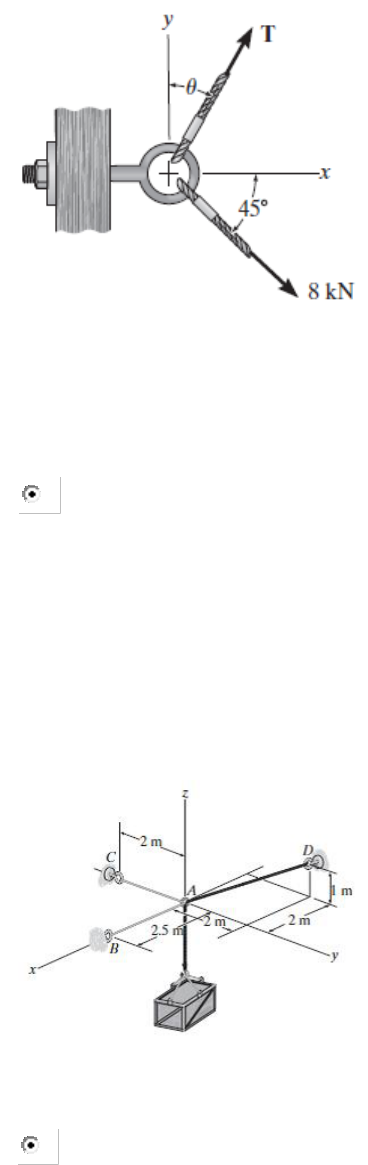 1ª SEMANA Se ɵ = 30° e T = 6 KN, determine a intensidade da força resultante que atua sobre a argola e sua direção, medida no sentido horário a partir do eixo x. Fr = 8,67 KN; posição 3,05° 2ª SEMANA Para suportar a caixa de 100 kg na posição de equilíbrio mostrada, podemos afirmar que as Forças: FAB = FAC 3ª SEMANA A região do pé esta sujeita à contração dos dois músculos plantarflexor. Determine o momento de cada força em relação ao ponto de contato A no chão. 14,74 N.m, 17,46 N.m Dois garotos empurram o portão conforme mostrado. Se o garoto em B exerce uma força FB = 150 N, determine a intensidade da força FA que o garoto em A precisa exercer para impedir que o portão não gire. Despreze a espessura do portão. 144,3 N 4ª SEMANA Determine as componentes de reação no apoio fixo A. Despreze a espessura da viga. Ax= 346 N Ay= 800 N MA= 3,90 kN.m A treliça é suportada por um pino em A e um rolete em B. Determine as reações de apoio em B, se houverem. By= 8,05 kN