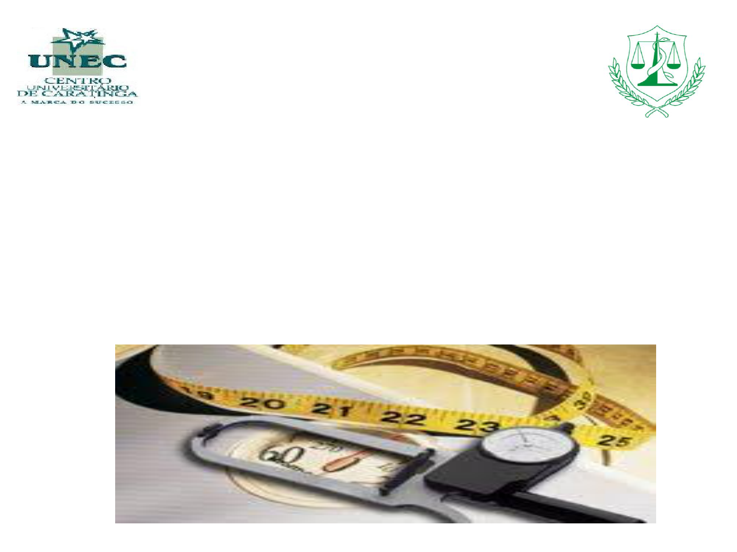-CENTRO UNIVERSITÁRIO DE CARATINGA-UNEC- -CURSO DE NUTRIÇÃO- -DISCIPLINA: AVALIAÇÃO NUTRICIONAL-4º PERÍODO 2013/2- -DOCENTE: BRUNELA DEMONER ROSSONI -AVALIAÇÃO DO ESTADO NUTRICIONAL DO ADULTO ANTROPOMETRIA - -DOBRAS CUTÂNEAS- • As dobras tem sido largamente utilizada para estimar a gordura corporal total em estudos de campo e na prática clínica (Duarte,2007). • A espessura da dobra cutânea reflete a espessura da pele e tecido adiposo subcutâneo em locais específicos do corpo (Duarte,2007). -DOBRAS CUTÂNEAS- • A aferição da dobras cutânea é um método relativamente simples, de baixo custo e não-invasivo, para estimar a gordura corporal total (Duarte,2007). -DOBRAS CUTÂNEAS- • O pressusposto que os compartimentos de tecidos adiposo refletem a gordura corporal total varia com a idade, bem como entre os diferentes indivíduos, populações e local de mensuração (Duarte,2007). • A depleção grave de gordura nos pacientes representa um problema nutricional significativo pois pode interferir com os mecanismos adaptativos de utilização de gordura, como combustível endógeno em estados de inanição ou semi- inanição (Duarte,2007). -DOBRAS CUTÂNEAS- • Antes de iniciar a medição, é importante verificar se o adipômetro ou plicômetro se encontra calibrado (Duarte,2007). • Os instrumentos de alta qualidade disponíveis no mercado são os adipômetros Harpenden,Lange,Holtain e Lafayette, além dos nacionais (Duarte,2007). -Figura 1.Modelo e marcas de adipômetros na prática clínica. -DOBRAS CUTÂNEAS- • Os adipômetros de plástico, ainda usados na prática clínica, não possuem a mesma confiabilidade e precisão dos demais e não devem ser aplicados em estudos científicos. -DOBRAS CUTÂNEAS- • A medida da espessura da dobra de gordura é prática e útil,ainda que a validade dependa da precisão da técnica para medi-la. • A precisão diminui quanto maior é o grau de obesidade. -DOBRAS CUTÂNEAS- • Os locais onde as dobras cutâneas refeltem melhor adiposidade são: tricipital,bicipital,subescapular, supra-ilíaca e a parte superior da coxa. -DOBRAS CUTÂNEAS- • Os mais úteis são o tríceps e subescapular por que dispõe de padrões de referências e têm correlação com a gordura corporal total e a porcentagem de gordura determinada por outros métodos. -TÉCNICAS PARA AFERIÇÃO DE DOBRAS CUTÂNEAS- • 1- Mensurar a dobra, sempre que possível com os braços relaxados e estendidos ao longo do corpo, diretamente na pele do avaliado, sem qualquer substância que influencie no pinçamento da dobra. -TÉCNICAS PARA AFERIÇÃO DE DOBRAS CUTÂNEAS- • 2.Padronizar o lado que será utilizado para medição.Existem duas correntes a respeito da aferição no lado direito ou não dominante do corpo.É importante que o observador escolha um lado para aferição e mantenha-o nas demais medições. -TÉCNICAS PARA AFERIÇÃO DE DOBRAS CUTÂNEAS- • 3.Identificar, medir e marcar criteriosamente o local da medição das dobras cutâneas.Segurar firmemente a dobra,entre polegar e o indicador da mão esquerda, a 1 cm acima do local a ser medido; -TÉCNICAS PARA AFERIÇÃO DE DOBRAS CUTÂNEAS- • 4.Destacar a dobra de modo a assegurar que o tecido muscular não tenha sido pinçado,garantindo somente a medição da pele e do tecido adiposo; -TÉCNICAS PARA AFERIÇÃO DE DOBRAS CUTÂNEAS- • 5.Posicionar o adipômetro perpendicular à dobra e soltar a pressão das hastes lentamente; -TÉCNICAS PARA AFERIÇÃO DE DOBRAS CUTÂNEAS- • 6.Manter a dobra pressionada com os dedos durante a aferição; -TÉCNICAS PARA AFERIÇÃO DE DOBRAS CUTÂNEAS- • 7.Fazer a leitura até 4 segundo após a pressão ter sido aplicada; -TÉCNICAS PARA AFERIÇÃO DE DOBRAS CUTÂNEAS- • 8. Abrir as hastes do adipômetro, para removê-lo do local e fechá-lo lentamente para prevenir danos ou perda de calibragem; -TÉCNICAS PARA AFERIÇÃO DE DOBRAS CUTÂNEAS- • 9.Medir a dobra no mínimo duas vezes em cada local.Se os valores diferirem em mais ou menos 5%,realizar medições adicionais.Deve-se calcular a média arimétrica dos resultados obtidos; -TÉCNICAS PARA AFERIÇÃO DE DOBRAS CUTÂNEAS- • No caso de aferições de dobras em diferentes locais,sugere-se realizar as medidas de forma rotativa, ao invés de leituras consecutivas em cada local.A avaliação em momentos diferentes do paciente deve ser feita ao exercício, tende a aumentar a espessura da dobra cutânea. A medição das dobras imediatamente após exercícios físicos não é recomendada, pois o deslocamento de fluidos corporais em direção a pele,em conseqüência de adaptações ao exercício, tende a aumentar a espessura da dobra cutânea. -DOBRAS CUTÂNEAS- • Dobra Cutânea Triciptal (DCT) OU Prega cutânea Tricipital (PCT). -Mais utilizada na prática clínica; -Com auxílio de fita graduada, localizar o ponto médio entre o acrômio e olecrano com o braço flexionado junto ao corpo,formando um ângulo de 90º; -A prega deve ser mensurada na parte posterior do braço, com os braços relaxados e estendidos ao longo do corpo e a mão com a palma voltada para fora. -DOBRAS CUTÂNEAS- • Dobra Cutânea Triciptal (DCT) OU Prega cutânea Tricipital (PCT). % Padrão 90 80 70 60 HOMENS 12,5 11,3 10,0 8,8 7,5 MULHERES 16,5 14,9 13,2 11,6 9,9 -DOBRAS CUTÂNEAS- • Dobra Cutânea Triciptal (DCT) OU Prega cutânea Tricipital (PCT). • O Cálculo de adequação é realizado por mio da fórmula: • Adequação da PCT(%)= PCT obtida (cm) x 100 PCT percentil 50 -Estado Nutricional segundo a adequação da PCT- • Fonte: Frisancho (1990). Desnutrição Desnutrição Moderada Desnutrição Leve Eutrofia Sobrepeso Obesidade PCT < 70 % 70 -80% 80 -90% 90 -110% 110 -120% > 120% -DOBRAS CUTÂNEAS- • Dobra Cutânea Biciptal (DCT) OU Prega cutânea Bicipital (PCT). • A aferição desta dobra deve ser feita no mesmo nível da dobra cutânea tricipital. • Pedir à pessoa que deixe o braço solto e relaxado;