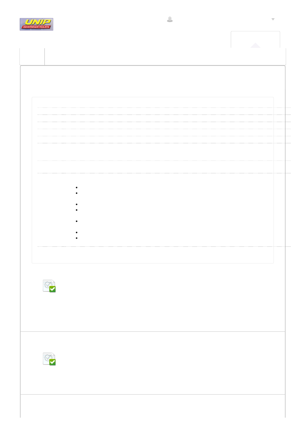 2017524 Revisar envio do teste: Avaliação II (2017/1) – 659815... https://ava.ead.unip.br/webapps/assessment/review/review.jsp?attempt_id=_53098501_1&course_id=_173659_1&content_id=_1628470_1&return_content=… 1/3 Avaliação Revisar envio do teste: Avaliação II (2017/1)H Revisar envio do teste: Avaliação II (2017/1) Usuário PAMELA ANDRADE DE OLIVEIRA pamela.oliveira12 @unipinterativa.edu.br Curso Estudos Disciplinares VI Teste Avaliação II (2017/1) Iniciado 24/05/17 15:02 Enviado 24/05/17 15:02 Status Completada Resultado da tentativa 10 em 10 pontos Tempo decorrido 20 minutos Instruções ATENÇÃO: esta avaliação segue as seguintes configurações: possui número de tentativas limitadas; não apresenta as alternativas corretas, apenas informa quantos foram seus acertos e/ou erros; não apresenta as justificativas corretas; não soma pontos de “tentativa em andamento” (tentativas iniciadas e não concluídas/enviadas); possui um prazo limite para envio (acompanhe seu calendário acadêmico), sendo impossível o seu acesso após esse prazo; pode apresentar as questões de forma randômica; a NÃO realização prevê nota 0 (zero). Resultados exibidos Respostas enviadas, Perguntas respondidas incorretamente Pergunta 1 Como fazer para que as pessoas compartilhem e registrem o seu conhecimento? Resposta Selecionada: e. Todas estão corretas. Pergunta 2 A Gestão do Conhecimento é recente? Resposta Selecionada: d. Sempre fez parte do desenvolvimento humano. Pergunta 3 Unip Interativa 1 em 1 pontos 1 em 1 pontos 1 em 1 pontos pamela.oliveira12 @unipinterativa.edu.br 2017524 Revisar envio do teste: Avaliação II (2017/1) – 659815... https://ava.ead.unip.br/webapps/assessment/review/review.jsp?attempt_id=_53098501_1&course_id=_173659_1&content_id=_1628470_1&return_content=… 2/3 A Tecnologia da Informação tem relação com a globalização e com a Gestão do Conhecimento? Resposta Selecionada: e. Sim, foi a TI que tornou viável a globalização, e a TI tem sido fundamental na GC. Pergunta 4 Qual a maior fonte de informações que temos? Resposta Selecionada: b. As informais. Pergunta 5 Os Sistemas de Informação comerciais têm como características: I. coleta, análise, compartilhamento e monitoramento de informações. II. oferecem suporte à gestão de negócios de uma organização, tanto em relação ao comércio com outras empresas como ao atendimento ao cliente. III. são normalmente encontrados em todas as empresas automatizadas. Resposta Selecionada: d. Apenas I e II estão corretas. Pergunta 6 Para facilitar os processos do conhecimento, uma organização deve: Resposta Selecionada: e. capacitar melhor, gerar conhecimento mais rápido, codificálo e transferi lo. Pergunta 7 A Gestão do Conhecimento tem como objetivo fortalecer o número de conhecimento por meio das etapas: Resposta Selecionada: d. todas as alternativas estão corretas. 1 em 1 pontos 1 em 1 pontos 1 em 1 pontos 1 em 1 pontos 2017524 Revisar envio do teste: Avaliação II (2017/1) – 659815... https://ava.ead.unip.br/webapps/assessment/review/review.jsp?attempt_id=_53098501_1&course_id=_173659_1&content_id=_1628470_1&return_content=… 3/3 Quartafeira, 24 de Maio de 2017 15h22min39s BRT Pergunta 8 A TI e a GC impactaram na criação de novos produtos? Resposta Selecionada: d. Sem dúvida, com a TI e a GC o desenvolvimento de novos produtos e serviços aumentou. Pergunta 9 A Gestão do Conhecimento pode ser considerada um bem estratégico? Resposta Selecionada: c. Sim, pode ser considerada como parte estratégica da empresa. Pergunta 10 Como se comportam as empresas inovadoras? Resposta Selecionada: e. Todas as alternativas acima estão corretas. ← OK 1 em 1 pontos 1 em 1 pontos 1 em 1 pontos