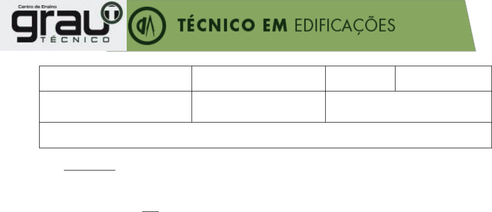 Curso: Técnico em Edificações Prova Final – 10 Pontos Módulo: III Data: 03/03/2017 Professor: Leandro Gustavo Disciplina: Manutenção Predial Turma: EDF 02/04 Aluno (a): INSTRUÇÕES: Leia atentamente as questões propostas; As respostas deverão ser feitas à caneta (azul ou preta ); Prova a lápis não caberá recurso / revisão; Não rasure. Identificação e descrição do mecanismo, da origem e causas da manifestação patológica. Esclarece todos os aspectos de um problema patológico. Patologia Diagnóstico Terapia Retração Capacidade de um produto manter seu desempenho acima de níveis aceitáveis pré-estabelecidos. Durabilidade Manutenção Habitabilidade Patologia Relacione a 2ª coluna de acordo com a 1ª: Manutenção Preditiva Manutenção Preventiva Manutenção Corretiva ( ) Entra em ação antes da necessidade de reparo. ( ) Programadas para serem executadas periodicamente. ( ) Aumenta o tempo de vida útil das partes de um edifício. ( ) Visa a restauração ou reparação de anomalias. ( ) Atividade de observar e de executar alguns serviços preliminares. ( ) Espera-se acontecer a patologia para depois fazer a reparação. É o tempo em que a probabilidade é grande de que eventuais defeitos embutidos no produto em estado novo venham a se manifestar. Check List Prazo de garantia Contrato Termo aditivo São considerados causas do desperdício de materiais e serviços executados em obras que podem posteriormente gerar patologias. Mão de obra desqualificada Improvisos em obras A Valorização da atividade de projeto A falta de planejamento da obra Coloque V (verdadeiro) ou F (falso) nas afirmativas abaixo: ( ) FISSURAS são rupturas provocadas por esforços mecânicos, que aberturas superiores a 1 mm. ( ) A EXSUDAÇÃO do concreto é uma das causas patológicas em argamassas de piso. ( ) SAPONIFICAÇÃO são manchas que aparecem quando aplica-se a tinta diretamente sobre o reboco úmido ou por ação de infiltrações. ( ) As previsões orçamentárias devem incluir uma reserva de recursos destinada à realização de serviços de manutenção não planejada. Relacione a 2ª coluna de acordo com a 1ª: (A) Eflorescência (B) Saponificação (C) Desagregação (D) Enrugamento ( ) Aplicação de tinta em reboco não curado. ( ) Excesso de quantidade de tinta em uma demão. ( ) Alcalinidade natural da cal e cimento que constituem o reboco. ( ) Quando aplica-se tintas em reboco úmido. São os serviços que pertencem a áreas que são de vital importância para a empresa e assim sendo, NÃO PODEM TER QUALQUER TIPO DE PARALISAÇÃO. Esses serviços devem ser feitos por FUNCIONÁRIOS PRÓPRIOS pela praticidade e importância: Serviços de primeira categoria Serviços de segunda categoria Serviços de todas as categorias Serviços de terceira categoria São as normas que regulam a conduta interna dos condôminos, locatários, ocupantes das unidades e funcionários, para que haja uma convivência harmônica entre as pessoas. Convenção de condomínio Regimento Interno Manutenção efetiva Segurança em edificação Uma visita técnica em uma edificação é uma importante ferramenta para diagnosticar possíveis patologias, suas causas e formas de reparação. Descreva abaixo, com suas palavras, como foram as experiências abordadas nas VPO´s realizadas nas seguintes edificações: Edifício Maria Ernestina de Carvalho Museu Inimá de Paula Colégio Soma Explique a diferença encontrada nessas 3 edificações, estado de conservação, patologias encontradas e sugestão de melhorias quanto as patologias e conservação das edificações visitadas. (mínimo 20 linhas, com título). PODE USAR O VERSO DA FOLHA.