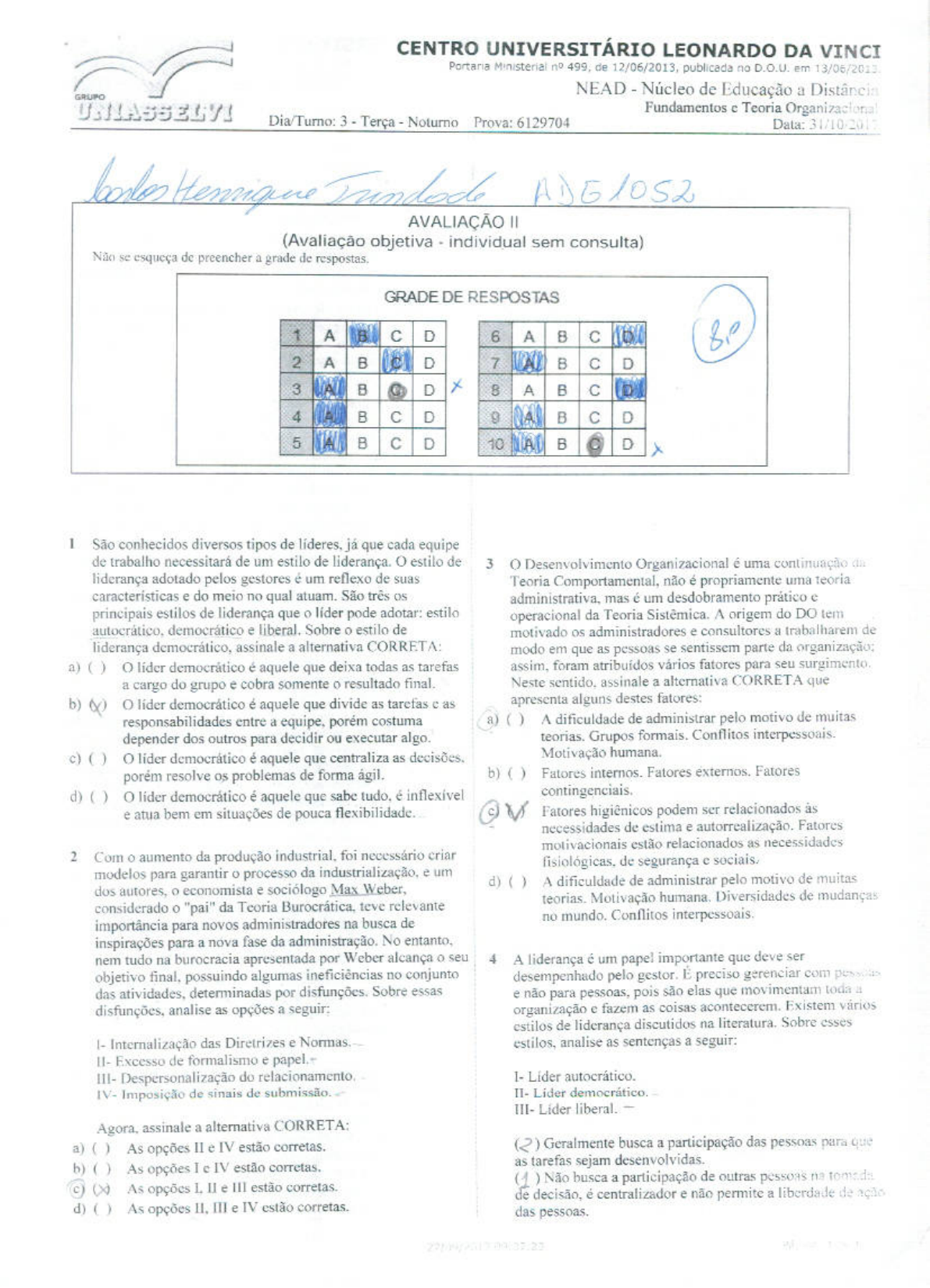 Questdo Marcar questão Ainda não respondida Vale 0,60 ponto(s). 1:43:29 Cada uma das teorias administrativas surgiu como uma resposta aos problemas...