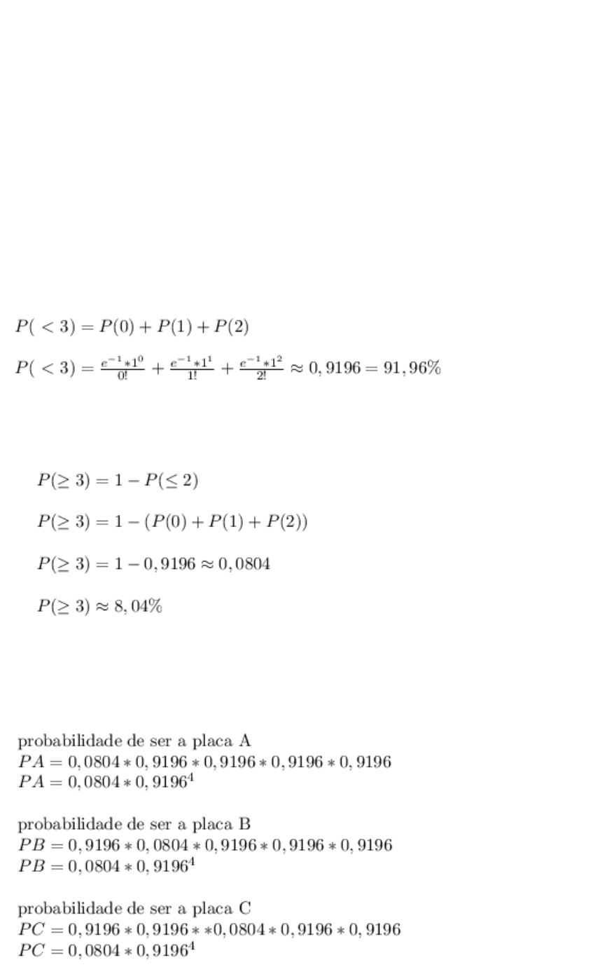 Breno Bonfim Gonçalves Lopes Matricula 131010184 O número de partículas radioativas emitidas por uma fonte segue distribuição de Poisson com taxa média (λ) igual a 0,5 partículas por segundo. Uma chapa fotográfica é sensibilizada ao ser atingida por 3 ou mais partículas. 1. Quantas partículas a fonte emite em média a cada 2 segundos? λ = 0,5 p/s *2s= 1p 2. Calcule a probabilidade da fonte emitir menos de 3 partículas em 2 segundos. 3. Calcule a probabilidade de uma chapa, exposta por 2 segundos à frente da fonte das partículas radioativas, ficar sensibilizada. 4. Se 5 chapas são colocadas, uma após outra, durante 2 segundos cada uma em frente à fonte, qual a probabilidade de exatamente somente uma delas ser sensibilizada?