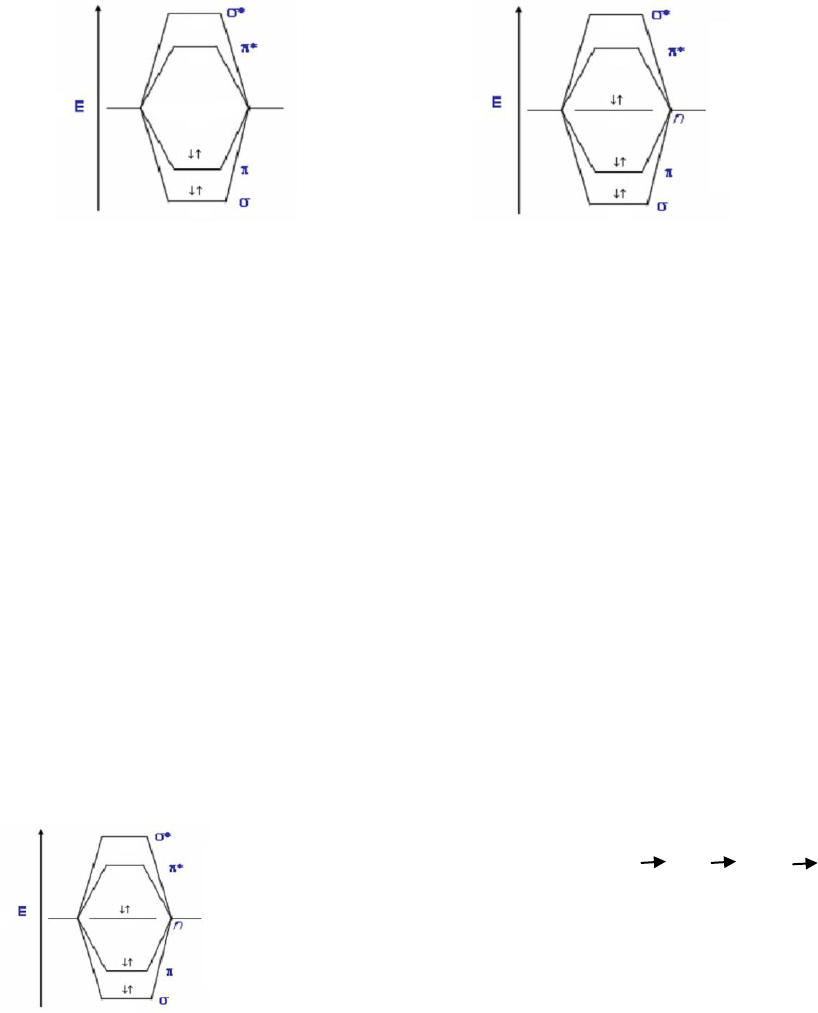 Questões: Ultravioleta 1. O diagrama de níveis de energia do eteno é dado na Figura A abaixo. Que tipo de transições eletrônicas os elétrons de mais alta energia podem sofrer? 2. O diagrama de níveis de energia de um grupo carbonila (C = O) é dado na Figura B abaixo. a) Que tipos de transições eletrônicas os elétrons de mais alta energia podem sofrer? b) Qual dessas transições requer maior energia? c) Qual dessas transições corresponde ao maior comprimento de onda de luz? A B 3. Certa amostra de ciclohexano está contaminada com benzeno. Em 260 nm o benzeno tem absortividade molar igual a 230, enquanto que o ciclohexano não absorve nesse comprimento de onda. Um espectro de UV de um ciclohexano contaminado com benzeno (célula porta-amostra com 1 cm de comprimento) mostra uma absorbância de 0,03 em 260 nm. Qual a concentração de benzeno na amostra? 4. Qual grupo cromóforo é responsável pela transição de menor energia no ciclopenteno? Se o ciclopenteno absorve luz em aproximadamente 190nm e não apresenta nenhuma outra absorção com comprimento de onda maior, que tipo de transição é responsável pela absorção observada? 5. O maior comprimento de onda absorvido pelo 3-octeno na região do UV é a 185nm. Qual o cromóforo responsável pela absorção e que tipo de transição ocorre? 6. A transição de mais baixa energia no UV detectada no éter dimetílico ocorre em 185nm. Qual o cromóforo responsável por essa transição e qual a transição que ocorre? 7. A transição de mais baixa energia no UV detectada na trietilamina ocorre em 195nm. Qual o cromóforo responsável por essa transição e qual a transição que ocorre? 8. Considere o diagrama de energia do cromóforo carbonila, representado acima. Disponha as transições n σ*, π π* e n π* em ordem decrescente de energia. 9. As absorções devidas às transições π π* do eteno e do 3-octeno ocorrem em 163 e 185nm, respectivamente. Por que as duas absorções não ocorrem no mesmo comprimento de onda? 10. Explique por que o eteno absorve em 165 nm enquanto que o 1,3-butadieno absorve em 217nm. 11. Explique por que o 1,3-butadieno absorve em 217nm enquanto que o 1, 4-pentadieno absorve em 175 nm. 12. Que diferença você pode prever nos espectros de ultravioleta próximo dos compostos a seguir: 13.Considerando somente as transições π π* qual dos compostos abaixo deve apresentar absorção no maior e o menor comprimento de onda? Por quê?