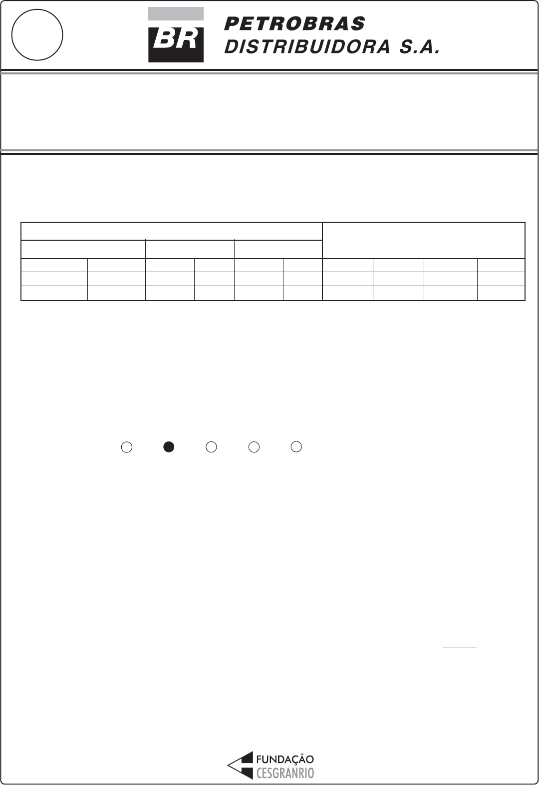 TÉCNICOTÉCNICOTÉCNICOTÉCNICOTÉCNICO(A)(A)(A)(A)(A) DE DE DE DE DE QUÍMICA JÚNIORQUÍMICA JÚNIORQUÍMICA JÚNIORQUÍMICA JÚNIORQUÍMICA JÚNIOR MA IO / 2 01 0 05 LEIA ATENTAMENTE AS INSTRUÇÕES ABAIXO. 01 - Você recebeu do fiscal o seguinte material: a) este caderno, com os enunciados das 50 questões objetivas, sem repetição ou falha, com a seguinte distribuição: b) 1 CARTÃO-RESPOSTA destinado às respostas às questões objetivas formuladas nas provas. 02 - Verifique se este material está em ordem e se o seu nome e número de inscrição conferem com os que aparecem no CARTÃO-RESPOSTA. Caso contrário, notifique IMEDIATAMENTE o fiscal. 03 - Após a conferência, o candidato deverá assinar no espaço próprio do CARTÃO-RESPOSTA, a caneta esferográ- fica transparente de tinta na cor preta. 04 - No CARTÃO-RESPOSTA, a marcação das letras correspondentes às respostas certas deve ser feita cobrindo a letra e preenchendo todo o espaço compreendido pelos círculos, a caneta esferográfica transparente de tinta na cor preta, de forma contínua e densa. A LEITORA ÓTICA é sensível a marcas escuras; portanto, preencha os campos de marcação completamente, sem deixar claros. Exemplo: A C D E 05 - Tenha muito cuidado com o CARTÃO-RESPOSTA, para não o DOBRAR, AMASSAR ou MANCHAR. O CARTÃO-RESPOSTA SOMENTE poderá ser substituído caso esteja danificado em suas margens superior ou inferior - BARRA DE RECONHECIMENTO PARA LEITURA ÓTICA. 06 - Para cada uma das questões objetivas, são apresentadas 5 alternativas classificadas com as letras (A), (B), (C), (D) e (E); só uma responde adequadamente ao quesito proposto. Você só deve assinalar UMA RESPOSTA: a marcação em mais de uma alternativa anula a questão, MESMO QUE UMA DAS RESPOSTAS ESTEJA CORRETA. 07 - As questões objetivas são identificadas pelo número que se situa acima de seu enunciado. 08 - SERÁ ELIMINADO do Processo Seletivo Público o candidato que: a) se utilizar, durante a realização das provas, de máquinas e/ou relógios de calcular, bem como de rádios gravadores, headphones, telefones celulares ou fontes de consulta de qualquer espécie; b) se ausentar da sala em que se realizam as provas levando consigo o Caderno de Questões e/ou o CARTÃO-RESPOSTA; c) se recusar a entregar o Caderno de Questões e/ou o CARTÃO-RESPOSTA quando terminar o tempo estabelecido. 09 - Reserve os 30 (trinta) minutos finais para marcar seu CARTÃO-RESPOSTA. Os rascunhos e as marcações assinaladas no Caderno de Questões NÃO SERÃO LEVADOS EM CONTA. 10 - Quando terminar, entregue ao fiscal O CADERNO DE QUESTÕES E O CARTÃO-RESPOSTA e ASSINE A LISTA DE PRESENÇA. Obs. O candidato só poderá se ausentar do recinto das provas após 1 (uma) hora contada a partir do efetivo início das mesmas. Por motivos de segurança, o candidato NÃO PODERÁ LEVAR O CADERNO DE QUESTÕES, a qualquer momento. 11 - O TEMPO DISPONÍVEL PARA ESTAS PROVAS DE QUESTÕES OBJETIVAS É DE 3 (TRÊS) HORAS, findo o qual o candidato deverá, obrigatoriamente, entregar O CADERNO DE QUESTÕES E O CARTÃO-RESPOSTA. 12 - As questões e os gabaritos das Provas Objetivas serão divulgados no primeiro dia útil após a realização das mesmas, no endereço eletrônico da FUNDAÇÃO CESGRANRIO (http://www.cesgranrio.org.br). Pontos 1,0 − Pontos 1,5 − CONHECIMENTOS BÁSICOS CONHECIMENTOS ESPECÍFICOSLÍNGUA PORTUGUESA I MATEMÁTICA INFORMÁTICA II Questões 1 a 5 6 a 10 Pontos 1,0 1,5 Questões 11 a 15 − Questões 16 a 20 − Questões 21 a 30 31 a 40 Pontos 2,0 2,5 Questões 41 a 50 − Pontos 3,0 − www.pciconcursos.com.br TÉCNICO(A) DE QUÍMICA JÚNIOR 2 M g N a R u TaN b D b X e R n In C C d P 5 2 A s A g B r Te N e C o m m a s s a s a tô m ic a s re fe ri d a s a o is ó to p o 1 2 d o c a rb o n o I A t S g T l S i Z n S 5 3 S e H s P o H e S b A r M t U u n U u u U u b A l R f S n O H g G e 5 1 B F r 5 4K r B h B i F P b N A u G a C u C l R a W Y C r B a L a -L u A c- L r Z r V P t P d N i S c C s 4 5 1 ,9 9 6 2 6 1 3 2 7 3 7 9 7 6 8 2 8 6 1 0 4 3 1 9 1 ,0 0 7 9 LÍTIO SÓDIO POTÁSSIO RUBÍDIO CÉSIO FRÂNCIO RÁDIO HIDROGÊNIO RUTHERFÓRDIOHÁFNIOZIRCÔNIO TITÂNIO VANÁDIO TÂNTALO DÚBNIO SEABÓRGIO RÊNIO BÓHRIO HASSIOÓSMIO RUTÊNIO FERRO COBALTO RÓDIO IRÍDIO MEITNÉRIO UNUNILIO UNUNÚNIO UNÚNBIO PLATINAPALÁDIO NÍQUEL COBRE ZINCO CÁDMIO MERCÚRIO TÁLIO CHUMBO BISMUTO POLÔNIO ASTATO RADÔNIO BROMO CRIPTÔNIO TELÚRIO IODO XENÔNIO ESTANHO ANTIMÔNIO ÍNDIO GÁLIOALUMÍNIO BORO CARBONO NITROGÊNIO ENXOFRE CLORO OXIGÊNIO FLÚOR HÉLIO ARGÔNIO NEÔNIO FÓSFORO SILÍCIO GERMÂNIO ARSÊNIO SELÊNIO PRATA OURO TUNGSTÊNIOMOLIBDÊNIO TECNÉCIO CRÔMIO MANGANÊS NIÓBIO BERÍLIO CÁLCIO ESCÂNDIO ÍTRIO ESTRÔNCIO BÁRIO MAGNÉSIO 9 1 ,2 2 4 (2 ) 4 3 2 1 8 7 ,6 2 9 8 ,9 0 6 1 3 1 ,2 9 (2 ) 7 4 ,9 2 2 1 5 ,9 9 9 1 9 2 ,2 2 1 9 5 ,0 8 (3 ) 7 2 ,6 1 (2 ) 2 8 ,0 8 6 5 8 ,9 3 3 1 2 6 ,9 0 7 8 ,9 6 (3 ) 1 0 ,8 11 (5 ) 4 1 7 5 4 ,9 3 8 5 8 ,6 9 3 1 2 1 ,7 6 8 3 ,8 0 1 4 ,0 0 7 1 0 6 ,4 2 1 2 7 ,6 0 (3 ) 7 9 ,9 0 4 2 6 ,9 8 2 5 5 ,8 4 5 (2 ) 11 8 ,7 1 3 9 ,9 4 8 4 ,0 0 2 6 3 9 1 9 9 ,0 1 2 2 9 5 ,9 4 3 7 1 2 8 8 ,9 0 6 2 2 3 ,0 2 4 7 2 3 1 3 7 ,3 3 1 9 0 ,2 3 (3 ) 2 0 8 ,9 8 11 2 ,4 1 3 5 ,4 5 3 2 2 2 ,0 2 2 0 9 ,9 8 2 0 9 ,9 9 11 4 ,8 2 3 2 ,0 6 6 (6 ) 2 0 7 ,2 1 0 7 ,8 7 2 0 ,1 8 0 4 5 3 3 9 ,0 9 8 1 7 8 ,4 9 (2 ) 3 0 5 7 a 7 1 2 9 11 2 3 4 5 6 7 11 1 2 1 3 1 4 1 5 1 6 1 7 1 8 V II I V II I V II I 8 9 1 0 2 6 5 5 7 2 2 5 6 6 ,9 4 1 (2 ) 9 2 ,9 0 6 3 6 7 5 8 1 8 5 8 9 a 1 0 3 7 8 8 4 8 8 1 0 6 1 0 7 1 0 8 1 0 9 11 0 11 1 11 2 5 0 ,9 4 2 2 2 6 ,0 3 3 5 11 2 4 ,3 0 5 1 8 0 ,9 5 4 8 4 9 5 0 2 4 1 3 2 ,9 1 4 6 2 2 8 5 6 2 7 8 4 7 ,8 6 7 2 6 2 4 0 2 0 4 4 ,9 5 6 3 8 5 8 5 ,4 6 8 1 0 2 ,9 1 2 0 0 ,5 9 (2 ) 6 5 ,3 9 (2 ) 1 8 ,9 9 8 1 8 6 ,2 1 2 0 4 ,3 8 6 3 ,5 4 6 (3 ) 3 0 ,9 7 4 1 0 1 ,0 7 (2 ) 1 9 6 ,9 7 6 9 ,7 2 3 1 2 ,0 11 34 7 4 8 0 7 7 8 3 8 7 1 0 5 4 0 ,0 7 8 (4 ) 1 8 3 ,8 4 3 3 1 7 1 5 1 4 1 8 1 6 1 3 1 0 2 2 ,9 9 0 4 4 2 2 4 2 1 2 3 4 5 6