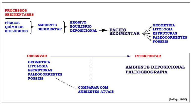 Ambiente sedimentar • Área da superfície terrestre onde está acontecendo determinado conjunto de processos físicos, químicos e biológicos. Pode ser: – Erosivo – Neutro (equilíbrio) – Deposicional (= de sedimentação) Ambiente deposicional • Ambiente sedimentar onde, ao longo do tempo, predominam processos de acumulação de sedimentos Fácies sedimentar • Termo introduzido por Steno (1669) mas popularizado por Gressly (1838) • Corpo de rocha que apresenta um aspecto diferente das rochas acima, abaixo e lateralmente adjacentes • Pode ser definida em várias escalas, dependendo do objetivo do estudo, tempo disponível e abundância de feições na rocha • Definida com base em: – Geometria – Litologia – Textura (granulometria, seleção,arredondamento) – Estruturas sedimentares – Conteúdo fossilífero – Padrão de paleocorrentes • Resultado de um processo ou de um conjunto de processos deposicionais que ocorrem em um ambiente deposicional • Objetivo principal = fazer interpretações paleoambientais a partir das facies FÁCIES = PROCESSO • Comumente reduzidas à litofacies (granulometria, composição e estruturas sedimentares dominantes) Ex: Arenito médio com estratificação cruzada acanalada • Código de litofacies (Miall, 1978) Ex: Gmm, St, Fsl Associação de fácies • Grupo de facies geneticamente relacionadas que tem algum significado ambiental – Ex: Conglomerado lenticular acamadado e arenito com estratificação cruzada planar subordinado (ou associação de litofácies de canal fluvial) • São os blocos básicos do ambiente deposicional (associação de fácies de geometria tridimensional) Elemento arquitetural • Subdivisão morfológica de um sistema deposicional particular caracterizada por uma assembléia distinta de fácies e processos deposicionais – Ex: uma barra em pontal de um sistema deposicional fluvial Sistema deposicional • Assembléia tridimensional de litofácies geneticamente ligadas por processos e ambientes ativos (sistemas modernos) ou inferidos (sistemas antigos) • Formado pela associação de fácies acumuladas pelos diversos processos deposicionais que se desenvolvem em um mesmo ambiente deposicional • Ou seja, tentativa de simular os padrões e resultados de sedimentação de um ambiente específico, gerando um modelo Sucessão de fácies • Mudança progressiva e sistemática das propriedades de fácies numa determinada direção (horizontal ou vertical) Ex. – Teor de areia – Granulometria (granodecrescência) – Espessura das camadas (estratodecrescência) – Tipos de estruturas sedimentares Lei de Walther (1894) • “Facies adjacentes umas às outras numa sucessão vertical contínua também se acumularam adjacentes umas às outras lateralmente” • Ou seja, uma sucessão vertical de facies reflete mudanças laterais Mecanismos de controle da sedimentação • Autóctones = internos, pertencentes ao próprio sistema deposicional (ex: processo de migração lateral de um sistema fluvial meandrante) • Alóctones = externos ao sistema deposicional variações do nível do mar, climáticas e tectônicas (subsidência/soerguimento) • Transgressão é o deslocamento da linha de costa no sentido do continente • Regressão é o deslocamento da linha de costa no sentido do mar (bacia) • Progradação influxo sedimentar > taxa de criação de espaço = fácies + proximais sobrepostas a + distais • Retrogradação influxo sedimentar < taxa de criação de espaço = fácies + distais sobrepostas a + proximais • Agradação influxo sedimentar ~ taxa de criação de espaço Tipos de sistemas deposicionais Continentais em terra Transicionais/costeiros parte em terra,parte no mar Marinhos no mar Estruturas Sedimentares Primárias O que são? • Feições geradas durante a deposição dos sedimentos, ou logo após, quando os sedimentos ainda se encontram sob a influência das condições do ambiente deposicional O que indicam? • Topo da camada • Orientação do processo de dispersão desedimentos • Processo responsável pelo transporte edeposição de sedimentos • Identificação do ambiente deposicional (junto com associação e sucessão vertical de facies) ESP indicadoras de topo • Ripples • Gretas de contração • Impressões de pingos de chuva • Fósseis preservados em posição de crescimento Classificação das ESP • Estruturas fluidodinâmicas = influência das condições hidro- ou aero-dinâmicas do fluido responsável pelo transporte e deposição das partículas • Estruturas deformativas = deformação física ou biogênica • Estruturas biogênicas = icnofósseis Transporte e Deposição • Agentes de transportes: vento, água, gravidade e gelo • Fatores que interferem na capacidade de transporte: – Velocidade e viscosidade da água – Velocidade do vento – Tamanho da partícula sólida – Densidade da partícula sólida – Morfologia da partícula sólida Mecanismos de transporte • Por fluxo fluido – Tração – Saltação – Suspensão • Por fluxo gravitacional – Fluxo de grãos (grain flow) – Fluxo de detritos (debris flow) – Fluxo liquefeito (liquefied flow) – Fluxo de densidade (density flow) Diferentes mecanismos de transporte produzem depósitos distintos Por fluxo fluido • Movimentação individual do grão • Perda gradual de carga sedimentar • Exemplo: Um rio • Comportamento determinado pela velocidade e forma do canal Fluxo turbulento ou laminar Fluxo laminar • Linhas de fluxo paralelas • Normalmente confinadas às paredes e topo do canal Fluxo turbulento • Linhas de fluxo irregulares, formando vórtices • Mantém partículas em suspensão • Muito mais erosivo Por fluxo gravitacional Velocidade de fluxo e granulometria Regime de fluxo • Southard & Bouchwal (1990) sequência específica de formas de leito se desenvolvem em resposta à velocidade crescente • Diferentes granulometrias possuem forma