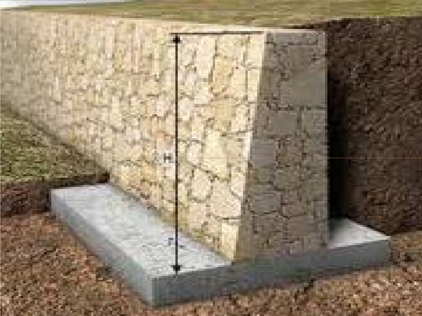 OBRAS DE TERRA DimensionamentoDimensionamento MUROS DE ARRIMO OU DE CONTENÇÃO CURSO: Engenharia Civil SÉRIE: 10º Semestre DISCIPLINA: Obras de Terra CARGA HORÁRIA SEMANAL: 02 aulas-hora CARGA HORÁRIA SEMESTRAL: 40 aulas-hora PROJETO DE MURO DE ARRIMO Para projetar e dimensionar muros de arrimo deve-se considerar que os muros são estruturas que : • permitem uma mudança de nível – para reforçar um talude ou suportar um corte; • suportam empuxos de terra que é a ação produzida pelo maciço terroso sobre as obras com ele em contato. A determinação do valor do empuxo é fundamental na análise e projeto de muros de arrimo. 1ª. Etapa Pré-dimensionamento. O projeto é conduzido assumindo-se um pré-dimensionamento 2ª. Etapa Definição dos esforços atuantes. PROJETO DE MURO DE ARRIMO Definição dos esforços atuantes. • Cálculo do empuxo de terra 3ª. Etapa Verificação das condições de estabilidade • Tombamento . • Escorregamento. • Ruptura do terreno de fundação 1ª. Etapa Pré-dimensionamento. MURO DE GRAVIDADE CRISTA LARGURA DA BASE LARGURA DA BASE ALTURA DA BASE 1ª. Etapa Pré-dimensionamento. MURO DE FLEXÃO CRISTA LARGURA DA BASE ALTURA DA BASE ALTURA DA BASE 2ª. Etapa Definição dos esforços atuantes. Ação produzida pelo maciço terroso sobre as obras em contato Métodos mais utilizados: • METODO DE RANKINE • MÉTODO DE COULOMB 2ª. Etapa Definição dos esforços atuantes. • Supõe que: • Empuxos laterais são limitados a paredes verticais; MÉTODO DE RANKINE • Empuxos laterais variam linearmente com a profundidade; • A pressão resultante é encontrada a 1/3 da altura (acima da base da parede); • A força resultante do empuxo é paralela a superfície do terreno. 2ª. Etapa Definição dos esforços atuantes. • METODO DE RANKINE • Cálculo dos empuxos totais: E A e Ep EA EAV Bo H EP EAH B 2ª. Etapa Definição dos esforços atuantes. • METODO DE RANKINE Fórmulas - cálculo dos empuxos totais: Empuxo Ativo e Passivo • Empuxo ativo Coeficiente de Empuxo ativo MÉTODO DE RANKINE • Empuxo passivo Coeficiente de Empuxo ativo 2ª. Etapa Definição dos esforços atuantes. • Empuxo ativo MÉTODO DE RANKINE • Empuxo ativo horizontal (Eah) e Empuxo ativo vertical (Eav) 2ª. Etapa Definição dos esforços atuantes. • Cálculo do peso do muro e momentos • Características do material de construção do muros � Ex: muro de concreto armado Obs.: Dividir o muro em áreas para cálculo de peso e momentos MÉTODO DE RANKINE Area Peso Braço de MomentoArea Peso (t) Braço de alavanca (m) Momento (t.m/m) 1 2 3 Soma (t) (t.m/m) 3ª. Etapa Verificação das condições de estabilidade Na verificação de um muro de arrimo, seja qual for a sua seção, devem ser investigadas as seguintes condições de estabilidade: • tombamento;• tombamento; • deslizamento da base; • capacidade de carga da fundação ESTABILIDADE DOS MUROS DE ARRIMO Verificação de condições de estabilidade 3ª. Etapa Verificação das condições de estabilidade • Segurança contra Tombamento Para que o muro não tombe em torno da extremidade externa (ponto A da Figura) o momento resistente deve ser maior do que o momento solicitante. ∑Mres > ∑Msolic∑Mres > ∑Msolic • O momento resistente (Mres) corresponde ao momento gerado • pelo peso do muro. • O momento solicitante (Msolic) é definido como o momento do empuxo total atuante em relação ao ponto A. 3ª. Etapa Verificação das condições de estabilidade • Segurança contra Deslizamento A segurança contra o deslizamento consiste na verificação do equilíbrio das componentes horizontais das forças atuantes, com a aplicação de um fator de segurança adequado: ∑Fres >∑ Fsolic∑Fres >∑ Fsolic 3ª. Etapa Verificação das condições de estabilidade • Segurança contra Deslizamento • O valor de S é calculado pelo produto da resistência ao cisalhamento na base do muro vezes a largura; isto é : 3ª. Etapa Verificação das condições de estabilidade • Capacidade de carga A capacidade de carga consiste na verificação da segurança contra a ruptura e deformações excessivas do terreno de fundação. A análise geralmente considera o muro rígido e a distribuição de tensões linear ao longo da base. Se a resultante das forças atuantes no muro localizar-se no núcleo centra da base do muro, o diagrama de pressões no solo será aproximadamente trapezoidal. O terreno estará submetido apenas a tensões de compressão. 3ª. Etapa Verificação das condições de estabilidade • Capacidade de carga A Figura apresenta os esforços atuantes na base do muro. A distribuição de pressões verticais na base do muro apresenta uma forma trapezoidal . Esta distribuição não uniforme é devida à ação combinada do peso W e do empuxo E sobre o muro. As equações de equilíbrio serão: onde: V = somatório das forças verticais; e = excentricidade; b = largura da base do muro. 3ª. Etapa Verificação das condições de estabilidade • Capacidade de carga e’ onde: V = somatório das forças verticais; e = excentricidade; b = largura da base do muro. 3ª. Etapa Verificação das condições de estabilidade • Capacidade de carga A excentricidade é calculada pela resultante de momentos em relação ao ponto A: Deve-se garantir: • que a base esteja submetida a tensões de compressão (����min > 0) • a resultante deve estar localizada no terço central; ou seja, e <B / 6 , para evitar pressões de tração na base do muro. 3ª. Etapa Verificação das condições de estabilidade • Capacidade de carga Para evitar a ruptura do solo de fundação do muro, o critério usualmente adotado recomenda-se que sendo qmax a capacidade de suporte calculada pelo método clássico de Terzaghi- Prandtl (Terzaghi e Peck, 1967), considerando a base do muro como sendo uma sapata, conforme mostra a equação 3ª. Etapa Verificação das condições de estabilidade • 