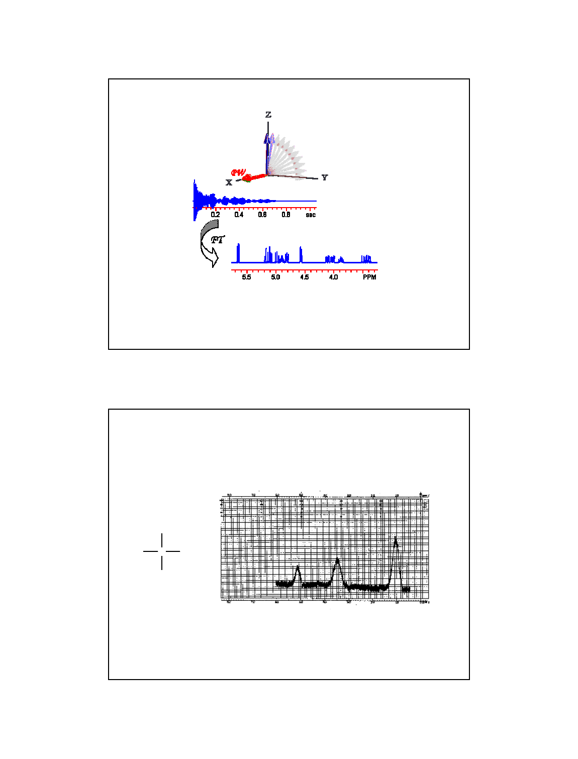 1 RESSONÂNCIA MAGNÉTICA NUCLEAR Prof. Dr. Roberto Berlinck Análise de Compostos Orgânicos Capítulo III O Retorno de Jedi Acoplamento Spin-Spin Espectro do etanol em baixa resolução CH3C OH H H 1 2 3 1 2 3 Observa-se apenas linhas alargadas para o sinal de cada um dos três tipos de hidrogênios diferentes presentes na molécula. 2 Acoplamento Spin-Spin Espectro do etanol em resolução “normal” CH3C OH H H 1 2 3 1 2 3 Observa-se que os sinais dos hidrogênios 2 e 3 apresentam-se como “linhas múltiplas”. O que dá origem à este “fenômeno”? Acoplamento Spin-Spin Pelo fato dos núcleos dos átomos com I?0 terem momento magnético, comportam-se como “ímãs. Por se comportarem como ímãs, os núcleos “sentirão” uns aos outros através das ligações químicas. Isso por que os elétrons que constituem as ligações químicas também apresentam I?0, e “sentirão” o momento magnético dos núcleos, “transmitindo esta informação” entre os núcleos acoplamento spin-spin. H C C H transmissão da informação acoplamento spin-spin O acoplamento spin-spin é também chamado de acoplamento escalar, pois é transmitido através de ligações químicas e é mensurável (J1H-1H). 3 Acoplamento Spin-Spin O número de linhas de um determinado sinal de um ou mais 1Hs de uma mesma molécula reflete o acoplamento spin-spin entre os núcleos. No caso do etanol: Os hidrogênios do grupo metileno (CH2-2) “sentem” os hidrogênios do grupo CH3-3 vizinho, e o seu sinal aparece como sendo um quarteto (quatro linhas simétricas duas a duas). CH3C OH H H 1 2 3 1 2 3 Acoplamento Spin-Spin O mesmo acontece com os hidrogênios do grupo metila CH3-3, que “sentem” os dois hidrogênios do grupo CH2-2 vizinho, e o seu sinal aparece como sendo um tripleto. CH3C OH H H 1 2 3 1 2 3 Por que o hidrogênio do grupo OH não “sente” os dois hidrogênios vizinhos do grupo CH2-2? Pelo fato de estar ligado a um heteroátomo muitas implicações. 4 Acoplamento Spin-Spin Outro exemplo: O hidrogênio do grupo CH-(a) “sente” os dois hidrogênios do grupo CH2- (b) vizinho, e seu sinal aparece como sendo um tripleto. Acoplamento Spin-Spin Outro exemplo: O mesmo acontece para os hidrogênios do grupo CH2-(b), que “sentem” o hidrogênio do grupo CH-(a), e seu sinal aparece como sendo um dubleto. 5 Acoplamento Spin-Spin Logo, a multiplicidade do sinal de um determinado hidrogênio, ou de um grupo de hidrogênios idênticos, será multiplicidade do sinal = n + 1 aonde n = número de hidrogênios vizinhos. Assim, CH3C OH H H 1 2 3 Multiplicidade do CH3 = 3 (2 vizinhos) tripleto Multiplicidade do CH2 = 4 (3 vizinhos) quarteto Multiplicidade do CH = 3 (2 vizinhos) tripleto Multiplicidade do CH2 = 2 (1 vizinho) dubleto Cl C Cl H C Cl H H Acoplamento Spin-Spin Qual o fenômeno físico que dá origem à multiplicidade das linhas? Um hidrogênio, ou um grupo de hidrogênios idênticos, “observa” as duas orientações de spin de cada um dos hidrogênios do grupo vizinho com o qual estão acoplando. Assim, no caso do etanol, os núcleos dos dois hidrogênios do grupo CH2 podem assumir as seguintes orientações de spin: CH3C OH H H 1 2 3 linha externa do tripleto linha interna do tripleto, com o dobro da intensidade linha externa do tripleto 6 Acoplamento Spin-Spin E os hidrogênios do grupo CH3 (metila), poderão assumir todas as orientações de spin assinaladas abaixo, fazendo com que o sinal do grupo CH2 (metileno) apareça como um quarteto. CH3C OH H H 1 2 3 linha externa do quarteto linha interna do quarteto, com o triplo da intensidade linha interna do quarteto, com o triplo da intensidade linha externa do quarteto Acoplamento Spin-Spin No caso do 1,1,2-tricloroetano, aplica-se a mesma regra. Ou seja, o hidrogênio do grupo CH observa todas as orientações dos hidrogênios do grupo CH2, e o sinal do CH aparecerá como um tripleto. Cl C Cl H C Cl H H linha externa do tripleto linha interna do tripleto, com o dobro da intensidade linha externa do tripleto E o sinal dos hidrogênios do grupo CH2 aparecerá como um dubleto,devido às duas orientações possíveis de serem observadas para o núcleo do átomo de hidrogênio do grupo CH. 7 Acoplamento Spin-Spin Logo, como a multiplicidade de um sinal depende do número de spin do átomo vizinho, a multiplicidade de um átomo ou grupo de átomos idênticos acoplados com núcleos vizinhos será: multiplicidade do sinal = 2.n.I + 1 Aonde n é o número de átomos vizinhos e I é o número de spin dos átomos vizinhos. Assim, por exemplo, no caso do etanol deuterado no grupo metila ou no grupo metileno: HO C C H H D D D Multiplicidade do CH2 = 2.3.1 + 1 = septeto Multiplicidade do CD3 = 2.2.1/2 + 1 = tripleto Multiplicidade do CD2 = 2.3.1/2 + 1 = quarteto Multiplicidade do CH3 = 2.2.1 + 1 = quintupleto HO C C D D H H H Acoplamento Spin-Spin Em termos de distribuição dos núcleos desacoplados e acoplados em níveis de energia: 8 Acoplamento Spin-Spin Diagramas de acoplamento: dubleto Acoplamento Spin-Spin Diagramas de acoplamento: tripleto 9 Acoplamento Spin-Spin Diagramas de acoplamento: tripleto Acoplamento Spin-Spin Diagramas de acoplamento: tripleto 10 Acoplamento Spin-Spin Diagramas de acoplamento: quarteto Acoplamento Spin-Spin Diagramas de acoplamento: quarteto 11 Então, a multiplicidade do sinal de um próton ou de um grupo de prótons depende do nº de prótons em carbonos vizinhos. Para prótons idênticos que acoplam com outro grupo de idênticos, ambos com spin = ½, o nº de linhas vai depender do nº de prótons vizinhos (n+1) e a intensidade das linhas obedece à distribuição do triângulo de Pascal: 1 singleto 1 1 dubleto 1 2 1 tripleto 1 3 3 1 quarteto 1 4 6 4 1 quinteto 1 5 10 10 5 1 sexteto e assim por diante... No caso de núcleos com I ? ½, a altura relativa das linhas de um determinado sinal também segue o triângulo de Pascal, de acordo com o número de spin do núcleo (I). No caso do deutério, com I = 1, o triân