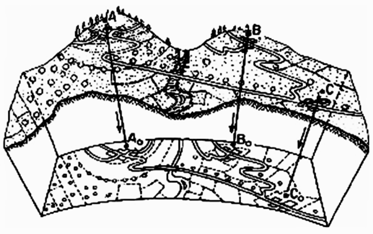 4 NOÇÕES DE TOPOGRAFIA 4.1 INTRODUÇÃO Topografia (do grego topos, lugar, região, e graphein, descrever: "descrição de um lugar") é a ciência que estuda todos os acidentes geográficos definindo a situação e a localização deles numa área qualquer. A topografia atua em áreas relativamente pequenas da superfície da Terra, de modo que sejam representadas particularidades da área, como construções, rios, vegetação, rodovias e ferrovias, limites entre terrenos e propriedades e outros detalhes de interesse (Figura 4.1). As escalas de redução normalmente usadas nos levantamentos topográficos variam de acordo com fim a que se destina o referido trabalho: desde 1:100 em representações de lotes urbanos até cerca de 1:5000, em representações de propriedades rurais. Figura 4.1 Representação da superfície do terreno na planta topográfica A topografia divide-se, basicamente, nas seguintes partes: Topometria, que trata da medição de distâncias e ângulos de modo que permita reproduzir as feições do terreno o mais fielmente possível. Subdivide-se, ainda, em: • Planimetria: determinação dos ângulos e distâncias no plano horizontal, como se a área estudada fosse vista do alto. • Altimetria: determinação dos ângulos e distâncias verticais, ou seja, as diferenças de nível e os ângulos zenitais. Nesse caso, os levantamentos elaborados são representados sobre um plano vertical, como um corte do terreno. Topologia, como subdivisão da topografia, é a parte que trata da interpretação dos dados colhidos através da topometria. Taqueometria, a divisão que trata do levantamento de pontos de um terreno, in loco, de forma a se obter rapidamente plantas com curvas de nível, que permitem representar no plano horizontal as diferenças de níveis. Essas plantas são conhecidas como plani-altimétricas. Fotogrametria é a ciência que permite conhecer o relevo de uma região através de fotografias. Inicialmente as imagens eram tomadas do solo, mas, atualmente elas são produzidas principalmente a partir de aviões e satélites. 4.2 LEVANTAMENTOS TOPOGRÁFICOS Para os levantamentos topográficos (topometria), um dos instrumentos mais utilizados é o teodolito, utilizado para realizar medidas de ângulos verticais e horizontais, como mostrado na Figura 4.2. Basicamente é um telescópio com movimentos graduados na vertical e na horizontal, e montado sobre um tripé, podendo possuir ou não uma bússola incorporada. Figura 4.2 Teodolito mecânico e a leitura de ângulos horizontais com o teodolito Em um levantamento topográfico são feitas determinações angulares e lineares. Estas determinações podem ser: Azimute (Az): é o ângulo horizontal, no sentido horário, tomado em relação ao Norte. O nome é de origem árabe, de as- sumut, traduzido: caminho ou direção. Ângulo Horizontal (Hz): é medido entre as projeções de dois alinhamentos do terreno, no plano horizontal, conforme Figura 4.3. Figura 4.3 Ângulo horizontal (Hz) medido entre a Parede 1 e a Parede 2 Ângulo Vertical (α): é medido entre um alinhamento do terreno e o plano do horizonte. Pode ser ascendente (+) ou descendente (-), conforme se encontre acima (aclive) ou abaixo (declive) deste plano (Figura 4.4). Figura 4.4 Ângulos verticais medidos entre a aresta superior (Parede 1) e inferior (Parede 2) das paredes de uma edificação e o plano do horizonte. Distância Horizontal (DH): é a distância entre dois pontos, no plano horizontal. Este plano pode, conforme indicado na Figura 4.5, passar tanto pelo ponto A, quanto pelo ponto B em questão. Figura 4.5 Distâncias Horizontal, vertical e inclinada de um alinhamento AB qualquer Distância Vertical ou Diferença de Nível (DV ou DN): é a distância medida entre dois pontos, num plano vertical que é perpendicular ao plano horizontal. Este plano vertical pode passar por qualquer um dos pontos A/A’ ou B/B’ mostrados na Figura 4.5. Distância Inclinada (DI): é a distância medida entre dois pontos, em planos que seguem a inclinação da superfície do terreno (Figura 4.5). É importante relembrar que as grandezas representadas pela planimetria são: distância e ângulo horizontais (planta); enquanto as grandezas representadas pela altimetria são: distância e ângulo verticais, representados em planta através das curvas de nível, ou, através de um perfil. Além do teodolito, alguns outros equipamentos são utilizados nos levantamentos topográficos, tais como: Trenas: Figura 4.6 Trenas de fibra de vidro Piquetes e estacas: Figura 4.7 Piquetes e estacas Balizas: Níveis de cantoneira: Após o levantamento topográfico, o resultado é a determinação de uma poligonal, que pode ser fechada (Figura 4.8), ou, como no caso mais comum a ferrovias, aberta (como será visto no item 5.1.4). Figura 4.8 Poligonal fechada. 5 PROJETO GEOMÉTRICO 5.1 ESTUDOS DE TRAÇADO 5.1.1 INTRODUÇÃO Uma das fases preliminares, que antecede os trabalhos de execução do projeto geométrico propriamente dito, é a constituída pelos estudos de traçado, que tem por objetivos principais (i) a delimitação dos locais convenientes para a passagem da ferrovia, a partir da obtenção de informações básicas a respeito da geomorfologia da região, e (ii) a caracterização geométrica desses locais de forma a permitir o desenvolvimento do projeto pretendido. De conformidade com os objetivos buscados, os estudos de traçado podem ser subdivididos em duas etapas comumente designadas por: reconhecimento e exploração. 5.1.2 RECONHECIMENTO Para que se possa entender com maior clareza o que se entende por reconhecimento, serão apresentadas duas definições preliminares: Traçado: é a linha que constitui o projeto geométrico da ferrovia em planta e em perfil; sem o rigor acadêmico, pode-se imaginar o traçado como sendo uma linha que representa espacialmente (ou fisicamente) a ferrovia; Diretriz: é um itinerário, compreendendo uma ampla faixa de terreno, ao 