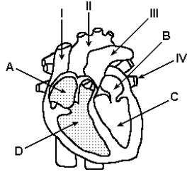 SISTEMA CIRCULATÓRIO BIOLOGIA DALTRO Questão 01) – O sangue __ 1 __ , que passa pelas __ 2 __ , se dirige para os pulmões. Ao retornar ao coração, circula pelas __ 3 __ . Assinale a alternativa que preenche, correta e respectivamente, os espaços 1, 2 e 3. a. arterial ; veias cava ; artérias pulmonares b. venoso ; veias pulmonares ; veias cava c. arterial ; artérias pulmonares ; veias cava d. venoso ; artérias pulmonares ; veias pulmonares e. venoso ; veias pulmonares ; artérias pulmonares Questão 02) ( A figura a seguir esquematiza o coração de um mamífero, com suas câmaras (representadas por letras), veias e artérias (representadas por algarismos). Identifique cada parte do coração e assinale a alternativa que apresenta a correspondência correta. a. O sangue rico em O‚ chega nas câmaras A e B. b. O sangue rico em CO‚ chega na câmara B. c. Os vasos identificados por I, II e III são, respectivamente, veia cava superior, artéria pulmonar e artéria aorta. d. O vaso indicado por IV traz sangue arterial dos pulmões ao coração. e. O vaso indicado por III leva o sangue arterial do coração para o corpo. Questão 03) ( Sobre a circulação sangüínea em humanos, a alternativa correta a. A veia pulmonar traz sangue rico em oxigênio dos pulmões para o coração. b. Nos capilares em geral, o sangue perde CO2 e recebe O2, no fenômeno da hematose. c. A artéria aorta conduz sangue arterial a partir do ventrículo direito. d. A arteira pulmonar faz parte da grande circulação. e. No átrio direito começa a grande circulação. Questão 04) ( Com relação à função de artérias e veias na circulação humana, analise a figura e as proposições a seguir. 1) artérias pulmonares (1) levam aos pulmões o sangue vindo do corpo. 2) veias pulmonares (2) trazem para o coração o sangue oxigenado nos pulmões. 3) artéria aorta (3) leva o sangue oxigenado a todas as partes do corpo. 4) veias cavas (4) trazem o sangue rico em gás carbônico do corpo ao coração. Estão corretas: a. 1, 2, 3 e 4. b. 1, 2 e 3 apenas. c. 1 e 3 apenas. d. 2 e 4 apenas. e. 2, 3 e 4 apenas. Questão 05) ( As afirmações a seguir encontram-se em um folheto para agentes de saúde responsáveis por medir a pressão sangüínea de pacientes que chegam a um centro médico. Você foi chamado a revisá-lo, usando seus conhecimentos sobre o sistema circulatório. I. A pressão máxima medida é obtida quando o ventrículo esquerdo se contrai e a mínima, quando ele relaxa. II. A pressão sangüínea pode ser medida em qualquer parte do corpo, já que ela é igual em todo o sistema circulatório. III. O paciente deve evitar esforços físicos antes do exame, pois isso alteraria os resultados. IV. Os resultados serão alterados caso o paciente tenha ingerido alimentos excessivamente salgados antes do exame. V. A pressão sangüínea é maior no coração e nas veias e menor nas grandes artérias. As informações corretas são: a. I, II e III. b. I, III e IV. c. I, IV e V. d. II, III e V. e. III, IV e V. Questão 06) ( O esquema dado representa a circulação do sangue de um mamífero. Utilizando SA para sangue arterial e SV para sangue venoso, I, II, III e IV, correspondem, respectivamente, a: a. SV, SV, SA e SA. b. SV, SA, SV e SA. c. SA, SA, SV e SV. d. SA, SV, SA e SV. e. SV, SA, SA e SV. Questão 07) ( A dor de cabeça, reação orgânica desencadeada por inúmeros fatores, ocorre quando há: a. dificuldade de respiração, seguida de diminuição da pressão arterial. b. depósito de gordura nas artérias, com conseqüente aumento da pressão arterial. c. produção de substâncias tóxicas agressivas ao sistema nervoso central. d. contração seguida de dilatação dos vasos sangüíneos cerebrais. e. inflamação dos vasos linfáticos, com aumento da produção de plaquetas. Questão 08) – A arterioesclerose caracteriza-se pela perda da elasticidade da parede das artérias, causada inicialmente pela deposição de placas de gordura (ateromas) e posterior precipitação conjunta de cálcio na superfície interna das artérias. Acerca das conseqüências da arterioesclerose foram feitas as afirmações: I. a perda da elasticidade não permite o relaxamento da artéria no momento da sístole ventricular, o que pode gerar aumento da pressão arterial sistólica; II. a obstrução, se ocorrer nas artérias coronárias, pode levar ao infarto agudo do miocárdio; III. ateromas que se desprendem das artérias podem obstruir outras artérias como, por exemplo, as que fornecem sangue ao encéfalo, caracterizando a isquemia cerebral. Está correto o contido em a. I, apenas. b. II, apenas. c. I e II, apenas. d. I e III, apenas. e. I, II, e III. Questão 09) ( O retorno venoso é a volta do sangue ao coração, pelo interior das veias. Na cabeça, esse retorno ocorre a favor da gravidade. É mais lento nos membros inferiores. Assinale a alternativa que indica corretamente fatores que permitem o retorno venoso: a. atuação de válvulas nas veias e contração muscular. b. alongamento muscular e elevação da pressão sangüínea. c. grande espessura das veias e ramificação de veias em capilares. d. formação de vênulas e movimentos musculares. e. maior densidade do sangue e alongamento muscular. Questão 10) ( O controle dos batimentos cardíacos no coração do homem é devido a uma região especial do coração (A), cujas células emitem um sinal elétrico que se propaga diretamente para a musculatura dos átrios, provocando sua contração, e a outra região especializada (B), que distribui o sinal gerado por (A), estimulando a musculatura dos ventrículos a entrar em sístole. (A e B) são, respectivamente: a. nódulo sinoatrial e nódulo atrioventricular. b. válvula atrioventricular e válvula bicúspide. c. marcapasso e válvula tricúspide. d. marcapasso e válvula atrioventricular. e. válvula mitral e válvula atrioventricular. Questão 11) – Responda à questão dando continuidade à