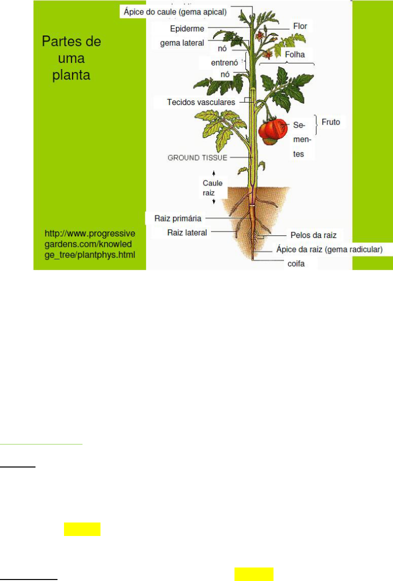 Vegetal II – P1 Aula 1 Anatomia Vegetal: investiga estruturas internas. Parede Celular; Vacúolo; Plastídeos; Parede Celular: arcabouço de celulose. Função: - regular o volume celular; - limitar a expansão do protoplasto; - determinar a forma celular e textura do tecido; Possui muitas enzimas= absorção, transporte e secreção de substâncias. Composição: - principal componente em plantas é a celulose. - moléculas de celulose se organizam e formam fibrilas de celulose que são resistentes com fios de aço. {Celulose-> microfibrilas -> fibrilas} Estrutura e Síntese: - A estrutura tem íntima relação com a função celular. Ex: parede mais espessa = presença de lignina. (tecido de sustentação) *entre essas estruturas há outras substâncias que ligam uma microfibrila à outra. Ex: hemicelulose, pectina. LIGNINA: dá resistência e firmeza; SUBERINA: reduz o calor, proteção térmica; Substâncias que ajudam no espessamento. LAMELA MÉDIA PAREDE CELULAR MEMBRANA PLASMÁTICA PROTOPLASTO (citoplasma, membrana pl. e núcleo) LAMELA MÉDIA: substância cimentadora composta por pectina, que “gruda” uma célula na outra. PROTOPLASTO: conteúdo vivo da célula; Comunicação entre Células: - surge a partir de descontinuidades/projeções resultadas do espessamento na parede, que ligam um protoplasto a outro. Campo de Pontoação Primário (plasmodesmos): apenas celulose. Campo de Pontoação Secundário: celulose com lignina ou suberina. Vacúolo: - centralizado e grande (ocupa quase toda a célula); - envolto por tonoplasto (membrana); - funciona como reservatório e depósito de excessos.; - pode formar cristais ou sulco celular (subs aquosa), dependendo da substância; Cristais de Oxalato de Cálcio: - podem assumir diversas formas: drusas, prismas, bastonetes, ráfides e areia cristalina * a forma do cristal é determinada geneticamente, logo pode determinar o tipo da planta. * comigo-ninguém-pode: causa edema de glote. Seu óleo venenoso intoxica e suas ráfides arranham a mucosa. Plastídeos: - organela semi-autônoma: contém DNA e ribossomos próprios; - são classificados com base nos pigmentos que possuem; CLOROPLASTOS: contém clorofila (plantas verdes); CROMOPLASTOS: contém carotenoides (cenoura); LEUCOPLASTOS: não contém pigmentos (é de reserva); PROPLASTÍDEO: localizado no ápice, onde há células embrionárias (meristema)-> não tem pig. *Se a planta crescer em um lugar sem sol, este não se desenvolve adequadamente, e a planta desenvolve ETIOPLASTO -> planta cresce amarelada (membranas não se organizam adequadamente). -Caminhos possíveis: 1- PROPLASTÍDEO -> ETIOPLASTO; 2- PROPLASTÍDEO -> CLOROPLASTO; 3- PROPLASTÍDEO -> CROMOPLASTO; 4- PROPLASTÍDEO -> LEUCOPLASTO -> Proteínoplasto (ptn); -> Elaioplasto (óleo); -> Amiloplasto (amido); -> Estatólito (MT AMIDO, fica pesado e direciona a raiz no sentido geotrópico)Localiza-se na COIFA. COIFA: camada de células que protege a pontinha (apse) da raiz. Cresce em sentido geotrópico positivo devido aos estatólitos. CICLOSE: movimento realizado pelo cloroplasto para a captação de luz. MERISTEMAS: - centro permanente de produção de novas células vegetais; - regiões apicais: na GEMA folhas novas a protegem, na RAIZ a coifa protege; - intensa atividade metabólica (cresce, se divide e mantém as característ); MERISTEMAS PRIMÁRIOS: - presente em TODAS as plantas; - formados por células embrionárias em constante atividade mitótica; - localizam- se nos ápices caulinares e radiculares, com a seguinte zonação: -> PROTODERME: se dif em células de revestimento; -> PROCÂMBIO: se dif em células do sistema vascular; -> MERISTEMA FUNDAMENTAL: se dif em cél do sist. fundamental; MERISTEMAS SECUNDÁRIOS: - há em plantas que passam por ESPESSAMENTO; - localizam- se nas laterais do corpo do vegetal; - células originadas de células que já haviam se diferenciado, parcialmente ou totalmente, e reassumiram a ativ mitótica; -> CÂMBIO: se dif em células do sist. vascular secundário; -> FELOGÊNIO: se dif em células da epiderme; Aula 2 Sistema de Tecidos Vegetais: Sistema Fundamental ou de Preenchimento; Sistema de Revestimento ou Dérmico; Sistema Vascular ou Condutor; Sistema Fundamental: PARÊNQUIMA: - tecido onde ocorre a fotossíntese; - secreção e excreção; - armazenamento de substâncias; Parênquima Fundamental (tipo mais básico); - função: preenchimento; -localização: córtex e medula de caules, córtex de raízes, nervuras de folhas diferentes partes de flores e frutos. *TOTIPOTÊNCIA: quando o parênquima fundamental pode voltar à sua forma embrionária por um estímulo (ex: lesão). Por conta disso a célula volta a se dividir , mesmo quando já tem vacúolo etc. Pode gerar qualquer tecido. -> cicatrização de lisão (poda de árvore); -> formação de caules e raízes; -> união de enxertos (junção de uma planta com outra); Método: Garfagem. -> Não há mistura de material genético; -> Altura do corte, época do ano e outros fatores influenciam; - na natureza pode acontecer naturalmente, quando duas plantas germinam muito próximas e os caules se fusionam. Parênquima Clorofiliano – Clorênquima: (fotossíntese, há clorofila e cloroplasto); - presente em folhas e caules; - formatos variados; - sempre exposto à luz; 2.1 – PARÊNQUIMA PALIÇÁDICO: - faixas fotossintéticas elevadas; - células compridas e justapostas, alongadas; - quase não há espaço entre células; 2.2 – PARÊNQUIMA LACUNOSO: - favorece trocas gasosas; - há espaço entre células; - mais isodiamétricas; - água na forma gasosa; 2.3 – PARÊNQUIMA REGULAR: - células arredondadas com espaços entre elas. 2.4 – PARÊNQUIMA PLICADO: - aumenta a superfície de contato; - ocorre em folhas pequenas; - células cheias de pregas; Parênquima de Reserva (rico em nutrientes); - armazenamento; - células de formatos variados; - tanto em órgãos aéreos como subterrâneos; 3.1- PARÊNQUIMA DE ARMAZ