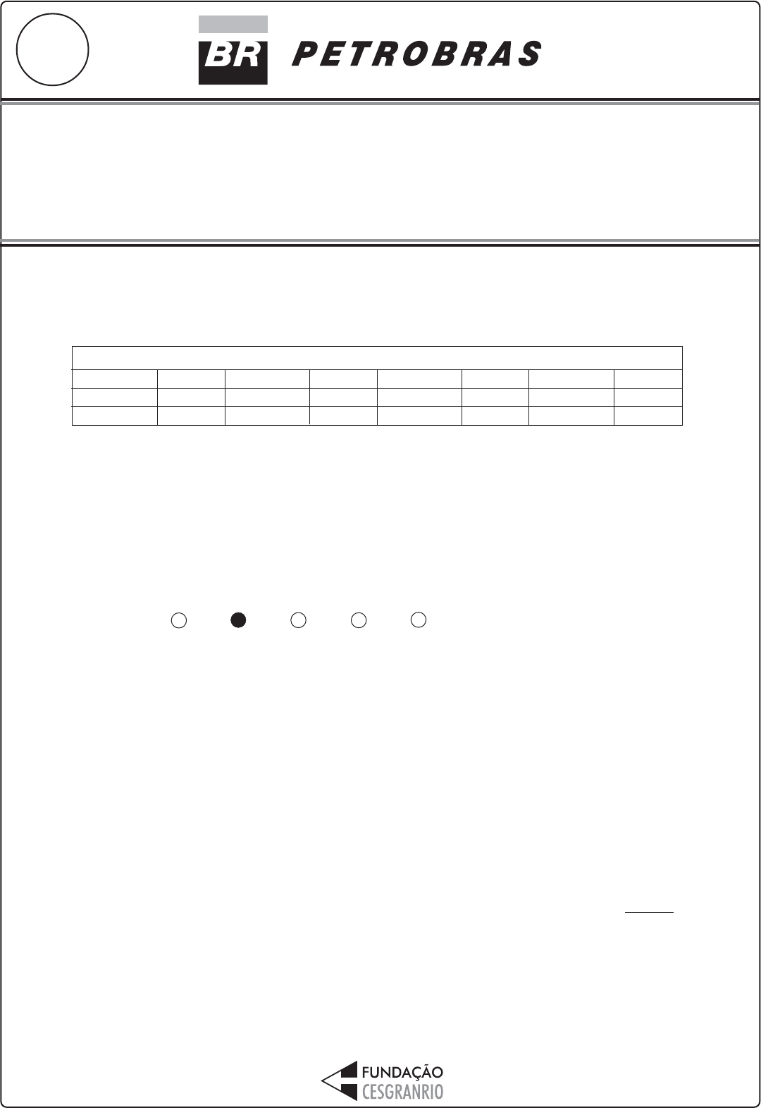 ENGENHEIRENGENHEIRENGENHEIRENGENHEIRENGENHEIRO(A) DEO(A) DEO(A) DEO(A) DEO(A) DE PETRÓLEO PETRÓLEO PETRÓLEO PETRÓLEO PETRÓLEO JÚNIORJÚNIORJÚNIORJÚNIORJÚNIOR CONHECIMENTCONHECIMENTCONHECIMENTCONHECIMENTCONHECIMENTOS ESPECÍFICOSOS ESPECÍFICOSOS ESPECÍFICOSOS ESPECÍFICOSOS ESPECÍFICOS MA IO / 2 01 0 TARDE12 LEIA ATENTAMENTE AS INSTRUÇÕES ABAIXO. 01 - Você recebeu do fiscal o seguinte material: a) este caderno, com os enunciados das 70 questões objetivas, sem repetição ou falha, com a seguinte distribuição: b) 1 CARTÃO-RESPOSTA destinado às respostas às questões objetivas formuladas nas provas. 02 - Verifique se este material está em ordem e se o seu nome e número de inscrição conferem com os que aparecem no CARTÃO- RESPOSTA. Caso contrário, notifique IMEDIATAMENTE o fiscal. 03 - Após a conferência, o candidato deverá assinar no espaço próprio do CARTÃO-RESPOSTA, a caneta esferográ- fica transparente de tinta na cor preta. 04 - No CARTÃO-RESPOSTA, a marcação das letras correspondentes às respostas certas deve ser feita cobrindo a letra e preenchendo todo o espaço compreendido pelos círculos, a caneta esferográfica transparente de tinta na cor preta, de forma contínua e densa. A LEITORA ÓTICA é sensível a marcas escuras; portanto, preencha os campos de marcação completamente, sem deixar claros. Exemplo: A C D E 05 - Tenha muito cuidado com o CARTÃO-RESPOSTA, para não o DOBRAR, AMASSAR ou MANCHAR. O CARTÃO-RESPOSTA SOMENTE poderá ser substituído caso esteja danificado em suas margens superior ou inferior - BARRA DE RECONHECIMENTO PARA LEITURA ÓTICA. 06 - Para cada uma das questões objetivas, são apresentadas 5 alternativas classificadas com as letras (A), (B), (C), (D) e (E); só uma responde adequadamente ao quesito proposto. Você só deve assinalar UMA RESPOSTA: a marcação em mais de uma alternativa anula a questão, MESMO QUE UMA DAS RESPOSTAS ESTEJA CORRETA. 07 - As questões objetivas são identificadas pelo número que se situa acima de seu enunciado. 08 - SERÁ ELIMINADO do Processo Seletivo Público o candidato que: a) se utilizar, durante a realização das provas, de máquinas e/ou relógios de calcular, bem como de rádios gravadores, headphones, telefones celulares ou fontes de consulta de qualquer espécie; b) se ausentar da sala em que se realizam as provas levando consigo o Caderno de Questões e/ou o CARTÃO-RESPOSTA; c) se recusar a entregar o Caderno de Questões e/ou o CARTÃO-RESPOSTA quando terminar o tempo estabelecido. 09 - Reserve os 30 (trinta) minutos finais para marcar seu CARTÃO-RESPOSTA. Os rascunhos e as marcações assinaladas no Caderno de Questões NÃO SERÃO LEVADOS EM CONTA. 10 - Quando terminar, entregue ao fiscal O CADERNO DE QUESTÕES E O CARTÃO-RESPOSTA e ASSINE A LISTA DE PRESENÇA. Obs. O candidato só poderá se ausentar do recinto das provas após 1 (uma) hora contada a partir do efetivo início das mesmas. Por motivos de segurança, o candidato NÃO PODERÁ LEVAR O CADERNO DE QUESTÕES, a qualquer momento. 11 - O TEMPO DISPONÍVEL PARA ESTAS PROVAS DE QUESTÕES OBJETIVAS É DE 4 (QUATRO) HORAS, findo o qual o candidato deverá, obrigatoriamente, entregar o CARTÃO-RESPOSTA. 12 - As questões e os gabaritos das Provas Objetivas serão divulgados no primeiro dia útil após a realização das mesmas, no endereço eletrônico da FUNDAÇÃO CESGRANRIO (http://www.cesgranrio.org.br). CONHECIMENTOS ESPECÍFICOS Questões 1 a 10 11 a 20 Pontos 0,5 1,0 Questões 21 a 30 31 a 40 Pontos 1,5 2,0 Questões 41 a 50 51 a 60 Pontos 2,5 3,0 Questões 61 a 70 - Pontos 3,5 - ENGENHEIRO(A) DE PETRÓLEO JÚNIOR 2 RA SC UN HO ENGENHEIRO(A) DE PETRÓLEO JÚNIOR 3 CONHECIMENTOS ESPECÍFICOS 1 Funções trigonométricas são comumente utilizadas em modelos que envolvam fenômenos periódicos, como os que incluem variações sazonais. Dentre as funções abai- xo, aquela que representa a produção total de um certo produto, em toneladas, de periodicidade anual, em função do tempo t, expresso em meses, é (A) f(t) = 900 sen(6t+2) (B) f(t) = 900 sen(t + ) 6 � (C) tf(t) = 900 sen( + ) 6 2 � � (D) f(t) = 900 sen( + ) 6 � 24 �t (E) t 1f(t) = 900 sen ( + ) 6 2 2 Considere os vetores 1 2 u = ( , )1 2 e 3 5 v = ( , )� 4 5 . So- bre esses vetores tem-se que (A) são ortogonais. (B) são ambos unitários. (C) têm mesma direção. (D) formam ângulo obtuso. (E) apenas o vetor u é unitário. 3 Seja S o subespaço vetorial de R3 formado por todos os ternos (x, y, z) que são soluções do sistema linear 2x y 3z 0 x y 2z 0 � � � � � � � � � Considere as seguintes afirmativas relativas a S: I - S é o espaço gerado pelos vetores (2, 1, 3) e (1, –1, 2); II - todos os vetores em S são ortogonais ao vetor (2, 1, 3); III - S tem dimensão 0. Está correto APENAS o que se afirma em (A) I. (B) II. (C) III. (D) I e II. (E) II e III. 4 A imagem do quadrado Q, representado acima na figura à esquerda, por uma transformação linear T: R2 R2 é o losango L representado na figura à direita. Dentre as matri- zes abaixo, aquela que pode representar T com respeito à base canônica de R2 é (A) 1 1 1/ 2 1/ 2 � � � � (B) 1 1 1/ 2 1/ 2 � � � � � (C) 1 1 1 1 � � � � (D) 1 1 0 1 � � � (E) 1/ 2 1/ 2 1 1 � � � 5 Um vazamento de óleo se espalha sobre a superfície de um lago formando uma mancha circular. Em determinado instante, a mancha tem um raio de 100 metros, que cresce a uma taxa de variação instantânea de 10 metros por hora. Usando � = 3, estima-se que, nesse instante, a área da superfície do lago coberta pela mancha de óleo está crescendo, em m2/h, a uma taxa instantânea igual a (A) 10 (B) 100 (C) 600 (D) 3.000 (E) 6.000 1 1 -1 1 1 Q L ENGENHEIRO(A) DE PETRÓLEO JÚNIOR 4 Utilize as informações a seguir para responder às questões nos 6 e 7. Considere a amostra de uma variável aleatória, cujos va- lores estão todos expressos em uma mesma unida