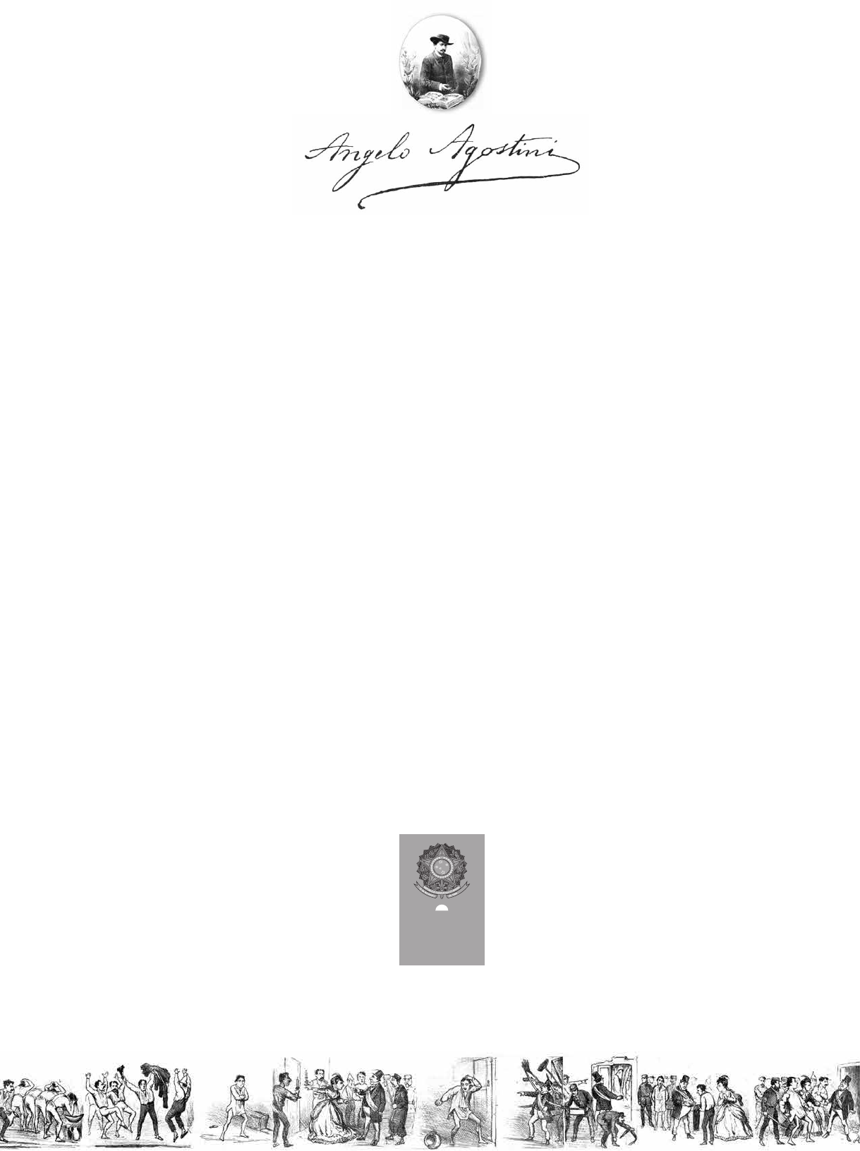 &ZÉ CAIPORANHÔ-QUIM Os Primeiros Quadrinhos Brasileiros 1869 – 1883 Pesquisa, organização e introdução Athos Eichler Cardoso Edições do Senado Federal Volume 44 Ângelo Agostini (1843-1910), jornalista e caricaturista ítalo- brasileiro, passou a história como um campeão dos direitos humanos e da cidadania. Foi um dos maiores defensores da Abolição e as caricaturas com que atacou os escravagistas são antológicas. O lado lúdico desse desenhista e narrador genial deixou para o mundo duas narrativas de quadrinhos, As Aventuras de Nho-Quim e As Aventuras de Zé Caipora que não é uma história comum. Com ela, entre 1883 e 1906, Agostini revolucionou de maneira extraordinária a apresentação gráfica e a temática do gênero criando herói e heroína com traços acadêmicos mergulhados em narrativa dramática de aventura. Zé Caipora antecipou-se quase meio século ao Tarzan de Hal Foster e Inaiá, a índia brasileira de seios nus, surgiu mais de setenta anos antes da erótica Barbarella de Jean Claude Forest. O enquadramento e o roteiro da narrativa em Zé Caipora utilizaram técnicas cinematográficas bem antes da 7ª arte ser projetada em Paris. Além do uso de bucólicos panoramas, planos gerais e médios, ele utilizou um antológico plano de detalhe. Há na história pelo menos uma dúzia de excelentes mudanças de angulação de ponto de vista e na narrativa são identificadas ações paralelas e retornos. Outra especialidade do autor é a criação sistemática de suspense ao final de cada capítulo. Credite-se, ainda a Agostini, a publicação do primeiro álbum de histórias em quadrinhos no final dos anos 80 do século XIX. Zé Caipora e Nhô-Quim, sem influência estrangeira são heróis brasileiros em estado puro. Nesta época de globalização, quando nossos artistas desenham para os sindicatos americnaos de quadrinhos, todos precisam conhecê-los. AS AV EN T U R AS D E N H Ô -Q U IM & Z É C AIPO R A O s Primeiros Q uadrnhos Brasileiros 1869 – 1883 Â ngelo A gostini As Aventuras de .............. SENADO FEDERAL.............. As AventurAs de nhô-Quim & Zé CAiporA Os Primeiros Quadrinhos Brasileiros 1869 – 1883 Pesquisa, organização e introdução Athos Eichler Cardoso edições do senAdo FederAl Volume 44 &ZÉ CAIPORANHÔ-QUIM As AventurAs de Os Primeiros Quadrinhos Brasileiros 1869 – 1883 Pesquisa, organização e introdução Athos Eichler Cardoso edições do senAdo FederAl Volume 44 .............. SENADO FEDERAL.............. EDIÇÕES DO SENADO FEDERAL Vol. 44 O Conselho Editorial do Senado Federal, criado pela Mesa Diretora em 31 de janeiro de 1997, buscará editar, sempre, obras de valor histórico e cultural e de importância relevante para a compreensão da história política, econômica e social do Brasil e reflexão sobre os destinos do país. Mesa Diretora do Senado Federal Biênio 2013/2014 Senador Renan Calheiros Presidente Senador Jorge Viana Senador Romero Jucá 1o Vice-Presidente 2o Vice-Presidente Senador Flexa Ribeiro Senador Ângela Portela 1o Secretário 2o Secretário Senador Ciro Nogueira Senador João Vicente Claudino 3o Secretário 4o Secretário Suplentes de Secretário Senador Magno Malta Senador João Durval Senadora Jayme Campos Senador Casildo Maldaner Conselho Editorial Senador José Sarney Joaquim Campelo Marques Presidente Vice-Presidente Carlos Henrique Cardim Carlyle Coutinho Madruga Conselheiro Conselheiro Raimundo Pontes Cunha Neto Conselheiro As AventurAs de nhô-Quim & Zé CAiporA – Angelo Agostini Projeto Gráfico e Capa: Josias Wanzeller da Silva Senado Federal, 2013 Congresso Nacional Praça dos Três Poderes s/no – CEP 70168-970 – Brasília – DF CEDIT@cegraf.senado.gov.br http://www.senado.gov.br/web/publicacoes/conselho ISBN: 978-85-7018-492-4 ConsiderAções sobre A edição pAlAvrAs do editor AgrAdeCimentos prefáCio um retrAto dA gente brAsileirA nhô-Quim e Zé CAiporA por Athos Eichler Cardoso Angelo Agostini As AventurAs de nhô-Quim As AventurAs de Zé CAiporA As temátiCAs de Zé CAiporA A CriAção do mito A importânCiA de Zé CAiporA ConClusão As AventurAs de “nhô-Quim”, ou impressões de umA viAgem à Corte As AventurAs do Zé CAiporA glossário fontes e bibliogrAfiA C Agostini, Angelo. As Aventuras de Nhô-Quim & Zé Caipora: os primeiros quadrinhos brasileiros 1869-1883/Angelo Agostini; pesquisa, organização e introdução Athos Eichler Cardoso. – Brasília: Senado Federal, Conselho Editorial, 2013. 202 p. il. 1. História em quadrinhos, Brasil. I. Cardoso, Athos Eichler. II. Título. III. Série. CDD 809.0222 7 11 13 15 17 19 21 22 24 26 27 30 32 33 63 193 197 Sumário ConsiderAções sobre A edição pAlAvrAs do editor AgrAdeCimentos prefáCio um retrAto dA gente brAsileirA nhô-Quim e Zé CAiporA por Athos Eichler Cardoso Angelo Agostini As AventurAs de nhô-Quim As AventurAs de Zé CAiporA As temátiCAs de Zé CAiporA A CriAção do mito A importânCiA de Zé CAiporA ConClusão As AventurAs de “nhô-Quim”, ou impressões de umA viAgem à Corte As AventurAs do Zé CAiporA glossário fontes e bibliogrAfiA Dedico este álbum à memória de Vicente Machado, um alagoano que viveu comprometido com a preservação da memória nacional. Athos Eichler Cardoso 7Angelo Agostini ConsiderAções sobre A edição As imagens deste álbum foram digitalizadas diretamente dos originais das coleções de revistas encadernadas Vida Fluminense, O Malho e Don Quixote. As duas primeiras encontram-se na biblioteca da Funda- ção da Casa Rui Barbosa, no Rio de Janeiro, e a última foi gentilmente emprestada pela Sra. Magdala Machado, residente na Capital Federal. Os capítulos de Nhô-Quim, desenhados num grande painel, ocupavam as duas páginas centrais da Vida Fluminense e, conseqüente- mente, as cópias das imagens nas dobraduras ficaram severamente prejudi- cadas. A coleção, pelo tempo e manuseio, apresentava folhas danificadas, exigindo um longo e cuidadoso trabalho de restauraç