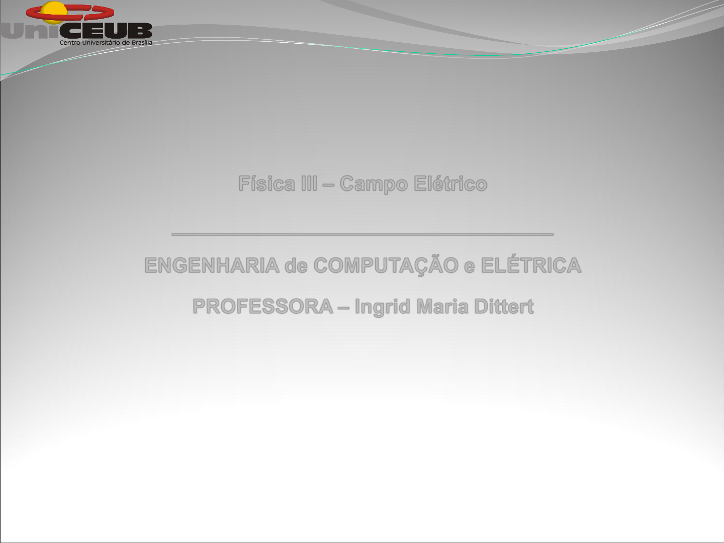 Física III – Campo Elétrico __________________________________ ENGENHARIA de COMPUTAÇÃO e ELÉTRICA PROFESSORA – Ingrid Maria Dittert Conteúdo 1. Campo Elétrico ➢ Carga Elétrica ➢ Quantização e Conservação de Carga ➢ Condutores e Isolantes ➢ Lei Coulomb ➢ Campo Elétrico ➢ Linhas de Campo Elétrico ➢ Movimento de Cargas Puntiformes em Campos Elétricos 2 Carga Elétrica ➢ No ano de 600 a.C, os gregos descobriram, que ao provocar o atrito de uma barra de âmbar em lã, a barra adquiria a capacidade de atrair objetos leves. ➢ Podemos afirmar que o âmbar adquiria cargas elétricas, ou seja, estava carregado. ➢ O termo elétrico (a) deriva da palavra grega elektron, que significa âmbar. ➢ Ao arrastar seus sapatos em um carpete de náilon, você fica com cargas elétricas e é capaz de carregar eletricamente um pente, atraindo-o com o cabelo seco. ➢ Esse fenômeno é tratado pela eletrostática, que descreve o estudo das interações entre cargas elétricas em repouso. 3 Carga Elétrica 4 ➢ Inúmeras experiências simples demonstram a existência de forças eletrostáticas. Carga Elétrica 5 Carga Elétrica 6 ➢ A matéria é constituída por átomos que são estruturados basicamente a partir de três partículas subatômicas que são, nesse momento, de nosso interesse. ➢ Prótons, nêutrons e elétrons. ➢ Em um átomo, há uma parte muito densa no centro, chamada de núcleo, onde estão os prótons e os nêutrons. Carga Elétrica 7 Carga elétrica 8 Carga elétrica 9 Lei de Du Fay (Charles François de Cisternay Du Fay) ‘corpos com cargas de mesmo sinal repelem-se e corpos de cargas de sinais contrários atraem-se’’ Carga Elétrica 10 ➢ próton repele próton; ➢ elétron repele elétron; ➢ para os nêutrons, não se constatou nenhuma manifestação de interação, qualquer que seja a partícula que dele se aproxima; ➢ mas entre prótons e elétrons verificou-se que ocorria atração. Por convenção, o próton ficou com carga elétrica positiva (+) e o elétron com carga elétrica negativa (-). Carga Elétrica ➢ Quando os materiais se comportam dessa maneira, diz-se que estão carregados eletricamente. ➢ Quando dois corpos inicialmente neutros são carregados ao serem esfregados entre si, não é criada carga no processo. ➢ Os corpos tornam-se carregados porque os elétrons são transferidos de um corpo para o outro. 11 Um corpo ganha uma quantidade de carga negativa dos elétrons transferidos para ele enquanto o outro perde uma quantidade igual de carga negativa e consequentemente, fica com carga positiva. Quantização de cargas e conservação de cargas 12 ➢ No século XVIII, a carga elétrica era considerada como um fluido contínuo. ➢ Entretanto, no início do século XX, Robert Millikan (1868-1953) descobriu que o fluido elétrico não era contínuo e, sim, que a carga elétrica era constituída por um múltiplo inteiro de uma carga fundamental e, ou seja, a carga q de um certo objeto pode ser escrita como: ❖ Onde: n é o número de portadores de carga, ou seja, o número de elétrons em excesso (corpo eletrizado negativamente) ou em falta (corpo eletrizado positivamente). ❖ e = carga elementar = 1,6.10-19 C → menor quantidade de carga livre encontrada na natureza. ➢ Carga do próton = +1,6.10-19 C ➢ Carga do elétron = -1,6.10-19 C neQ Quantização de cargas e conservação de cargas 13 ➢ Princípio da conservação de cargas, primeiro princípio: ➢ A soma algébrica de todas as cargas elétricas existentes em um sistema isolado permanece sempre constante. ➢ Princípio da conservação de cargas, segundo princípio: ➢ O módulo da carga elétrica do elétron ou do próton é uma unidade de carga natural. Acredita-se que a lei da conservação da carga elétrica seja uma lei de conservação universal. Não existindo nenhuma experiência que viole esse princípio. Qualquer quantidade de carga elétrica observada é sempre um múltiplo inteiro dessa unidade básica. Dizemos que a carga elétrica é quantizada. Condutores e isolantes 14 ➢ Quanto a capacidade de conduzirem cargas elétricas, as substâncias podem ser caracterizadas como isolantes e condutores. ➢ Isolantes são substâncias nas quais as cargas elétricas não podem se mover livremente com facilidade. ➢ Exemplos: a borracha, o vidro, o plástico, a água pura. ➢ Condutores são materiais nos quais a movimentação das cargas (negativas, em geral) pode ocorrer livremente. ➢ Exemplos: metais, água e o corpo humano. Alguns materiais possibilitam a migração da carga elétrica de uma região para outra, enquanto outros impedem o movimento das cargas elétricas. Condutores e isolantes 15 ➢ Somos mais coerentes se classificarmos as substâncias por bons e maus condutores. ➢ Na realidade, todas as substâncias da natureza têm a propriedade de anular a eletrificação. Podemos verificar que os metais são os melhores condutores e substâncias tais como; óleos, graxas, vidro, borracha são péssimas condutoras elétricas. Condutores e isolantes 16 ➢ O corpo humano é conhecido ser do tipo condutor. Isto significa que se tocamos, em uma bola eletrificada com a mão, por apenas um bilionésimo de segundo, verificamos que esta ainda retém uma certa quantidade de carga. ➢ Ao arrastar seu sapados em um carpete de náilon, você fica com cargas elétricas e fica com eletricidade estática. Condutores e isolantes 17 ➢ Em particular água destilada é um isolante mas torna-se condutora se introduzirmos impurezas. ➢ Devemos ressaltar que mesmo os isolantes podem conduzir eletricidade, só que muito lentamente. ➢ Existem outros materiais, como o silício, o germânio e o carbono que estão em uma terceira categoria denominada por semicondutores. Condutores e isolantes 18 Condutores e isolantes: Eletricidade estática 19 Três maneiras de se fazer um objeto adquirir carga elétrica líquida: ➢ Atrito: ➢ fricção entre do
