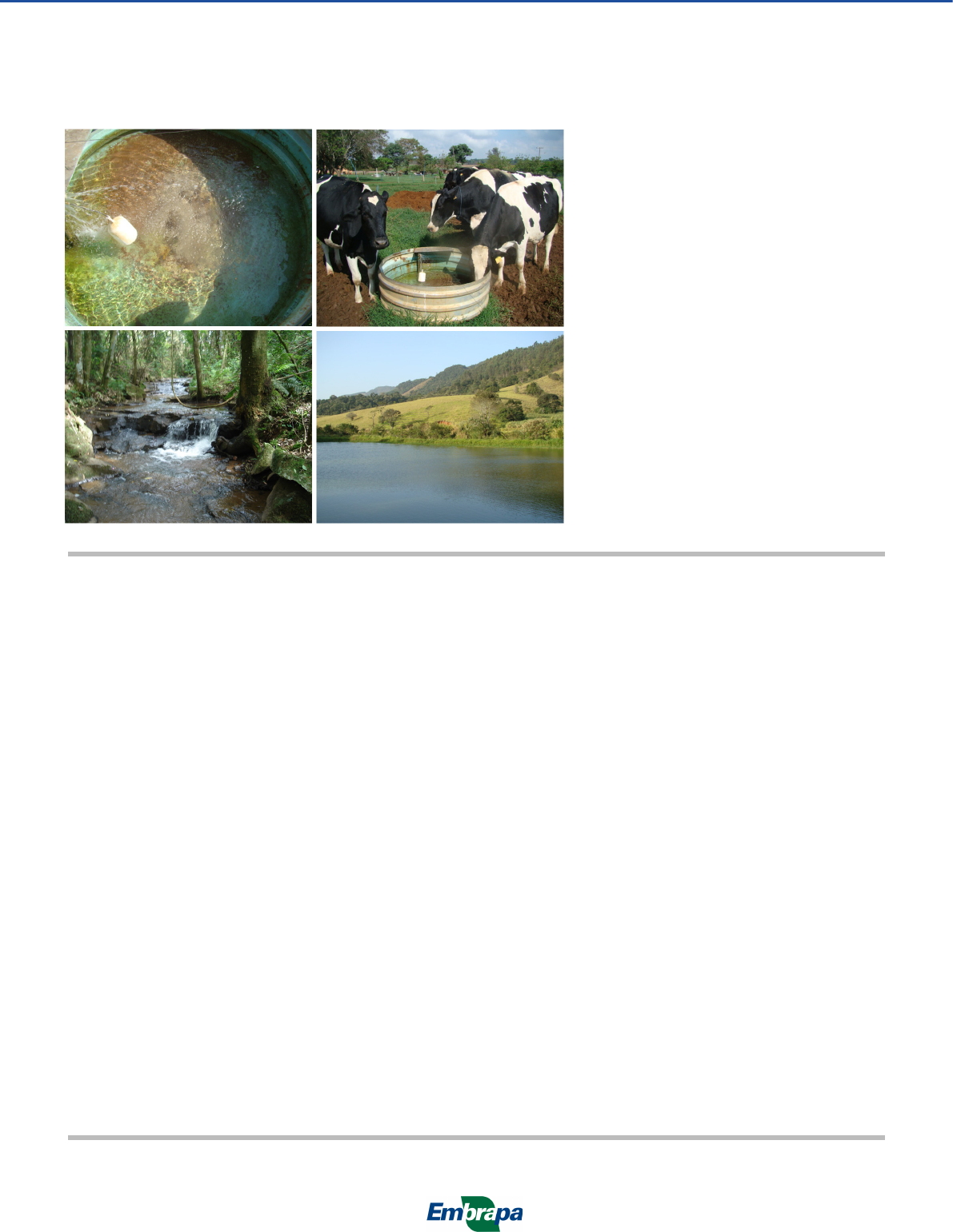 Consumo de água na produção animal Julio Cesar P. Palhares1 102 ISSN 1981-206X São Carlos, SP Novembro, 2013Técnico Comunicado 1 Pesquisador da Embrapa Pecuária Sudeste, São Carlos, SP, julio.palhares@embrapa.br Fo to s: J ul io C es ar P . P al ha re sJ úl io P al ha re s A falta de água para dessedentação dos animais tem como consequências a redução do crescimento, do bem-estar e da saúde e o aumento do estresse, ou seja, resulta em consideráveis impactos negativos nos fatores zootécnicos e econômicos. Sendo esses impactos de conhecimento de produtores, profissionais, extensionistas, enfim dos atores relacionados às atividades pecuárias, pergunta-se: por que a medição do consumo de água pelos animais não é uma prática comum? O consumo de água é um dos indicadores disponíveis para avaliar o desempenho zootécnico e sanitário de um rebanho. Ele compreende todas as características que determinam um bom indicador: é de fácil mensuração, tem custo reduzido para medição e é de amplo entendimento pelos atores. Monitorá-lo significa dispor de informações valiosas que auxiliarão na tomada de decisão sobre os aspectos produtivos, econômicos, sociais e ambientais. Essa informação também auxiliará na adequação legal da propriedade, pois é essencial para a solicitação de outorga de uso da água pelo usuário rural. A outorga é um instrumento de gestão dos recursos hídricos utilizado pelos órgãos federais e estaduais a fim de propiciar o uso múltiplo da água. É um ato administrativo, de autorização ou concessão, mediante o qual o Poder Público faculta ao outorgado (usuário) fazer uso da água por determinado tempo, finalidade e condição expressa no respectivo ato. Conhecer o consumo de água dos animais e oferecer a eles água com qualidade; saber escolher e monitorar as fontes de água mais aptas ao uso pecuário; identificar e solucionar as perdas de água em um sistema de produção; considerar no custo de produção o custo da água; capacitar a mão de obra em práticas relacionadas ao manejo hídrico da atividade, todos são aspectos que devem estar presentes no sistema de produção. 2 Consumo de água na produção animal O manejo hídrico deve ser entendido como: o uso cotidiano de conhecimentos e práticas que garantam a oferta de água em quantidade e qualidade aos rebanhos. Ele irá propiciar uma atividade ambientalmente mais equilibrada, economicamente mais rentável e socialmente mais valorizada, pois a produção não será entendida como exploradora de água, mas sim como transformadora eficiente e eficaz dessa água em alimento. Quantidade de água para os animais As funções da água no organismo dos animais são: regular a temperatura do corpo e auxiliar na digestão dos alimentos e nos processos de metabolismo da excreção, da reprodução e do crescimento. O conteúdo de água no organismo dos animais varia entre as espécies e entre os indivíduos. A água faz parte de 50% a 80% do organismo dos animais. Um animal jovem pode ter até 80% de sua constituição orgânica na forma de água. Conforme esse animal envelhece, essa quantidade irá diminuir, alcançando um mínimo de 50%. Quanto maior a proporção de gordura na constituição do organismo, menor a quantidade de água. O animal pode perder 50% da proteína de seu corpo e sobreviver, mas a perda de 10% da água corporal pode levar o animal à morte. A principal forma de um animal ter acesso à água é pela dessedentação; as outras duas são os alimentos e o metabolismo. A água no organismo está compartimentalizada no ambiente intracelular e, aproximadamente, dois terços do conteúdo da água no organismo é extracelular. A água extracelular é a principal via de transporte, carreando nutrientes para as células e retirando os resíduos do interior dessas. Na Figura 1 observam-se os fatores que determinam o consumo da água de dessedentação. O consumo de dessedentação é multifatorial. Considerando o reduzido conhecimento de produtores e técnicos do impacto dos fatores no consumo de água e do uso desse consumo como um indicador poderoso para mensurar o desempenho dos animais e seu estado sanitário, sugere-se que os seguintes fatores sejam monitorados no dia a dia das criações: peso e idade do animal, ingestão de matéria seca e de sal, porcentagem de proteína na dieta e temperatura ambiente. O monitoramento dos fatores sugeridos é simples e de baixo custo, pois fazem parte da cultura produtiva e do manejo cotidiano. Cabe ao tomador de decisão relacioná-los ao consumo de água e, para tal finalidade, terá que medir esse consumo e compará-lo com as médias de consumo para a espécie e para o uso (Tabela 1). Dessa forma, garantirá a eficiência e eficácia zootécnica da criação e a segurança hídrica da propriedade. A desidratação ou a falta de água será expressa pelos seguintes sintomas: pele retraída, membranas e olhos secos, perda de peso, redução do consumo de alimento, redução de água nas fezes e redução do volume de urina. Esses sintomas só podem ser detectados se os profissionais responsáveis pela criação forem treinados para tal fim e internalizarem o manejo hídrico em suas atividades cotidianas. A Tabela 1 é uma compilação de dezenas de recomendações técnicas, estudos científicos e legislações ambientais. Portanto, nos valores apresentados estão embutidas diferenças genéticas, de manejos nutricionais e sanitários, de condições ambientais específicas de cada local, de sistemas de produção e de nível tecnológico, bem como diferentes qualidades de mão de obra. Esses padrões só devem ser utilizados se o usuário não ANIMAL ZOOTÉCNICOS AMBIENTAIS FATORES QUE INFLUENCIAM O CONSUMO DE ÁGUA Tipo de dieta Ingestão de matéria seca Ingestão de sal Taxa de ganho de peso Produção de leite Umidade Temperatura Velocidade do vento Tipo e tamanho Peso Idade Genética Figura 1. Fatores que 