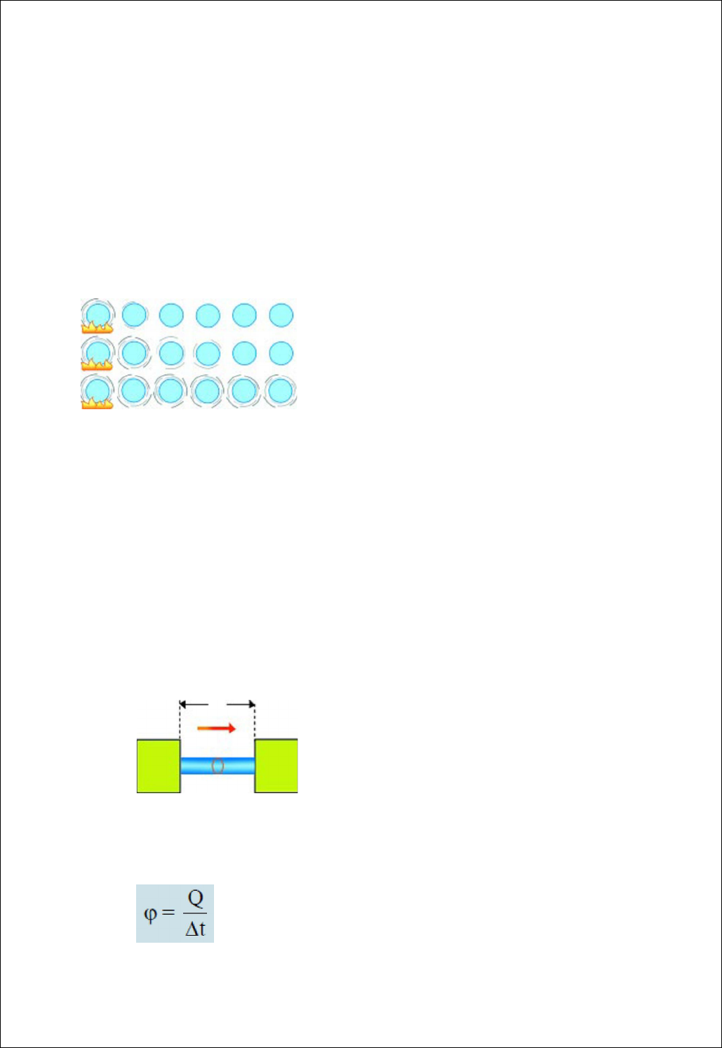 1 CONDUÇÃO TÉRMICA A condução é o processo pelo qual o calor se transmite ao longo de um meio material, como efeito da transmissão de vibração entre as moléculas. As moléculas mais energéticas (maior temperatura) transmitem energia para as menos energéticas (menor temperatura). Na condução, a transmissão do calor de uma região para a outra ocorre da seguinte maneira: na região mais quente, as partículas têm mais energia térmica, vibrando com mais intensidade; com essa vibração, cada partícula transmite energia para a partícula vizinha, que, ao receber energia, passa a vibrar com maior intensidade; esta transmite energia para a seguinte e, assim, sucessivamente. Como a transmissão do calor ocorre, por condução, mediante a transferência de energia de partícula para partícula, concluímos que: A condução de calor é um processo que necessita da presença do meio material e, portanto, não ocorre no vácuo. Há materiais que conduzem o calor rapidamente, como por exemplo, os metais. Tais materiais são chamados de bons condutores. Por outro lado, há materiais nos quais o calor se propaga muito lentamente. Tais materiais são chamados isolantes. Como exemplo, podemos citar a borracha, a lã, o isopor e o amianto. FLUXO CALOR Consideremos uma barra condutora de comprimento L e cuja seção transversal tem área A, cujas extremidades são mantidas em temperaturas diferentes, como ilustra a figura. Nesse caso, o calor fluirá através da barra, indo da extremidade que tem a maior temperatura para a extremidade que tem menor temperatura. A quantidade de calor (Q) que atravessa uma seção reta da barra, num intervalo do tempo ( t) é chamada fluxo de calor. Representamos o fluxo por: Generated by Foxit PDF Creator © Foxit Software http://www.foxitsoftware.com For evaluation only. 2 A unidade do fluxo no SI, é J/s, isto é, watt (W), embora seja mais comum o uso de unidades práticas, como: cal/s, cal/min além de outras. Lei da condução térmica ou Lei de Fourier A lei de Fourier estabelece a relação entre o fluxo de calor e os fatores que o determinam. Tal relação é dada por: Podemos enunciar a Lei de Fourier: O fluxo de calor por condução térmica em um material homogêneo, após ter atingido um regime estacionário de escoamento, é diretamente proporcional à área da secção transversal, à diferença de temperatura entre os extremos e inversamente proporcional à espessura da camada em questão. Coeficiente de condutibilidade térmica A constante K, descrita na equação de Fourier, é chamada de coeficiente de condutibilidade térmica e caracteriza o material que constitui a placa ou o elemento por onde o calor é transmitido por condução térmica. Seu valor caracteriza o material como bom ou mau condutor de calor. Quanto maior for o valor do coeficiente de condutibilidade térmica (K) do material, melhor será a condução térmica, ou seja, o material é um bom condutor térmico. Já, no caso dos materiais isolantes térmicos, o coeficiente de condutibilidade térmica (K) apresenta um valor comparativamente menor. A unidade usual do coeficiente de condutibilidade térmica é: cal/ s.cm.ºC. A tabela a seguir ilustra alguns valores do coeficiente de condutibilidade térmica para alguns materiais, expressos em cal/s.cm.ºC. Generated by Foxit PDF Creator © Foxit Software http://www.foxitsoftware.com For evaluation only. 3 EXEMPLO: Um homem, trajando um macacão de lã, de espessura 5,0 mm e área 2,0 m2, encontra-se num local em que a temperatura ambiente vale - 4,0 °C. Sabendo- se que o coeficiente de condutibilidade térmica da lã é 1,0.10-4 cal/s.cm.°C e que a temperatura corporal do homem é de 36 °C: a) Determine o fluxo de calor, em cal/s, que se estabelece através do macacão; b) Calcule a quantidade de calor que o homem perde em meia hora; c) Esboce um gráfico da temperatura ao longo da extensão atravessada pelo calor, considerando que as temperaturas dos dois lados não variem no decorrer do tempo. EXERCÍCIOS; 1. Uma placa de ferro é atravessada por uma quantidade de calor de 200 calorias em 25 segundos. Determine o fluxo de calor através dessa placa. ( 8,0 cal/s). 2. Explique, em termos de propagação do calor, por que usamos agasalhos de lã, flanela ou outros materiais para nos protegermos do frio. (pesquise). 3. Em um mesmo ambiente, quando pisamos num chão de ladrilhos, sentimos maior sensação de frio do que quando pisamos num chão de madeira. Explique essas diferentes sensações. (pesquise). 4. Uma barra de metal, cujo coeficiente de condutibilidade térmica é 0,5 cal/s.cm.°C, tem 80 cm de comprimento e secção transversal de área 10 cm2. A barra está termicamente isolada nas laterais, tendo uma extremidade imersa em gelo fundente (0°C) e a outra em vapor de água fervente (100°C). Determine o fluxo de calor conduzido ao longo da barra. Generated by Foxit PDF Creator © Foxit Software http://www.foxitsoftware.com For evaluation only. 4 5. (IME-RJ) Ao longo de uma barra metálica isolada lateralmente, verifica-se a passagem de 500 calorias num intervalo de tempo de 2 minutos. Determine o fluxo de calor ao longo de barra. (250cal/min). 6. Um vidro plano, cujo coeficiente de condutibilidade térmica é igual a 0,00183 cal/s.cm.°C, tem uma área de 1 000 cm2 e espessura de 3,66 mm. Sendo o fluxo de calor por condução através do vidro igual a 2 000 calorias por segundo, calcule a diferença de temperatura entre suas faces. (400°C) 7. (Mackenzie – SP) Uma parede de tijolos e uma janela de vidro de espessuras 180 mm e 2,5 mm, respectivamente, têm suas faces sujeitas à mesma diferença de temperatura. Sendo a condutividade térmica do tijolo e do vidro igual a 0,12 e 1,00 unidade SI, respectivamente, então a razão entre o fluxo de calor conduzido por unidade de superfície pelo vidro e pelo tijolo é: (600) a) 800 b) 600 c) 500 d) 300 REFERÊNCIAS BIBLIOGRÁFICAS FERRARO, N E TOLEDO, P. Física Bási