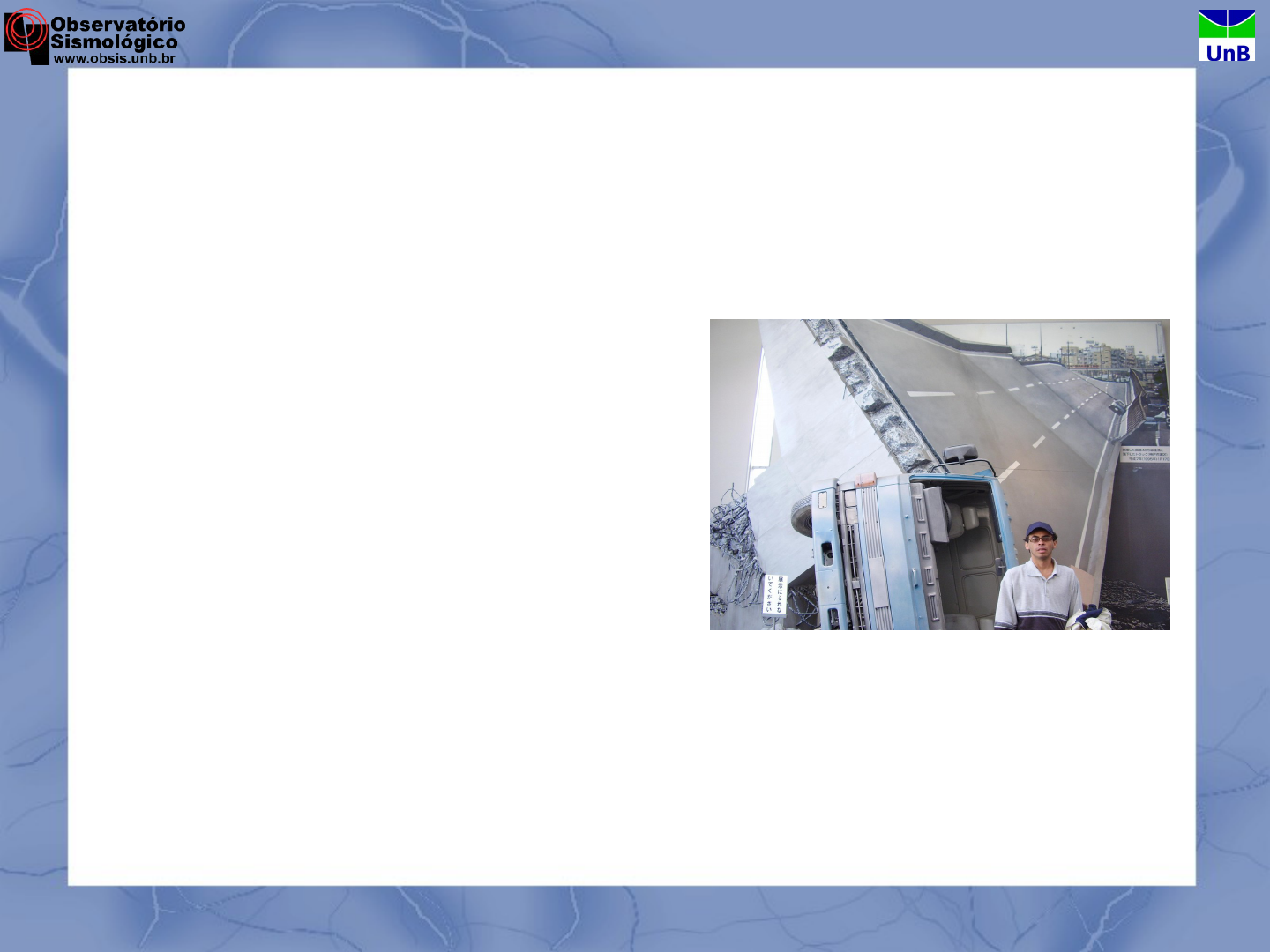 Prof. George Sand França 1 Sismologia ELEMENTOS DE SISMOLOGIA: Ondas P, S e superficiais; Estrutura Interna da Terra: Crosta continental e oceânica; Litosfera e astenosfera e Núcleo externo e núcleo interno; Intensidade sísmica e magnitude; Mecanismos de falhamentos e esforços tectônicos; Sismicidade mundial; Sismicidade Intraplaca; Sismicidade da América do Sul e do Brasil. Sismicidade induzida. Prof. George Sand França 2 SISMOLOGIA Seismo (grego) Choques Estuda os terremotos, tremores e movimentos violentos que ocorrem no nosso planeta. A sismologia estuda analisando as vibrações que são produzidas por terremotos, ou por impacto de meteoritos ou por qualquer meio artificial. Prof. George Sand França 3 Ondas de corpo(P e S) e de superfície. Ondas de Corpo (Body waves) São ondas sísmicas que se propagam em todas as direções na terra. A propagação sofre os mesmos fenômenos da luz, ou seja, a direção das ondas de corpos muda (refrata) ao passar de um meio com velocidade e/ou densidade para outro com velocidade e/ou densidade. Existe dois tipos de onda de corpo Onde P e S Prof. George Sand França 4 Ondas de corpo e de superfície Onda P (Primary ou longitudinal) movimentam as partículas do solo comprimindo-as e dilatando-as. O movimento das partículas é paralelo à direção de propagação da onda. O som é uma onda P fonte:www.iris.edu http://web.ics.purdue.edu/~braile/edumod/waves/Pwave.htm Prof. George Sand França 5 Ondas de corpo e de superfície Figura modificada do Stein & Wysession, 2002 (2.4-4) Fonte Receptor Superfície SH SV P Propagação de onda Prof. George Sand França 6 Ondas de corpo e de superfície Onda S (Secundary), Essas envolve cisalhamento e rotação do meio quando as ondas passam no meio, porem não altera o volume. Movimentam as partículas do solo perpendicularmente à direção de propagação da onda. O movimento da onda S pode ser dividido em; SH movimento horizontal das partículas, horizontalmente polarizado. SV movimento vertical das partículas, verticalmente polarizado. fonte:www.iris.edu http://web.ics.purdue.edu/~braile/edumod/waves/Swave.htm Prof. George Sand França 7 Ondas de Corpo α=vP=√ λ+2μρ β=vS=√ μρ Velocidades das ondas P e S depende de propriedades físicas do meios que se propagam. e são denominados parâmetros de Lamé e é a densidade. é o módulo cisalhante e é a medida de resistência do material para sofrer cisalhamento. Na água, =0, a onda S não se propaga no núcleo externo liquido. não tem explicação física, meramente matemático. K = +2/3 , módulo de incompressibilidade (do volume). É definido como a razão do aumento de pressão para alterar o volume. fonte:www.iris.edu Prof. George Sand França 8 Ondas de corpo Prof. George Sand França 9 Ondas de superfície São ondas sísmicas que se propagam junto a superfície da terra. Terremotos rasos geram melhores ondas superficiais. Explosões nucleares geram relativamente ondas superficiais menores e isso é um fator determinante para descriminar terremoto de explosão nuclear. Ondas de superfície tem grandes amplitudes e duração em comparação com as ondas de corpo. Dois tipos: Rayleigh e Love Ambas são dispersiva, ou seja, que significa que suas velocidades depende da frequência (diferentes frequências viajam com diferentes velocidades) fonte:www.iris.edu Prof. George Sand França 10 Ondas de superfície Ondas Rayleigh (LR ou R, L=Long) uma combinação da movimento da P e S contida no plano vertical. (Lord Rayleigh, 1887) Ocorre próximo a superfície em semi-espaço. Próximo a superfície, o seu movimento vertical é uma elipse retrograda (sentido anti-horário). Pode ser registrada tanto na componente vertical quanto na horizontal. Amplitude decresce exponencialmente com a profundidade. http://web.ics.purdue.edu/~braile/edumod/waves/Rwave.htm Prof. George Sand França 11 Ondas de corpo e de superfície Ondas Love (LQ ou Q, Querwellen, ondas transversais em alemão) A. E. H. Love-1911. Corresponde superposição das ondas S com vibrações horizontais e ocorrem quando há aumento da velocidade da onda S com a profundidade. Polarizada horizontalmente, logo só pode ser registrada pela componente horizontal. http://web.ics.purdue.edu/~braile/edumod/waves/Rwave.htm Prof. George Sand França 12 S SP superfície P Sismo do Chile de 20/06/2003 registrado em Aquidauana-MT S Prof. George Sand França 13 S P Caruaru-PE no dia 30/06/2002 S P superfície Prof. George Sand França 14 Videos https://youtu.be/4nS10xNBfVE Prof. George Sand França 15 Determinação de terremotos Com a informações dos tempos de chegadas da S-P podemos calcular a distancia do eventos a partir da expressão: Localização com uma estação Como a onda P é verticalmente e radialmente polarizada, o vetor da onda P pode ser usada para estimar o Azimute do epicentro. Movimento de Partícula D= tS−t P √3−1 v p Lay & Wallace, 1995 Prof. George Sand França 16 Resumo do Primeiro movimento. Prof. George Sand França 17 As ondas P e S chegam após 230s e 410s. Prove que esse evento tem o azimute e distancia mostrado figura b é localizado na Argentina (figura a). Considere vp igual a 6.5 km/s e 1º ≈ 111,2 km/s. Prof. George Sand França 18 Várias estações O tempo entre as ondas P e S aumentam linearmente com a distância epicentral. Utilizando as diferenças dos tempos de chegadas, pode-se determinar três círculos com raios dados equação anterior. A B C Prof. George Sand França 19 Atividade Certificado de Sismólogo Virtual (http://www.sciencecourseware.com/virtualearthquake/ vquakeexecute.html) e no site . Perguntas para próxima aula? No mundo, qual as falhas geológicas que podem causar terremoto. No Brasil, você conhece alguma? Como identificar o interior da terra com os sismogramas? Slide 1 Slide 2 Slide 3 Slide 4 Slide 5 Slide 6 Slide 7 Slide 8 Slide 9 Slide 10 Slide 11 Slide 12 Slide 13 Slide 14 Slide 15 Slide 16 Slide 17 Slide 18 Slide 19