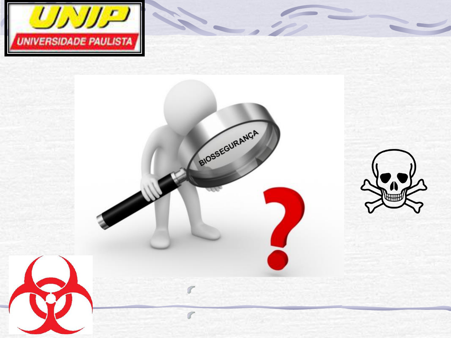 Profª.Dra. Mayra Kassawara Martins Email: maykmartins15@gmail.com Biossegurança Estratégia de Trabalho Aulas expositivas, discursivas, ilustradas com desenhos e slides Trabalhos em grupo com preparo de seminários; Estudos dirigidos, exercícios e trabalhos extra- classe; Metodologia de Avaliação A avaliação será feita por meio de: a) Provas Bimestrais; b) Demais atividades realizadas pelos aluno, (exercícios em sala de aula, apresentação de seminários de acordo com os Critérios de Avaliação da Universidade; c) Participação do aluno durante a aula. Metodologia de Avaliação Critérios de análises dos Trabalhos e Relatórios realizados: a) Qualidade técnica (Criteriosa pesquisa bibliográfica); b) Cuidado e capricho na elaboração dos mesmos; c) Entrega dentro do prazo pré-estabelecido; d) Análise comparativa. Não Permitido a)Utilização de celular na sala de aula; b) Colas e anotações – ZERO; c) Proibido filmar ou gravar a aula. Biossegurança: Conceito Amplo Biossegurança = Vida + Segurança = Vida livre de perigos Conjunto de medidas voltadas para evitar, minimizar ou eliminar os riscos para o homem, animais e meio ambiente Biossegurança Saúde Qualidade da pesquisa; Qualidade ambiental; Avanço científico e tecnológico Qualidade de vida em nossas casas. Conjunto de medidas para a minimização dos RISCOS para o homem, animais e meio ambiente Biossegurança Exemplo: Um catador de lixos revira sacolas e caixas em um lixão; De repente, um descuido. Ele se fere com uma seringa utilizada em e abandonada no meio do lixo. Biossegurança Exemplo: BIOSSEGURANÇA DE ONDE VÊM A FALTA DE CONHECIMENTO? • instrução inadequada; • supervisão ineficiente; • práticas inadequadas; • mau uso de EPI; • trabalho falho; • não observação de normas. Prevenir é melhor que remediar!!! HISTÓRICO 1951 – Sulkin e Pike – Acidentes de trabalho mais frequentes na área da saúde: Analistas - Brucelose e Tuberculose; Maioria dos casos relacionado ao uso de pipetas, seringas e agulhas. BIOSSEGURANÇA Questionário BIOSSEGURANÇA 1980 – Manual de Precauções Universais para manipulação de fluídos corpóreos (HIV) BIOSSEGURANÇA Brasil – O surgimento da Biossegurança 1984 – Primeiro Workshop de Biossegurança (Biossegurança em Laboratórios ) - Fiocruz 1986 – Primeiro levantamento de riscos em laboratório na Fiocruz Brasil – O surgimento da Biossegurança Década de 90 – a Biossegurança começa a ser direcionada para a tecnologia do DNA recombinante (transgenicos). Primeiro projeto de fortalecimento das ações em Biossegurança – Ministério da Saúde. 1995 – Lei brasileira de Biossegurança Lei 8974/95 REGULAMENTAÇÃO DA BIOSSEGURANÇA NO BRASIL LEI 8974 estabelece regras para o trabalho com DNA recombinante no Brasil, incluindo pesquisa, produção e comercialização de OGM’s. 1995 - Decreto 1752 – Surgimento da Comissão Técnica Nacional de Biossegurança – CTNBio - Ministério da Ciência e Tecnologia. 1995 – Lei brasileira de Biossegurança Lei 8974/95 Biossegurança como Ciência 1999 – Fundação da Associação Nacional de Biossegurança – ANBio ( www.anbio.org.br) Congresso Brasileiro de Biossegurança e Biosseguridade – Brasília - 2006 BIOSSEGURANÇA EM LABORATÓRIOS DE ENSINO E PESQUISA Laboratório de Ensino e Pesquisa e seus Riscos Uso de EP’s Boas Práticas e Técnicas Projeções do Ambiente BIOSSEGURANÇA Três Fundamentos: Laboratório de Informática Laboratório de Ensino BIOSSEGURANÇA Laboratório de Análises – NB3 SIMBOLOGIA RADIAÇÃO RISCO BIOLÓGICO ARMA QUÍMICA SIMBOLOGIA IRRITANTE INFLAMÁVEL TÓXICO CORROSIVO EXPLOSIVO SUPERFÍCIE AQUECIDA BAIXA TEMPERATURA Nostradamus – ressaltando o uso de EPI’s Nem tudo que é perigoso vem marcado! Cuidados que devem ser adotados no Laboratório Pertences Jalecos Luvas Como proceder com... • Equipamentos • Vestuário pessoal • Bancadas • Descartes PRÁTICAS SEGURAS Lavar as mãos ANTES e DEPOIS de entrar no laboratório; Descominar a superfície de trabalho ANTES e DEPOIS do uso; ☻Solução de Alcool 70%; ☻Solução de Lysoform 1%; ☻Solução de Hipoclorito 3-4%; ☻Solução de Formaldeido 5%. EPI x EPC EPI: Equipamento de Proteção Individual. É todo dispositivo de uso individual, destinado a proteger a integridade física do analista/trabalhador. Ex:????? EPC: Equipamento de Proteção Coletiva: É todo dispositivo de uso coletivo, destinado a proteger o homem, animais e meio ambiente. Ex:????? USO DE EQUIPAMENTO DE PROTEÇÃO a) Jaleco; b) Luvas; c) Toucas; d) Sapatos fechados; e) Máscara; f) Óculos; EPI a) Chuveiro; b) Lava-olhos; c) Extintor; d) Fluxo laminar; e) Placas de sinalização. EPC PRATICAS SEGURAS USO DE EQUIPAMENTO DE PROTEÇÃO COLETIVA PRATICAS SEGURAS BOAS PRÁTICAS: UNIFORMES PRÁTICAS SEGURAS O JALECO DE TRABALHO DEVE PERMANECER SEMPRE DENTRO DO LABORATÓRIO; PRÁTICAS SEGURAS Não misturar lixo comum com biológico. Não circular com EPI’s em áreas fora do laboratório. PRÁTICAS SEGURAS BOAS PRÁTICAS: PIPETAS BOAS PRÁTICAS: CALÇADOS PRÁTICAS SEGURAS Não trabalhar no mesmo horário que o pessoal da limpeza BOAS PRÁTICAS BOAS PRÁTICAS: ATENÇÃO Dentro do laboratório e em outros ambientes de trabalho, faça as coisas com calma e concentrado, caso contrário você poderá entrar em pânico e causar acidentes! PRÁTICAS SEGURAS Não atender ao telefone ou abrir portas com luvas de procedimento. BOAS PRÁTICAS: VETORES PRÁTICAS SEGURAS Identificar o frasco: Etiqueta Nome da Solução: ___________________ Data que foi preparada: _______________ Quem preparou:_____________________ Cuidados de armazenamento: __________ Preparo de Soluções PRÁTICAS SEGURAS Cuidado ao transportar frascos PRÁTICAS SEGURAS Se for o último a sair, desligue a luz e equipamentos, verificando se há algum recado no caso de uso “overnight” dos mesmos Previna, não deixe acontecer o pior, a nossa segurança está em n