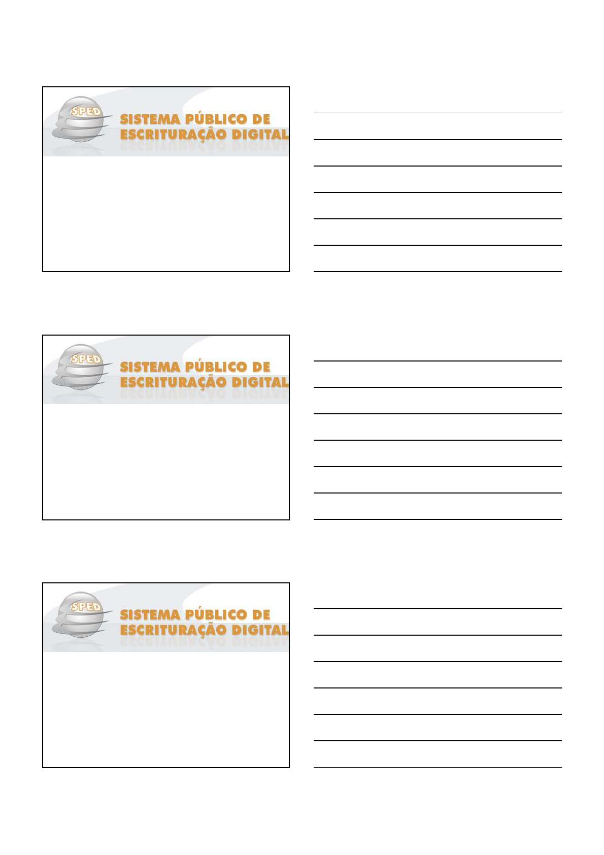 30/04/2017 1 FORMAÇÃO EM SPED Módulo 1 - Documentos Fiscais Eletrônicos APRESENTAÇÃO Bem vindo ao Módulo 1 – Documentos Fiscais Eletrônicos, ele foi desenvolvido com foco no seu aprendizado. Este módulo está divido em 5 partes que abordaremos ao longo de 3 horas. PARTE 1: NOTA FISCAL ELETRÔNICA – NF-e PARTE 2: CUPOM FISCAL ELETRÔNICO – CF-e PARTE 3: NOTA DE CONSUMIDOR ELETRÔNICA – NFC-e PARTE 4: CONHECIMENTO DE TRANSPORTE ELETRÔNICO – CT-e PARTE 5: MANIFESTO DE DOCUMENTOS FISCAIS ELETRÔNICOS – MDF-e Licensed to EVANDRO MONTE BARROS , E-mail: sei.evandro@gmail.com 30/04/2017 2 PARTE 1 NOTA FISCAL ELETRÔNICA NF-e PARTE 1 – Nota Fiscal Eletrônica • Conceitos, legislação e modelo operacional • Aspectos Operacionais: Autorização, Cancelamento, Denegação, Rejeição e Inutilização de Numerações • Eventos, carta de correção e leiaute NASCIMENTO - SPED Emenda Constitucional nº 42/2003 Protocolos de Cooperação Técnica (2004) Projeto de Modernização da Administração Tributária (2005) PAC – Crescimento Econômico do País (2010) Licensed to EVANDRO MONTE BARROS , E-mail: sei.evandro@gmail.com 30/04/2017 3 SPED – PREMISSAS � Promover a integração dos Fiscos mediante a padronização e compartilhamento das informações contábeis e fiscais. � Eliminar a redundância de informações por meio da padronização das obrigações acessórias. � Tornar mais célere a identificação de ilícitos tributários, com a melhoria dos processos e a rapidez no acesso as informações. � Reduzir os custos das empresas com a racionalização e simplificação do cumprimento das obrigações tributárias. “Fazer SPED é trabalhar no século XXI, é ampliar os horizontes tecnológicos, quebrando paradigmas administrativos, abrindo a mente para um universo de informação e conhecimento.” Ricardo Gimenez Sócio-fundador da Coldwell Licensed to EVANDRO MONTE BARROS , E-mail: sei.evandro@gmail.com 30/04/2017 4 Obrigação Tributária PIS, COFINS, ICMS E IPI Emissão de Documento Fiscal Escrituração Contábil Escrituração Fiscal Entrega de Declarações Prestação de Informações ao Fisco Pagamento de tributo Pagamento de penalidade pecuniária SPED CONVÊNIO – S/N 1970 Emitirão, conforme as operações que realizarem, os seguintes documentos fiscais: I – Nota Fiscal, modelo 1 ou 1-A; II – Nota Fiscal de Venda a Consumidor, modelo 2; III – Cupom Fiscal emitido por Equipamento Emissor de Cupom Fiscal (ECF); IV – Nota Fiscal de Produtor, modelo 4. Fundamentação HIERARQUIA ICMS 2 3 4 1 Constituição Federal LC 87/1996 Convênio e Protocolo Lei Estadual Licensed to EVANDRO MONTE BARROS , E-mail: sei.evandro@gmail.com 30/04/2017 5 NF-e EVENTOS MDF-e CT-e BRASIL ID VISÃO ÚNICA OBJETIVO – INTEGRAÇÃO CLOUD FISCAL = EVENTOS COMPARTILHADOS CFOP Licensed to EVANDRO MONTE BARROS , E-mail: sei.evandro@gmail.com 30/04/2017 6 NF-e LEGISLAÇÃO APROVADA Ajuste SINIEF 07/2005 e alterações Ato COTEPE 22/2008 Protocolos 10/2007 e 42/2009 Ajuste SINIEF 05/2012 NF-e PROCEDIMENTOS PARA EMISSÃO Certificado Digital credenciada ao ICP-Brasil Solicitar seu credenciamento Sistema de faturamento ou Emissor gratuito Testar seus sistemas em ambiente de homologação Ambiente de produção Licensed to EVANDRO MONTE BARROS , E-mail: sei.evandro@gmail.com 30/04/2017 7 NF-e DEFINIÇÃO 1.Documento de existência apenas digital (XML) 2.Emitido e armazenado eletronicamente 3.Documentar uma operação de circulação de mercadorias (GERALMENTE ENTRE PJ) 4.Validade jurídica garantida pela assinatura digital do remetente (CERTIFICADO DIGITAL) 5.Recepção, pelo fisco, do arquivo eletrônico, antes da ocorrência do fato gerador (AUTORIZAÇÃO) SUAS NOTAS ESTÃO SENDO ARQUIVADAS ? NF-e BENEFÍCIOS Para os emitentes: 1. Redução de custos com documentos fiscais 2. Redução de custos de armazenagem 3. Simplificação de obrigações acessórias Para os destinatários: 1. Eliminação de digitação na recepção da NF 2. Planejamento de logística 3. Redução de erros de escrituração Para a sociedade: 1. Redução do consumo de papel 2. Incentivo ao comércio eletrônico Licensed to EVANDRO MONTE BARROS , E-mail: sei.evandro@gmail.com 30/04/2017 8 NF-e DOCUMENTOS SUBSTITUIDOS Art. 127 – Documentos Fiscais de acordo com as operações que realizarem TIPOS: I - Nota Fiscal, modelo 1 ou 1-A NF-e VALIDAÇÕES REALIZADAS � SEFAZ: 1. Situação Cadastral do Emitente e Destinatário (DENEGAÇÃO) 2. Credenciamento 3. Assinatura Digital 4. Formato do Arquivo (REJEIÇÃO) 5. Numeração da NF-e NF-e ERROS COMUNS 203 – Emissor Não Habilitado 204 – Duplicidade 218 – NFe já na base de dados da SEFAZ 219 – Circulação da NFe verificada 234 – Inscrição não vinculada ao CNPJ 291 – Certificado Assinatura Data Validade Licensed to EVANDRO MONTE BARROS , E-mail: sei.evandro@gmail.com 30/04/2017 9 NF-e MODELO OPERACIONAL Autoriza NFe2 XML XML assinado Fazenda de origem Solicita autorização NFe1 Transporta mercadoria 4 Posto Fiscal Valida DANFE5 CLIENTE Valida NFe 7 Fazenda de destino Transmite NFe ? Emite DANFE 3 Recebe mercadoria+DANFE 6 Receita Federal Transmite NFe ? Contribuinte NF-e DANFE Trânsito e Circulação da Mercadoria Impresso em papel comum, exceto papel jornal FUNÇÕES: Conter a chave númerica Auxiliar na escrituração NÃO pode ser diferente do XML NF-e VISUALIZAÇÃO DO DANFE � Conter a chave númerica para que se consulte a condição de regularidade da NFe; � Acompanhar as mercadorias em trânsito; � Auxilia na escrituração da NF-e; � O DANFE deve ser impresso pelo vendedor da mercadoria antes da circulação da mesma; � Não poderá conter informações que não constem na NF-e. Licensed to EVANDRO MONTE BARROS , E-mail: sei.evandro@gmail.com 30/04/2017 10 NF-e NUMERAÇÃO E ITENS Sequêncial de 1 a 999.999.999, por série Modelo “55” 990 itens ou 500 Kbytes DANFE poderá ser emitido em mais de uma folha inc