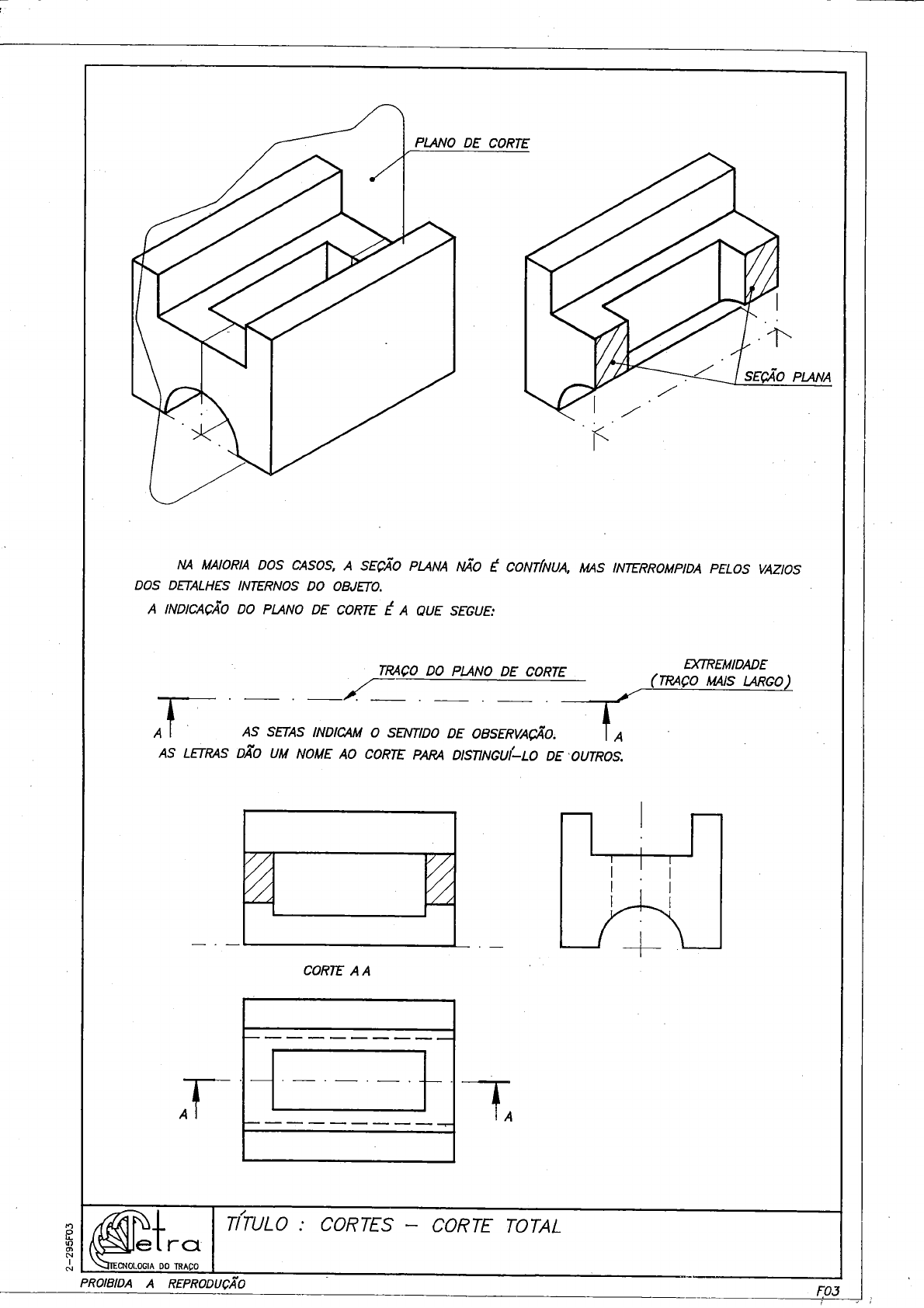 Questão 2 | DESENHO TECNICO MECANICO Código da questão: 219515 O corte é uma técnica de representação auxiliar que propicia ao interpretador do des...