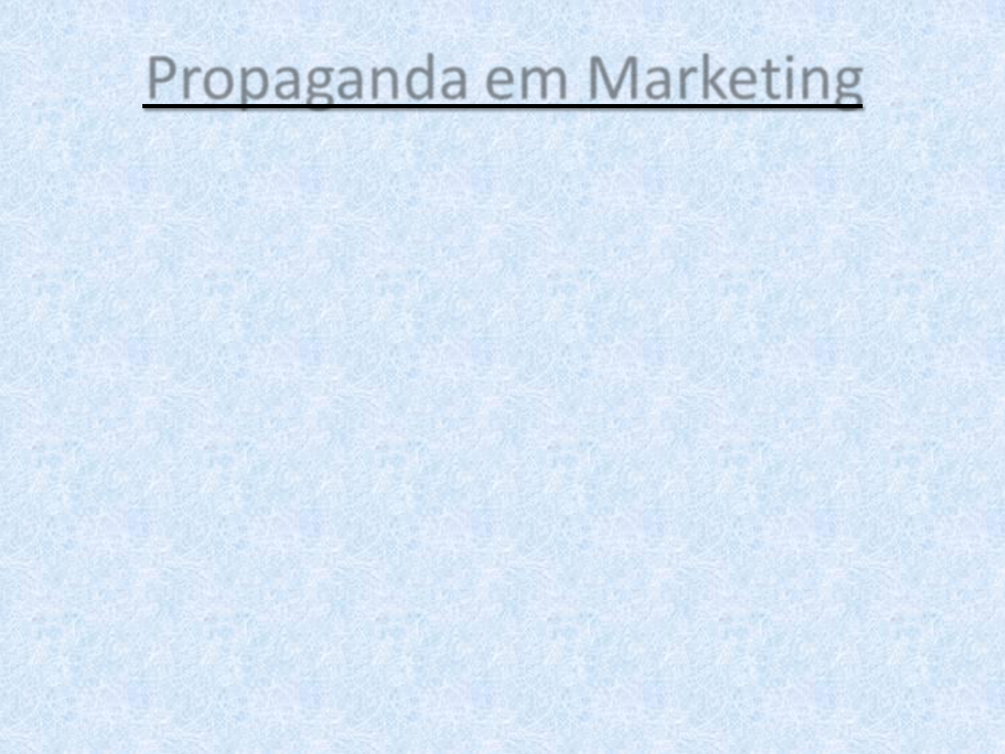 Propaganda em Marketing A Propaganda é uma poderosa ferramenta de Marketing e tem como finalidade estimular a lembrança do consumidor para comprar o produto desejado ou necessário, através dos seus benefícios. A felicidade está no horizonte... A Propaganda deve: Encantar o consumidor; Dar informações que façam vir a mente do consumidor a lembrança das suas necessidades e desejos. Focar os benefícios proporcionados pelo produto aos seus consumidores, Propaganda em Marketing Muito mais do que criar uma Propaganda atrativa, cabe ao profissional de Marketing conhecer e praticar cada uma das etapas dos 5 M´s da Propaganda. As etapas do processo da propaganda são: entender a Missão, estimar a quantidade de Moeda, selecionar os Meios, criar as Mensagens e avaliar com as Mensurações. Propaganda em Marketing MACRO FLUXO 5 M’s da Propaganda Missão Neste ponto devem ser estabelecidos os objetivos reais da realização da Propaganda, exatamente como é feito com uma empresa, uma Propaganda precisa ter um direcionador, ter um foco e um ponto a ser atingido. MISSÃO Objetivo da Propaganda PROPAGANDA INFORMATIVA PROPAGANDA PERSUASIVA PROPAGANDA DE LEMBRANÇA PROPAGANDA DE REFORÇO MISSÃO Informativa: divulgar a marca, existência do produto, meios de utilização, mudança de preço, funcionalidade, corrigir falsa impressões... Persuasiva: desenvolver preferência, troca de marca, mudar percepção, estimular a compra imediata, criar simpatia, preferência, convicção... Lembrar: manter na cabeça do cliente, compra futura, onde comprar... Reforço: convencer atuais clientes que fizeram a compra certa... Moeda Fatores que devem ser considerados na hora de estabelecer o orçamento de propaganda Estagio no Ciclo de vida do produto Participação de mercado e base de consumidores Concorrência e saturação de comunicação Frequência de propaganda Grau de substituição do produto Mensagem Toda Propaganda deve ter uma mensagem, transmitir informações e dar ao consumidor o que é realmente importante, algumas empresas fracassam por não criarem mensagens de fácil compreensão e não percebem o erro cometido; Desenvolvimento da Mensagem Criação e avaliação da mensagem Desenvolvimento e execução criativas Análise da responsabilidade social Mídia Sempre deve-se escolher o melhor veículo para “espalhar” sua propaganda, mas deve-se conhecer, por meio de Pesquisa, qual é o melhor caminho a seguir, saber seu alcance, a freqüência e impacto, principalmente quando há conhecimento de quem é seu público-alvo. TV IMPRESSOS JORNAL OUTDOOR RÁDIO REVISTAS TELEFONE INTERNET Mídia Mensuração Objetivo atingido ? Necessidade de ajustes ? Ampliar veiculação ? Retirar veiculação ? Atividade Apontar uma propaganda feita pela empresa case, sua Missão, Moeda, Mensagem, Mídia e Mensuração. O grupo deverá sugerir uma propaganda adequado ao objetivo de marketing proposto para a empresa case escolhida pelo grupo e indicar os cinco Ms.