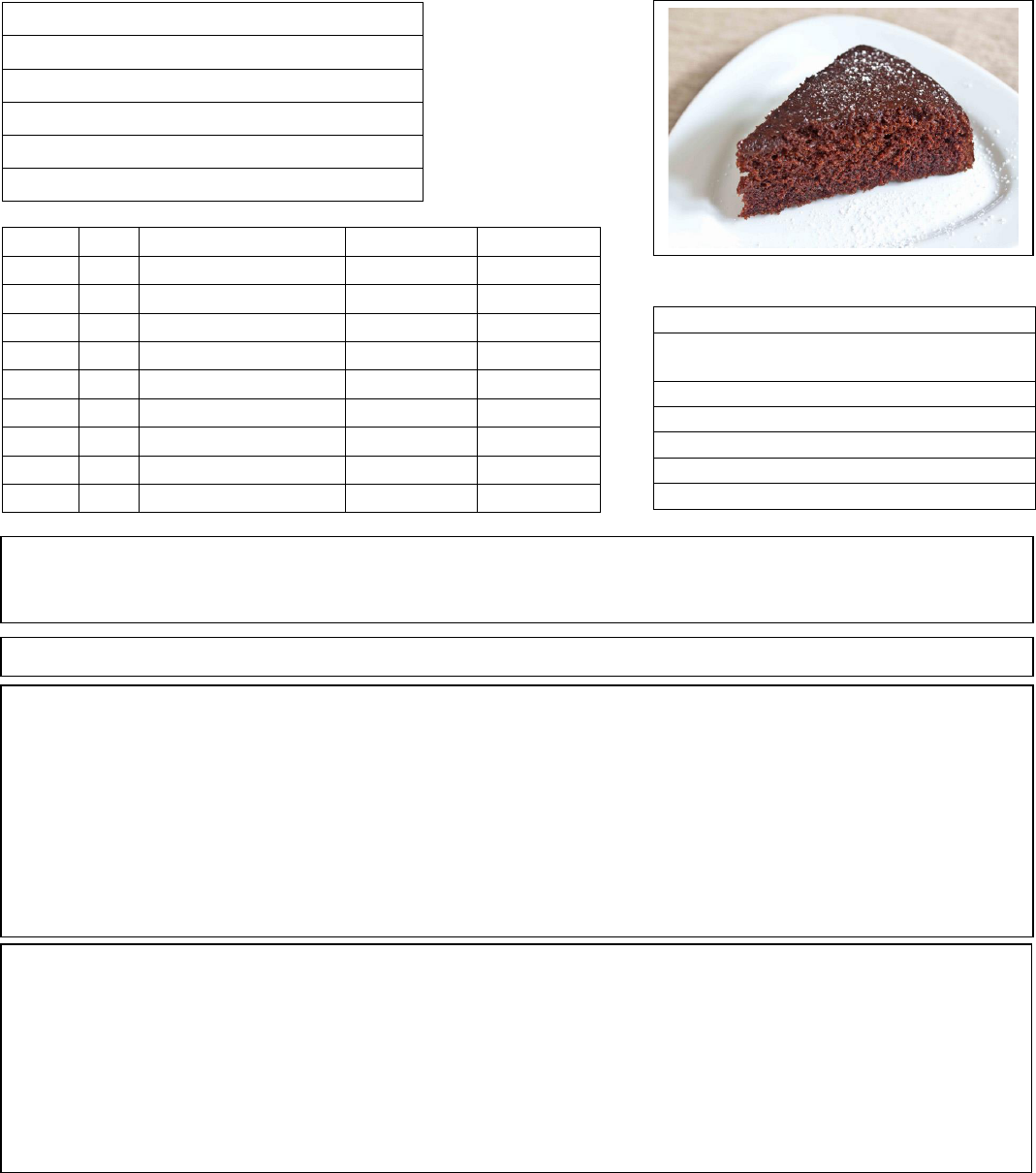 RECEITUÁRIO: CONFEITARIA Categoria: Sobremesas/Bolos Receita: Bolo de Chocolate com Amêndoas TEMPO DE PREPARO: 45 MINUTOS RENDIMENTO: 1 unidade com 8 porções PERDA ACEITÁVEL: 2% DO TOTAL DOS INSUMOS Qtde. UN INGREDIENTES FORNECEDOR ESTOQUE 200 Gr Chocolate meio amargo Garoto Secos 150 Gr Manteiga sem sal Aviação Refrigeração 80 Gr Gemas Hoshy Refrigeração 120 Gr Claras Hoshy Refrigeração 200 Gr Açúcar refinado União Secos 75 Gr Amêndoas laminadas La Secos 75 Gr Farinha de Trigo Sol Secos 2 ml Essência de Baunilha Dr. Otker Secos 50 Gr Chocolate em pó Harald Secos CARACTERÍSTICAS PÓS-PREPARO Textura: Superfície quebradiça e interior úmido Calorias por porção: 380 Kcal Validade: 3 dias Armazenamento: à Seco Coberto Temperaturas: Mínima/Máxima 4° - 22° Tempo de Exposição: 3 dias Utensílios/Equipamentos: Forma redonda diâmetro: 23 cm com fundo removível, Espátula, Fuet, Pincel, Frigideira, Batedeira, Panela média, Boll médio, Peneira fina, Fatiador redondo 8 porções, Expositor bailarina, Fogão, Forno Convencional, Refrigeração. Mão de Obra: Auxiliar de confeitaria / Garçom ou commis (dependendo do serviço) Modo de preparo: Pré aquecer o forno à 210º C, untar com manteiga e polvilhar chocolate em pó uma forma redonda de 23 cm de diâmetro com fundo removível. Torrar na frigideira as amêndoas até ficarem douradas e crocantes, reserve. Bata as claras em neve e reserve. Em um boll, coloque o chocolate meio amargo e a manteiga, leve ao fogo brando em banho-maria, derreter até que forme uma mistura homogênea. Junte as gemas, o açúcar e as amêndoas torradas, misture até integrar os ingredientes. Retire do fogo acrescente a farinha de trigo e a essência de baunilha. Incorpore as claras em neve. Despeje na forma e polvilhe com a peneira o chocolate em pó. Assar por 10 minutos à 210º C, diminuir a temperatura para 190º C e deixar mais 25 minutos. Retirar do forno, deixar esfriar e desenformar. Montagem: Montar em expositor bailarina com tampo de vidro, demarcar com fatiador. Serviços: Buffet: Montado em bailarina fixa com tampo de vidro, demarcado com fatiador, à parte espátula de serviço no aparador e polvilhador de tela com açúcar de confeiteiro. Francesa: Montado em bandeja, servido com cortador triangular, à parte polvilhador de tela. Inglesa: Porcionado em prato de sobremesa, polvilhar açúcar de confeiteiro, conforme imagem do produto. Venda direta unidade: Montar em embalagem atóxica redonda 25 cm com tampa transparente e travas de segurança, etiquetar: data de fabricação, ingredientes/valores nutricionais, data de validade, preços. Venda direta porção: Montar em embalagem atóxica triangular com tampa transparente e travas de segurança, etiquetar: data de fabricação, ingredientes/valores nutricionais, data de validade, preços.