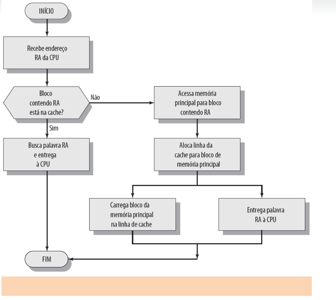 Funcionamento da Cache Leitura de um dado • A CPU coloca no AD (Address Bar) o endereço do dado solicitado a MM; • O chipset (a controladora da memória) intercepta o endereço solicitado e verifica se o dado está ou não presente na cache; – Se estiver, acerto (hit) => uma cópia do dado é transferida da cache para a CPU via DB (Data Bar); – Senão estiver, falta (miss) => o chipset solicita o dado a MM, que é transferido para a cache, e somente em seguida a cópia do dado é transferida para a CPU; • Tempo de acesso é bem maior. 9 Memória Cache ch ip se t ch ip se t Funcionamento da Cache 10 Memória Cache Fluxograma: Acesso a Memória envolvendo Cache Funcionamento da Cache 11 Memória Cache Organização típica da Mem. Cache Organização da Cache Memory • A MM (Primary Memory) é formada por: – N células de um byte cada (em geral); – Que são agrupadas em palavras; – Que por sua vez são agrupadas em blocos de K palavras. • A CM (Cache Memory) é formada por: – m blocos, chamados de linhas; – 1 linha CM = 1 bloco da MM + tag + dados de controle. – Tamanho Cache << Tamanho MM 12 Memória de 64 MB 1 Palavra de 4 bytes 1 Célula de Memória 0 N-1 1 Bloco de 2 palavras Endr 0007H Endr 0006H Endr 0000H Endr 0001H Endr 0002H Endr 0003H Endr 0004H Endr 0005H ... Endr FFFFH Funções de Mapeamento • Como existem menos linhas na Cache do que na MM, é necessário haver um algoritmo para mapear as linhas da Cache com os blocos da MM. • Esse algoritmo diz para cada bloco da MM qual a linha da Cache ele irá ocupar. • Logo, a escolha do algoritmo de mapeamento diz como a CM (Cache Memory) será organizada. • Existem, basicamente, 3 técnicas de mapeamento: – Mapeamento Direto – Mapeamento Associativo – Mapeamento Associativo em Conjunto 13 Formato da Linha de Cache • Para saber qual bloco da MM a linha da Cache está guardando, uma tag (ou núm. do bloco da MM) contendo o núm do bloco da MM tb é guardado na Linha da Cache. • Para saber se a Linha de Cache está ocupada ou contém lixo, é usado um bit de validade (1 válido, 0 lixo). • Como os dados alterados na cache NÃO precisam ser imediatamente escritos na MM, a Linha de Cache tb mantém um bit sujo, para indicar que os dados ali contido precisam ser atualizados na MM antes do Bloco ser substituído. • Linha de Cache = [bit de validade] [bit sujo] [tag] [dado] 14 Questões de Projeto da Cache Memory • Qual será – A função de mapeamento de dados PM/Cache ? – O algoritmo de substituição de dados na cache ? – A politica de escrita de dados na cache ? – O tamanho da cache ? – O tamanho da largura de linhas da cache ? • Isto é, quantas palavras cabem em 1 linha da cache. • Quantos níveis de cache serão usados ? 15 Mapeamento Direto • Forma mais simples de mapeamento; • A posição do bloco da MM na CM depende do endereço da palavra; • Cada palavra está associada a uma única posição na Cache; • Este mapeamento é dado através da função NumLinhaCache := NumBlocoMM módulo TotalLinhasCache • P.ex. NumTotalLinhas = 4 Bloco 0 => Linha 0 Bloco 1 => Linha 1 ... Bloco 8 => Linha 0 Bloco 9 => Linha 1 Bloco 10 => Linha 2 Bloco 11 => Linha 3 ... • Formato Endr: [tag] [linha] [palavra] 16 Funções de Mapeamento