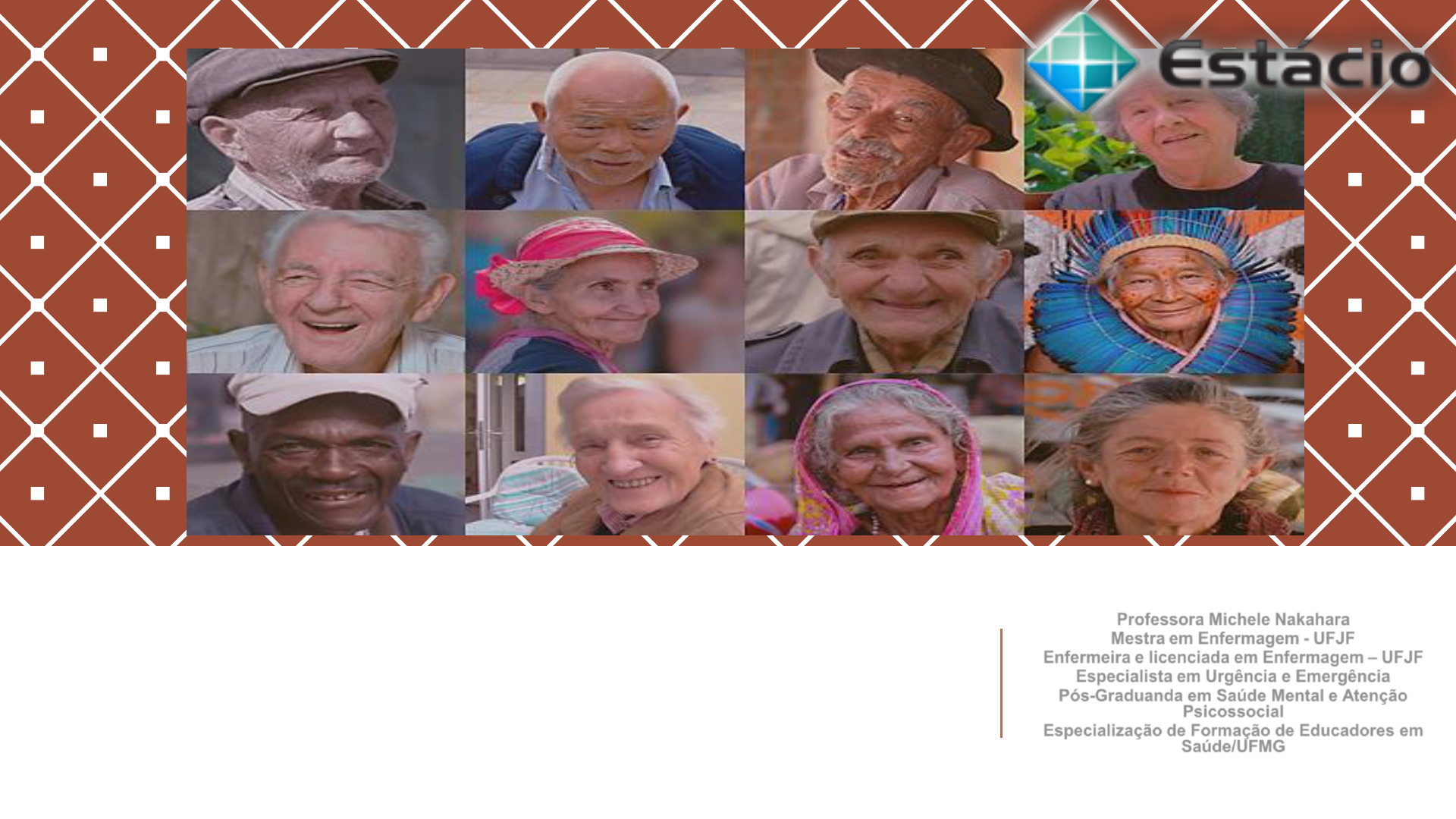ASSISTÊNCIA DE ENFERMAGEM AO CLIENTE IDOSO Professora Michele Nakahara Mestra em Enfermagem - UFJF Enfermeira e licenciada em Enfermagem – UFJF Especialista em Urgência e Emergência Pós-Graduanda em Saúde Mental e Atenção Psicossocial Especialização de Formação de Educadores em Saúde/UFMG Envelhecimento individual é um processo sequencial, individual, acumulativo, irreversível, universal, não patológico, de deterioração de um organismo maduro, próprio a todos os membros de uma espécie, de maneira que o tempo o torne menos capaz de fazer frente ao estresse do meio-ambiente e, portanto, aumente sua possibilidade de morte (OPAS, 2005) O processo de envelhecimento não é homogêneo. Ele é influenciado por fatores genéticos, hábitos de vida, condições sociais e econômicas, aspectos culturais, entre outros. O processo natural de envelhecimento, ou senescência, em condições normais, não costuma provocar qualquer problema. No entanto, em condições de sobrecarga, como, a presença de doenças, o envelhecimento pode ocasionar uma condição patológica que requer assistência – situação denominada senilidade. NO BRASIL, ATÉ A DÉCADA DE 1960, HOUVE UM CRESCIMENTO POPULACIONAL HOMOGÊNEO. A PARTIR DA DÉCADA DE 1970, OBSERVOU-SE QUE A PROPORÇÃO ENTRE CRIANÇAS E PESSOAS COM 60 ANOS OU MAIS COMEÇOU A DIMINUIR, DANDO INÍCIO À TRANSIÇÃO DEMOGRÁFICA . A PARTIR DESSA DÉCADA, OBSERVOU-SE O ENVELHECIMENTO CONTÍNUO DA ESTRUTURA ETÁRIA, COM PERSPECTIVAS DE AUMENTO AINDA MAIOR DA POPULAÇÃO IDOSA NAS PRÓXIMAS DÉCADAS (PEREIRA, 2008). EM 2014, OS IDOSOS JÁ REPRESENTAVAM 13,7% DA POPULAÇÃO BRASILEIRA – 27,8 MILHÕES DE PESSOAS COM 60 ANOS OU MAIS. EM 2050, CALCULA-SE QUE ESSE NÚMERO CHEGUE A 64 MILHÕES – QUASE 30% DA POPULAÇÃO (IBGE, 2016). POR QUE ESSA MUDANÇA DA FAIXA ETÁRIA DA POPULAÇÃO BRASILEIRA É ALVO DE INTERESSE DE ENFERMEIRO??? CONSEQUÊNCIAS DO PROCESSO DE ENVELHECIMENTO Alterações relevantes nos indicadores de morbimortalidade. Pode-se dizer que temos, atualmente, uma superposição das doenças crônico-degerativas, dos acidentes e das violências sobre as doenças transmissíveis (CHAIMOWICZ, 2009). DCNT CAUSAS EXTERNAS DOENÇAS TRANSMISSI VEIS TRIPLA CARGA DOENÇAS FEMINIZAÇÃO DA VELHICE 2004 2009 Outra característica do nosso envelhecimento populacional é o aumento da proporção de idosos com mais de 80 anos entre os próprios idosos. Esses idosos constituem uma população bastante distinta dos idosos jovens devido à maior prevalência de doenças e ao grau de dependência funcional (CHAIMOWICZ, 2009). AS DIMENSÕES DO CONCEITO DE ENVELHECIMENTO ATIVO DOENÇA E CURA X CAPACIDADE FUNCIONAL ATIVIDADES DA VIDA DIÁRIA AUTONOMIA INDEPENDÊNCIA A Política Nacional de Saúde da Pessoa Idosa (PNSPI) aborda a saúde do indivíduo idoso como algo que se traduz pela sua condição de autonomia e independência, e não pela presença ou ausência de doença orgânica. AS DIMENSÕES DO CONCEITO DE ENVELHECIMENTO ATIVO DOENÇA E CURA X CAPACIDADE FUNCIONAL ATIVIDADES DA VIDA DIÁRIA AUTONOMIA INDEPENDÊNCIA As causas de declínio funcional, normalmente, são múltiplas e multifatoriais ↓ A presença de declínio funcional não pode ser atribuída ao envelhecimento normal, mas sim à presença de incapacidade funcional. O declínio funcional representa o principal determinante de desfechos negativos, como o desenvolvimento de outras incapacidades e piora funcional, institucionalização, hospitalização e morte. POLÍTICAS VOLTADAS À POPULAÇÃO IDOSA Política Nacional de Saúde da Pessoa Idosa (PNSPI) tem como finalidade recuperar, manter e promover a autonomia e a independência dos indivíduos idosos, direcionando medidas coletivas e individuais de saúde para esse fim, em consonância com os princípios e diretrizes do Sistema Único de Saúde. As diretrizes da Política são: POLÍTICA NACIONAL DO IDOSO (Lei nº 8.842, de 4 de janeiro de 1994) Dispõe sobre a Política Nacional do Idoso, cria o Conselho Nacional do Idoso e dá outras providências. A Política Nacional do Idoso tem por objetivo assegurar os direitos sociais do idoso (pessoas maiores de 60 anos de idade), criando condições para promover sua autonomia, integração e participação efetiva na sociedade. A Lei dispõe sobre os princípios, diretrizes, organização, ações governamentais e disposições gerais que deverão orientar a Política. CONSTRUÇÃO E CONSOLIDAÇÃO POLÍTICA NACIONAL DO IDOSO POLÍTICA NACIONAL DE SAÚDE DO IDOSO (Portaria nº 1395, de 10 de dezembro de 1999) Foi a primeira política brasileira expressamente relacionada à saúde do idoso. Em 2006, foi revogada pela Portaria MS/GM n° 2528, de 20 de outubro de 2006, que instituiu a Política Nacional de Saúde da Pessoa Idosa. POLÍTICA NACIONAL DE SAÚDE DA PESSOA IDOSA (Portaria MS/GM n° 2528, de 20 de outubro de 2006) Direciona medidas coletivas e individuais de saúde para população idosa em consonância com os princípios e diretrizes do Sistema Único de Saúde, a fim de promover a recuperação, a autonomia e a independência dos idosos. ESTATUTO DO IDOSO LEI NO 10.741, DE 1º DE OUTUBRO DE 2003. Proteção integral Preservação de saúde física e mental Liberdade e dignidade Direito à vida, saúde, alimentação, educação, cultura, esporte, lazer, trabalho, cidadania, liberdade, dignidade, respeito e convivência familiar Atendimento preferencial imediato e individualizado Priorização do atendimento do idoso por sua própria família (em detrimento asilar) Capacitação e reciclagem dos recursos humanos nas áreas de geriatria e gerontologia Formas de negligência, discriminação, violência, crueldade ou opressão, e todo atentado aos seus direitos, por ação ou omissão, será punido na forma da lei É assegurada a atenção integral à saúde do idoso, por intermédio do SUS atendimento domiciliar, incluindo a internação, para a população que dele nece