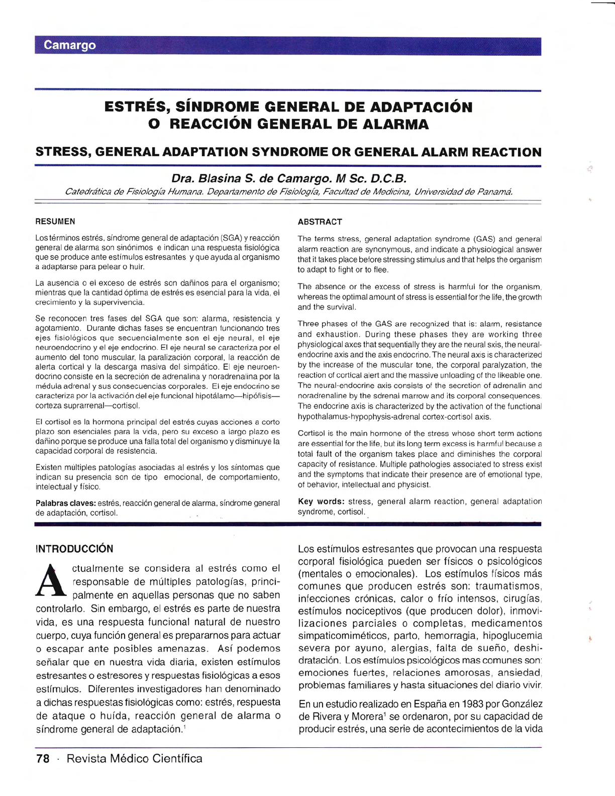 Palabras claves: estrés, reacción general de alarma, síndrome general