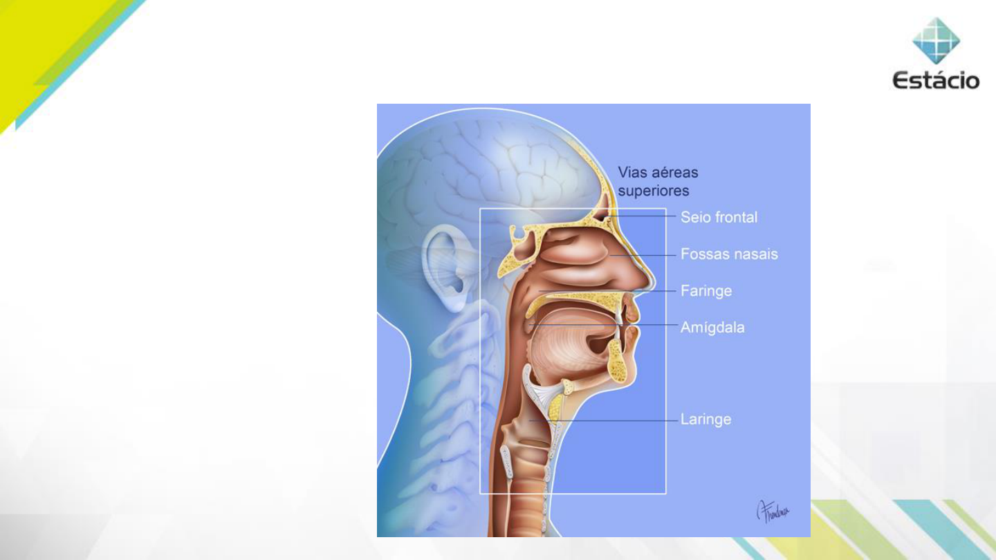Anatomia Sistêmica AULA 08: SISTEMA RESPIRATÓRIO Vias aéreas – zona de condução Vias aéreas superiores Anatomia Sistêmica AULA 08: SISTEMA RESPIRATÓRIO Vias aéreas – zona de condução Vias aéreas inferiores Anatomia Sistêmica AULA 08: SISTEMA RESPIRATÓRIO FOSSAS NASAIS Osso nasal Cartilagem nasal lateral Cartilagem alar maior Cartilagens alares menores Cartilagem septal Vômer Base Dorso Ápice Raiz Anatomia Sistêmica AULA 08: SISTEMA RESPIRATÓRIO FOSSAS NASAIS Cartilagem septal Lâmina perpendicular do etmóide Vômer Septo Nasal Anatomia Sistêmica AULA 08: SISTEMA RESPIRATÓRIO FOSSAS NASAIS (CAVIDADE NASAL) Vestíbulo nasal Vibrissas Conchas nasais – bastante vascularizado – aquecem o ar Células ciliadas – contém células que contém cílios que se movem, auxiliando na limpeza processo de limpeza e produtoras de muco – retém partículas pequenas e umidifica o arMeatos Epitélio olfatório - sensores olfativos Anatomia Sistêmica AULA 08: SISTEMA RESPIRATÓRIO FOSSAS NASAIS (CAVIDADE NASAL) Conchas nasais e meatos Palato duro e Palato mole Tonsila faríngea Tonsila palatina Anatomia Sistêmica AULA 08: SISTEMA RESPIRATÓRIO Seios paranasais Espaços preenchido de ar Aumentam a ressonância da voz e Auxiliam na produção de muco Inflamação desses seios - sinusite Anatomia Sistêmica AULA 08: SISTEMA RESPIRATÓRIO FARINGE NASOFARINGE Coanas nasais Úvula OROFARINGE Epiglote LARINGOFARINGE Cricóide Passagem de ar e alimentos Câmara de ressonância, ajudando a amplificar a voz Vestíbulo da laringe Prega vestibular Prega vocal Ventrículo da laringe Anatomia Sistêmica AULA 08: SISTEMA RESPIRATÓRIO Tonsilas faringeas adenóide amídalas Anatomia Sistêmica AULA 08: SISTEMA RESPIRATÓRIO Laringe Anatomia Sistêmica AULA 08: SISTEMA RESPIRATÓRIO Laringe Anatomia Sistêmica AULA 08: SISTEMA RESPIRATÓRIO Anatomia Sistêmica AULA 08: SISTEMA RESPIRATÓRIO LARINGE Osso Hióide Cartilagem epiglóte Cartilagem cricóide Ligamento cricotireóide Cartilagem tireóide Vista anterior Membrana tireohióde Glândula tireóide Anatomia Sistêmica AULA 08: SISTEMA RESPIRATÓRIO Cartilagem epiglóte Cartilagem tireóide Cartilagem corniculada Cartilagem cricóide Cartilagem aritenóide Vista posterior LARINGE Anatomia Sistêmica AULA 08: SISTEMA RESPIRATÓRIO Vias aéreas – zona de condução Vias aéreas inferiores Anatomia Sistêmica AULA 08: SISTEMA RESPIRATÓRIO TRAQUÉIA Vista anterior Vista posterior Cartilagem traqueal ( FORMATO EM C) Cartilagem carina Músculo traqueal (LISO) Ligamento anular Brônquio direito + verticalizado Anatomia Sistêmica AULA 08: SISTEMA RESPIRATÓRIO Anatomia Sistêmica AULA 08: SISTEMA RESPIRATÓRIO Anatomia Sistêmica AULA 08: SISTEMA RESPIRATÓRIO TRAQUEIA E BRÔNQUIOS Vista anterior Cartilagem traqueal Carina da traquéia Brônquio principal Brônquio lobar Brônquio segmentar Ligamento anular Localizada anteriormente ao esôfago A presença dos anéis de cartilagem impedem o fechamento da traquéia Possui células caliciformas ,produtoras de mucos e possui cílios que se movimentam e empurram poeiras em direção a boca Anatomia Sistêmica AULA 08: SISTEMA RESPIRATÓRIO TRAQUEIA E BRÔNQUIOS Vista anterior Cartilagem traqueal Cartilagem carina Brônquio principal Brônquio lobar Brônquio segmentar Ligamento anular 3 Brônquios lobares 2 Brônquios lobares Anatomia Sistêmica AULA 08: SISTEMA RESPIRATÓRIO Anatomia Sistêmica AULA 08: SISTEMA RESPIRATÓRIO Anatomia Sistêmica AULA 08: SISTEMA RESPIRATÓRIO PULMÕES Anatomia Sistêmica AULA 08: SISTEMA RESPIRATÓRIO FORMA Ápice Base Anatomia Sistêmica AULA 08: SISTEMA RESPIRATÓRIO FACES COSTAL MEDIASTINAL DIAFRAGMÁTICA Anatomia Sistêmica AULA 08: SISTEMA RESPIRATÓRIO IMPRESSÕES COSTAL MEDIASTINAL Costais Aórtica Cardíaca Anatomia Sistêmica AULA 08: SISTEMA RESPIRATÓRIO PULMÃO DIREITO Lobo superior Lobo médio Lobo inferior Fissura horizontal Fissura oblíqua Lobo superior Lobo médio Lobo inferior Fissura horizontal Fissura oblíqua Hilo Anatomia Sistêmica AULA 08: SISTEMA RESPIRATÓRIO PULMÃO ESQUERDO Lobo superior Lobo inferior Fissura oblíqua Lobo superior Lobo inferior Fissura oblíqua Língula IMPRESSÃO CARDÍACA Anatomia Sistêmica AULA 08: SISTEMA RESPIRATÓRIO Anatomia Sistêmica AULA 08: SISTEMA RESPIRATÓRIO Anatomia Sistêmica AULA 08: SISTEMA RESPIRATÓRIO LEITURA RECOMENDADA Livro Texto Tortora, G.J. Princípios de Anatomia Humana. Edt. Guanabara Koogan, 175-198 pp. 2007. ATLAS Schuenki et al. Atlas de Anatomia. Ed. Guanabara Koogan, 454-461. 2008. Anatomia Sistêmica AULA 08: SISTEMA RESPIRATÓRIO BIBLIOGRAFIA DÂNGELO, Jose Geraldo; FATTINI, Carlo Américo. Anatomia humana sistêmica e segmentar: para o estudante de medicina. 2. ed. São Paulo: Atheneu, 2005. 671 p DÂNGELO, José Geraldo. Anatomia humana básica. 2. ed. São Paulo: Atheneu, 1988. 184 p. GARDNER, Ernest Dean; GRAY, Donald J; O'RAHILLY, Roman. Anatomia: estudo regional do corpo humano. 4. ed. Rio de Janeiro: Guanabara Koogan, 1988. 815 p. GARDNER, Weston D. Anatomia do corpo humano. Tradução Orlando J. Aidar. 2. ed. São Paulo: Atheneu, 1980. 571 p. MOORE, Keith L.; DALLEY, Arthur F. Anatomia orientada para a clínica. Tradução Alexandre Lins Werneck. Rio de Janeiro: Guanabara Koogan, 2001. 1023 p. MOORE, Keith L.; AGUR, Anne M. R. Fundamentos de anatomia clínica. Rio de Janeiro: Guanabara Koogan, 2004. 562 p. NETTER, Frank H. Atlas de anatomia humana. Tradução Jacques Vissoky. 2. ed. Porto Alegre: ARTMED, 2000. 525 p. SNELL, Richard S. Anatomia clínica para estudantes de medicina. Tradução Alexandre Werneck. Rio de Janeiro: Guanabara Koogan, c1999. 857 p. SOBOTTA, Johannes. Atlas de anatomia humana. Tradução Wilma Lins Werneck. Rio de Janeiro: Guanabara Koogan, 2000. 2 v., TORTORA, Gerard J. Corpo humano: fundamentos de anatomia e fisiologia. Tradução Cláudia L. Zimmer. 4. ed. Porto Alegre: ARTMED, 2004. 574 p.