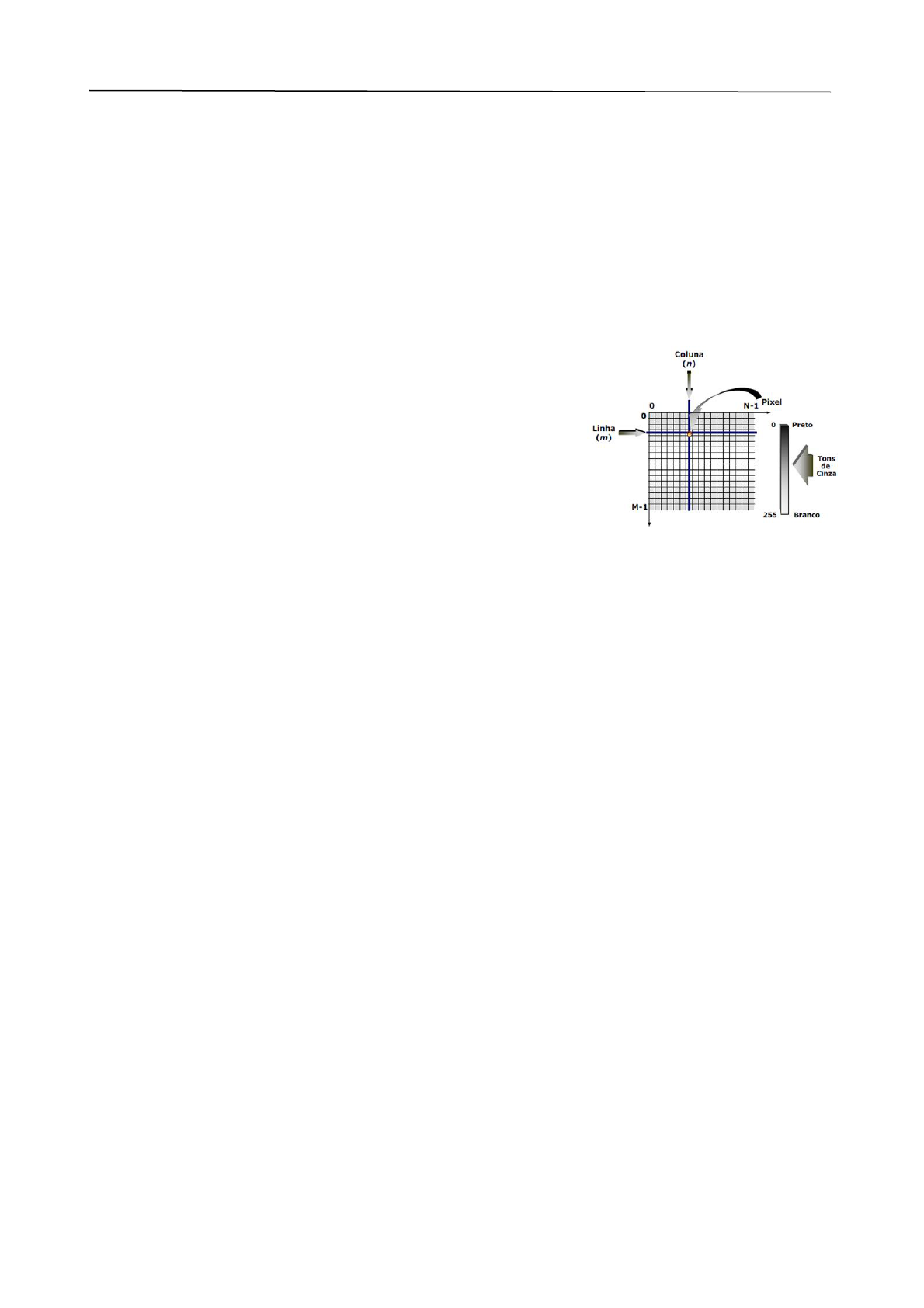 Projeto Integrador III MEDIÇÃO DE TEMPERATURA ATRAVÉS DE VISÃO COMPUTACIONAL Felipe Kissmann 1 , Guilherme Augusto Segat 2 , Renan Felipe do Vale 3 1 IFSC Chapecó, Estudante, felipekissmann@outlook.com 2IFSC Chapecó, Estudante, guilhermesegat@gmail.com ³ IFSC Chapecó, Estudante, renanfelipedovalle@gmail.com Resumo: A proposta do projeto é desenvolver um software capaz de reconhecer um padrão geométrico presente numa imagem em espectro infravermelho e calcular a sua temperatura. Palavras-Chave: Temperatura, Infravermelho, Visão computacional. 1. INTRODUÇÃO Com o avanço da tecnologia a automação vem ganhando cada vez mais espaço em diferentes áreas da indústria, com o objetivo de trazer maior eficiência de produção, além da redução de custos e tempo. Em alguns processos industriais a automação já se torna essencial por substituir um processo repetitivo, como no caso de reconhecimento de objetos, para obter-se uma classificação correta durante a linha de produção. A diferenciação de objetos pode ser dada através do sensoriamento de diferentes características como cor, forma, tamanho, peso, entre outros. Um tipo de sensoriamento muito usado para identificação são as câmeras, que aliadas com um software de processamento de imagem, podem extrair várias informações do que está sendo monitorado. Outro avanço significativo da tecnologia é a capacidade de geração de imagens térmicas, que trouxe inúmeras vantagens em diferentes áreas da indústria, devido ao fato desta conseguir monitorar a temperatura de uma área ou objeto a uma boa distância, sem nenhum tipo de conexão com o mesmo. O problema apresentado para este estudo é a dificuldade de monitoramento da temperatura de um objeto que pode ter sua localização obstruída e está em constante movimento, que é o caso de processos como a rotomoldagem ou linha de produção de uma agroindústria. Para a resolução deste, será desenvolvido um software que possa fazer a análise completa de imagens geradas por uma câmera térmica e ainda apresentar as informações necessárias para o usuário. 2. PROJETO INFORMACIONAL Na concepção e projeto de visão computacional aparecem diversos questionamentos técnicos que precisam ser elucidados para o melhor funcionamento do sistema proposto. Abaixo segue uma breve revisão sobre os principais aspectos a serem observados previamente nessa área. 2.1 Imagem A imagem digital pode ser definida com uma função bidimensional f(x,y) onde x e y são coordenadas de um plano e f é o valor de de intensidade luminosa, cor, brilho ou outra característica ou combinação destas na coordenada especificada (QUEIROZ; GOMES, 2001). Desta forma uma imagem digital é uma matriz de pontos chamados pixels com características visuais capazes de expressar algo inteligível quando combinados e processável por métodos computacionais convencionais. Tal conceito é possível de ser visualizado na imagem abaixo. Figura 1: Representação de uma imagem digital em tons de cinza (QUEIROZ; GOMES, 2001) 2.2 Processamento de Imagens A primeira etapa do processamento de uma imagem consiste na aquisição desta, nesta etapa estão envolvidas câmeras digitais que capturam a radiação eletromagnética e convertem para uma representação digital desta, capaz de ser inteligível por meios computacionais (INPE, 2017). Em seguida, acontece o pré-processamento da imagem, nesta etapa a figura é ajustada a formatos, dimensões, correções de ruídos entre outros processos que visam tornar mais fácil ou mesmo possível as demais etapas do sistema (INPE, 2017). Após o pré-processamento ocorre o processamento digital, neste momento a imagem é realçada de diferentes formas como por exemplo em relação ao contraste de cores e bordas, este passo é importante pois facilita a obtenção de informações sobre a figura (INPE, 2017). Por fim ocorre a extração de informações desta imagem por meio de técnicas de reconhecimento de padrões, cores e demais propriedades e a partir destas informações é possível fazer uma interpretação visual voltada para uma aplicação específica (INPE, 2017). 2.3 Requisitos do cliente Neste tópico, serão expostos os requisitos que possuem maior importância para o usuário final do software. Estes requisitos foram adquiridos em conversa com o professor proponente do projeto. 2.3.1 Reconhecimento de padrão estático ou em movimento. O programa a ser desenvolvido deverá reconhecer um padrão em imagens obtidas por uma Projeto Integrador III câmera térmica, sendo que a posição do objeto poderá variar, representando movimento. 2.3.2 Reconhecimento de temperatura do padrão estabelecido. Além de reconhecer um padrão, o programa deverá monitorar a temperatura de um objeto como um todo, não apenas em um ponto. 2.3.3 Interface para visualização dos dados. Também se faz necessário criar uma interface para que o cliente possa indicar a forma geométrica a ser monitorada. Nessa mesma interface, após calibrado o padrão, será indicado a temperatura do objeto. 3. PROJETO CONCEITUAL 3.1 Estrutura funcional Neste item será retratado algumas das funcionalidades que o software deverá ser capaz de realizar, seguindo uma sequência lógica de execução. 3.1.2 Função Global Para evidenciar o funcionamento do software descrito na estrutura funcional, de forma resumida, apresenta-se a função global do equipamento, conforme o diagrama Diagrama 01: Função Global Basicamente o usuário insere imagens com dados térmicos no software, que calcula a temperatura aproximada do padrão desejado e retorna ao usuário os dados desejados no processo. 3.1.3 Estruturas funcionais alternativas A estrutura funcional tem o objetivo de expor os componentes do software e as fases do processo de funcionamento. No diagrama 02 é possível visualizar o funcionamento do software dividido em quatro etapas principais que se ramificam em outros passos, essa estru