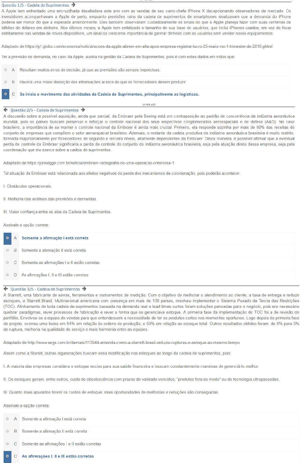 Exercícios 4 (Nota 100 Ano 2018) Cadeia de Suprimentos