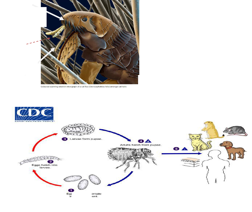 Resumo Parasitologia – Pulga Filo - Arthopoda Classe- insecta Ordem – Siphonaptera Características: Holometabólicos (ovo->larva->pupa->adulto) Podem viver: Sobre a pelagem (Xenopsylla spp, Ctenocephalides ssp) Penetrando sob a pele dos hospedeiros (fêmeas fertilizadas de Tunga spp) ; Exercer hematofagia (Pulex irritans ); Morfologia: Cabeça, Tórax, Abdômen e Patas Ctenídio pronotal – ajudam as pulgas a se manterem retidas entre os pelos/penas de seus hospedeiros; Aparato bucal: a) Palpos: função essencialmente sensorial; b) Lancetas maxilares: cortam a pele semelhante a uma serra; c) Epifaringe: penetra um pequeno vaso sanguíneo; Ctenocephalides ssp LANCETAS MAXILARES PALPOS CTENÍDIO PRONOTAL CICLO HOLOMEABÓLICO Ovos e larvas são encontrados no ambiente enquanto o adulto nos animais ADULTO LARVA OVO PUPA ESPÉCIES Xenopsylla spp (RATOS) Enorme importância na saúde pública por ser o mais importante vetor da peste bubônica (praga) e do tifo murino fêmea: Espermateca super pigmentada macho (CÃES E GATOS) Tunga spp (SUÍNOS, HOMEM eventualmemte) É o‘bicho-de-pé’,também chamado de‘bicho-de-porco’ Apesar de ambos ambos os sexos serem hematófagos, apenas a fêmea penetra nos tecidos Após a completa penetração, a maior parte do seu corpo estará enterrada na epiderme, apenas o ânus, os órgãos copulatórios e 4 orifícios respiratórios ( stigmata ) permanecerão fora; A fêmea alimenta-se de líquido tissular e sangue, se enchendo de ovos, adquirindo uma forma hipertrofiada, denominada meosoma ; Pulex irritans (HOMENS) Ctenídeo genal e pronotal ausentes; É capaz de transmitir a peste bubônica, entretanto raramente se parasita roedores; Macho: edeago/pênis Fêmea: espermateca