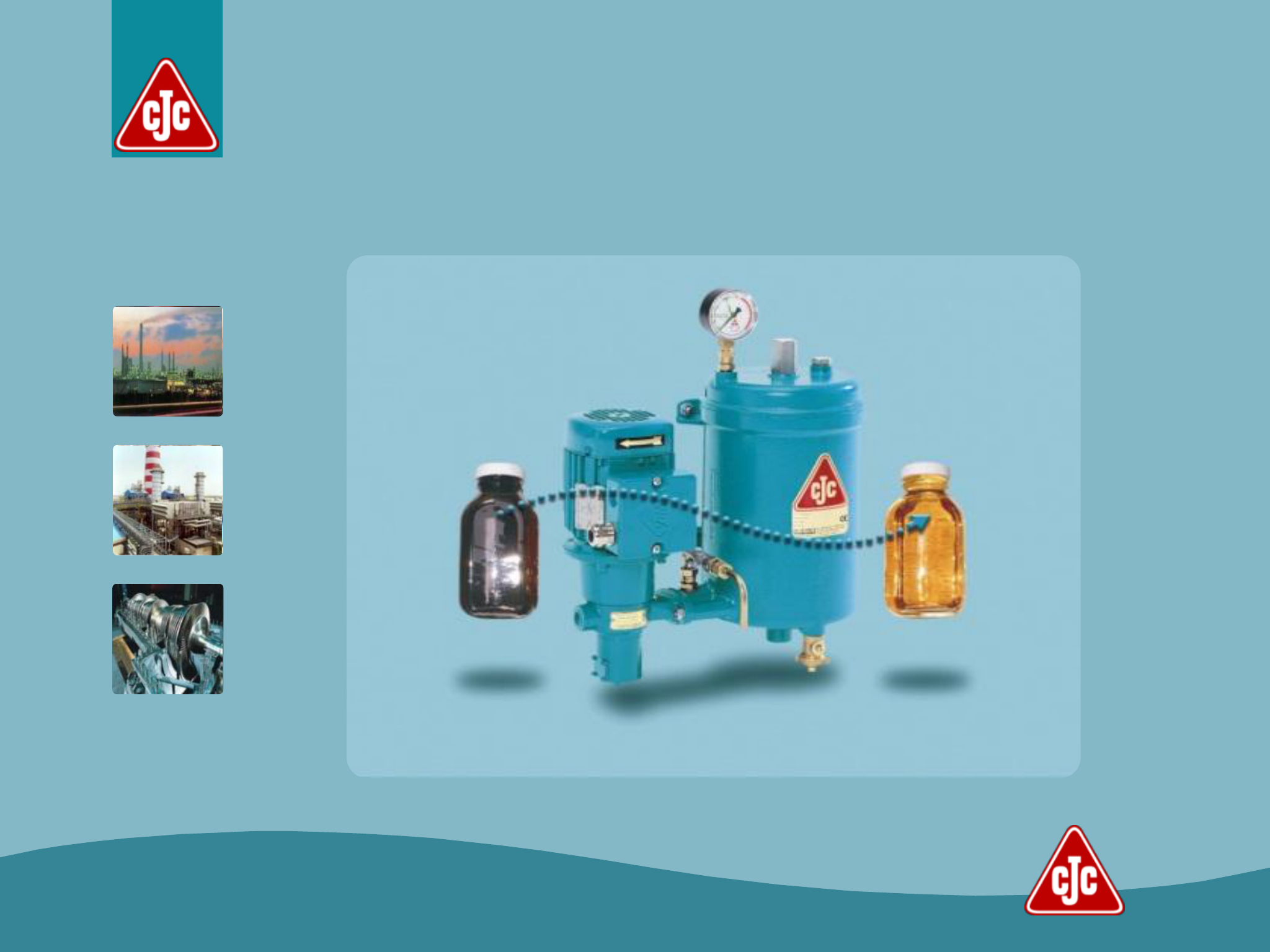 CLEAN OIL BRIGHT IDEAS www.cjc.dk © CC JENSEN A/S – IPS, Cannes- 20 -22th Feb 2013 CJC Off-line Oil Filtration Systems Power Industry Carl Christian Jensen 1906-1972 Carl Aage Jensen Henrik Søren Christian CLEAN OIL BRIGHT IDEAS C.C. Jensen A/S, a Danish family owned company PRODUCTS APPLICATIONS WHY CJC COMPANY VARNISH VRU www.cjc.dk CLEAN OIL BRIGHT IDEAS PRODUCTS APPLICATIONS WHY CJC COMPANY VARNISH VRU © CC JENSEN A/S – IPS, Cannes- 20 -22th Feb 2013 HDU Fine Filter w. BG, B or A filter inserts for particle, sludge and limited water removal, 3 micron fine filtration HDU 27/27 Flow: 120 – 250 l/h Gear oil: 100 – 1000 l Hydraulic: 500 – 3000 l •Gears oil •Compressor oil •Hydraulic oil •Turbine control oil •Engine lube oil •Generator lube oil •Gas turbine lube oil •Tap changer •Cooling tower gears Price: 3.000 – 6.000 € HDU 27/54 Flow: 200 – 600 l/h Gear oil: 300 – 2000 l Hydraulic: 1000 – 6000 l •Gears oil •Compressor oil •Hydraulic oil •Engine lube oil •Generator lube oil •Gas turbine lube oil •Coal mill gears Price: 3.500 – 7.500 € HDU 27/108 Flow: 400 – 1250 l/h Gear oil: 600 – 4000 l Hydraulic: 2000 – 10000 l •Gears oil •Compressor oil •Hydraulic oil •Engine lube oil •Generator lube oil •Gas turbine lube oil Price: 4.500 – 10.500 € HDU 2x27/108 Flow: 800 – 2600 l/h Gear oil: 2000 – 8000 l Hydraulic: 4000 – 20000 l •Hydraulic oil •Lubrication systems •Gas turbine lube oil •Heat transfer oil Price: 13.000 – 25.000 € HDU 427/108 Flow: 800 – 5200 l/h Gear oil: 4000 – 15000 l Hydraulic: 10000 – 40000 l •Engine & Generator lube oil •Gas turbine lube oil •Quench oil •Biodiesel (in comb. w. Desorber) •Transfer diesel filtration Price: 9.000 – 25.000 € CLEAN OIL BRIGHT IDEAS PRODUCTS APPLICATIONS WHY CJC COMPANY VARNISH VRU PTU2 27/27 Flow: 120 – 250 l/h Gear oil: 100 – 1000 l Hydraulic oil: 500 – 3000l •Thrusters •Stern Tubes •Gear oil •Steam turbine lube oil •Deck hydraulics of cranes and winches •Feed pumps Price: 4.500 – 12.000 € PTU3 27/108 Flow: 400 – 1250 l/h Gear oil: 600 – 4000 l Hydraulic oil: 2000 – 10000 l Diesel: 1250 l/h •Hydraulic oil •Feed pumps •Steam turbine lube oil •Diesel filtration •Marine MGO/MDO - PTU1 Price: 10.000 – 17.500 € PTU3 2x27/108 Flow: 800 – 2600 l/h Gear oil: 2000 – 8000 l Hydraulic oil: 4000 – 20000 l Diesel: 2600 l/h •Hydraulic oil •Steam turbine lube oil •Single shaft ST+GT lube oil •Diesel filtration (Storage tanks) Price: 20.000 – 27.500 € PTU3 4x27/108 Flow: 2600 – 7500 l/h Gear oil: 4000 – 16000 l Hydraulic oil: 20000 – 60000 l Diesel: 7500 l/h •Hydraulic oil •Steam turbine lube oil •Single shaft ST+GT lube oil •Diesel filtration (Storage tanks) Price: 32.500 - 47.500 € CLEAN OIL BRIGHT IDEAS PTU Filter Separators w. BLAT, BLA or F filter inserts for particle, sludge, bacteria and water removal, 3 micron fine filtration and water removal PRODUCTS APPLICATIONS WHY CJC COMPANY VARNISH VRU Desorbers to remove water from emulsions, synthetic ester based oils, biodegradable oils and high viscosity oils . Desorber D10 •Thrusters •Stern Tubes •Ester based synthetic fluids •Biodegradable oil •Smaller gears •Hydraulic oil Water removal: 0.2 L/h Volume: < 2000 L Price: 15.000€ Desorber D30 •Lube oil in Paper Mills •Lube oil in Steel Mills •Hydraulic applications •Ester based synthetic fluids •Waste Oil Applications •Bio-diesel Water removal: 2 L/h Volume: < 5000 L Price: 25.000€ Desorber D40 •Lube oil in Paper Mills •Lube oil in Steel Mills •Hydraulic applications •Ester based synthetic fluids •Waste Oil Applications •Bio-diesel Water removal: 8 L/h Volume: < 25000 L Price: 48.000€ Desorber D88 •Lube oil in Paper Mills •Lube oil in Steel Mills •Hydraulic applications •Ester based synthetic fluids •Waste Oil Applications •Bio-diesel Water removal: 15 L/h Volume: < 50000 L Price: 80.000€ CLEAN OIL BRIGHT IDEAS PRODUCTS APPLICATIONS WHY CJC COMPANY VARNISH VRU Special Filter units for specific applications HPS 27/27 High Pressure HDU 15/12 Low volume HD HDU 15/25 Heavy duty HDU 15/25 by-pass HTO 2x27/108 Heat transfer oil VRU – Varnish Removal Unit for gas and steam turbine oil GFU – Gear Flushing Unit for gear lube oil CLEAN OIL BRIGHT IDEAS PRODUCTS APPLICATIONS WHY CJC COMPANY VARNISH VRU Siemens Wind Energy – Brande • Siemens Bonus 600 – HDU 15/25 • Siemens Bonus 1300 – HDU 27/27 • SWT 2.3 - HDU 27/27 • SWT 3.6 – HDU 27/54 CLEAN OIL BRIGHT IDEAS VARNISH PRODUCTS APPLICATIONS WHY CJC VRU COMPANY CJC HDU Off-line Fine Filter HDU on Siemens Wind turbines Siemens Industrial Turbomachinery, Finspång • Siemens SST 500 – PTU3 27/108 GP – EPW • Siemens SST 700 - PTU3 2 x 27/108 GP - EPW • Siemens SST 800 - PTU3 2 x 27/108 GP - EPW • Siemens SGT 500 - HDU 27/108 Siemens Industrial Turbomachinery, Finspång CJC Filter Separator PTU3 2x27/27 GP-EPW on Siemens SST 800 at CSP – Extresol, Spain 12 Thermal Power Plants CJC HDU 427/108 GP – EPT and PTU1 27/108 P - EPW Flushing a Steam Turbine at EDP Aboño C.C.JENSEN IBÉRICA, S.L. - 14 Hydro Power Plants CJC Fine Filter HDU 15/25 PV on hydraulic control of hydro turbine CJC Filter Separator PTU3 27/108 GP – EH1PW on hydro turbine lubrication Nuclear Power Plants CJC Filter Separator PTU3 5x27/108 N - EPWT on Steam Turbine at Nuclear Power Plant Vandellos C.C.JENSEN IBÉRICA, S.L. - 19 Combined Cycle Power Plants CJC Desorber D30 on EHC – Electro hydraulic control with servo valves for control of GE D11 steam turbine at Gas Natural Aceca CJC VRU – Varnish Removal Unit on Siemens 501F Gas Turbine at Calpine Delta Energy Center, Pittsburg, CA www.cjc.dk Oil contamination – the mayor bearing failure root cause CLEAN OIL BRIGHT IDEAS VARNISH PRODUCTS APPLICATIONS WHY CJC VRU COMPANY © CC JENSEN A/S – IPS, Cannes- 20 -22th Feb 2013 ww