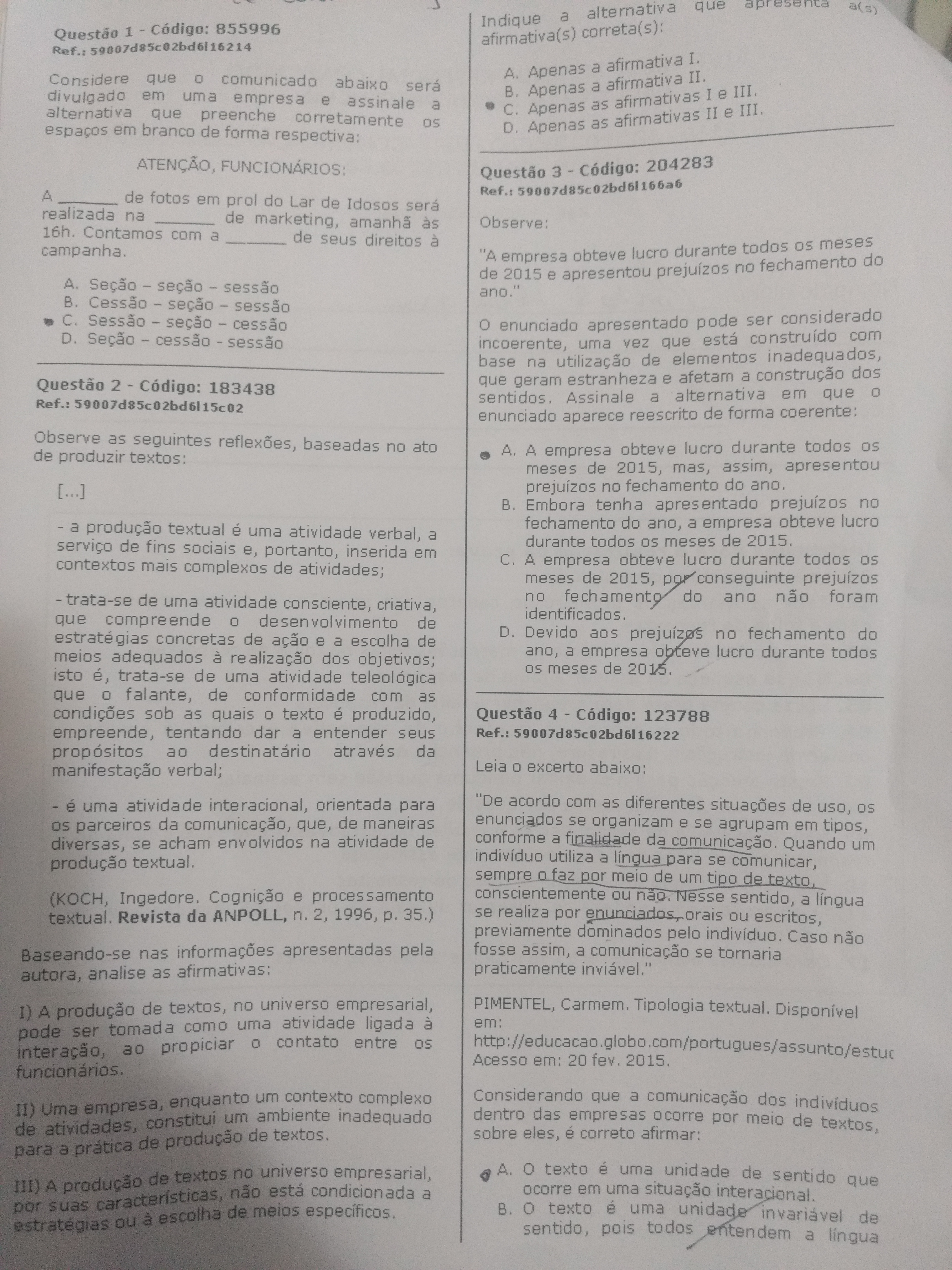 om base nesta informação analise as asserções abaixo: I. Qualquer sistema de signos (não só vocais ou escritos, como também visuais, fisionômic...