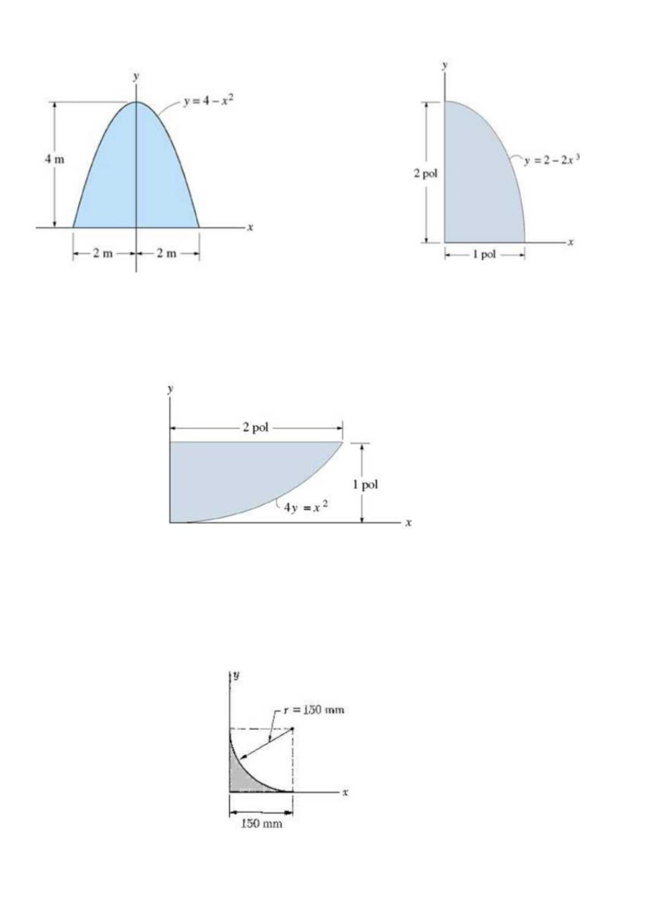 2a Lista de Exercícios de Mecânica dos Materiais 1) Determine o momento de inércia da área sombreada mostrada na figura abaixo, em relação ao eixo y. a) b) 2) Determine o momento de inércia da área sombreada mostrada na figura abaixo, em relação ao eixo x e y 3) Determine o momento de inércia da área sombreada mostrada na figura abaixo, em relação ao eixo y. 4) Determine o momento de inércia da área de seção reta da viga mostrada na figura em relação ao eixo x' que passa pelo centroide. Despreze as dimensões de todas as cabeças dos rebites, R, nos cálculos. Os valores padronizados para área, momento de inércia e localização do centroide C de uma das cantoneiras são indicados na figura. 5) Determine o momento de inércia da área sombreada mostrada na figura em relação ao eixo x e y. 6) Determine os momentos de inércia da área sombreada mostrada na figura em relação aos eixos x e y 7) Determine IX e Iy da seção reta da viga mostrada na figura 8) Determine o produto de Inércia da área da seção transversal da viga em relação aos eixos xy 9) Determine o produto de Inércia da área da seção transversal da viga em relação aos eixos xy, que tem sua origem no centroide. 10) Determine pelo método analítico e utilizando o círculo de Mohr os momentos de inércia lu, lv e Puv da área de seção transversal da viga. Considere que θ = 45° 11) Utilizando o círculo de Mohr determine os momentos principais de inércia da área da seção transversal da viga em relação aos eixos principais que tem sua origem localizada no centróide C. Considere que todas as quinas são quadradas para os cálculos.