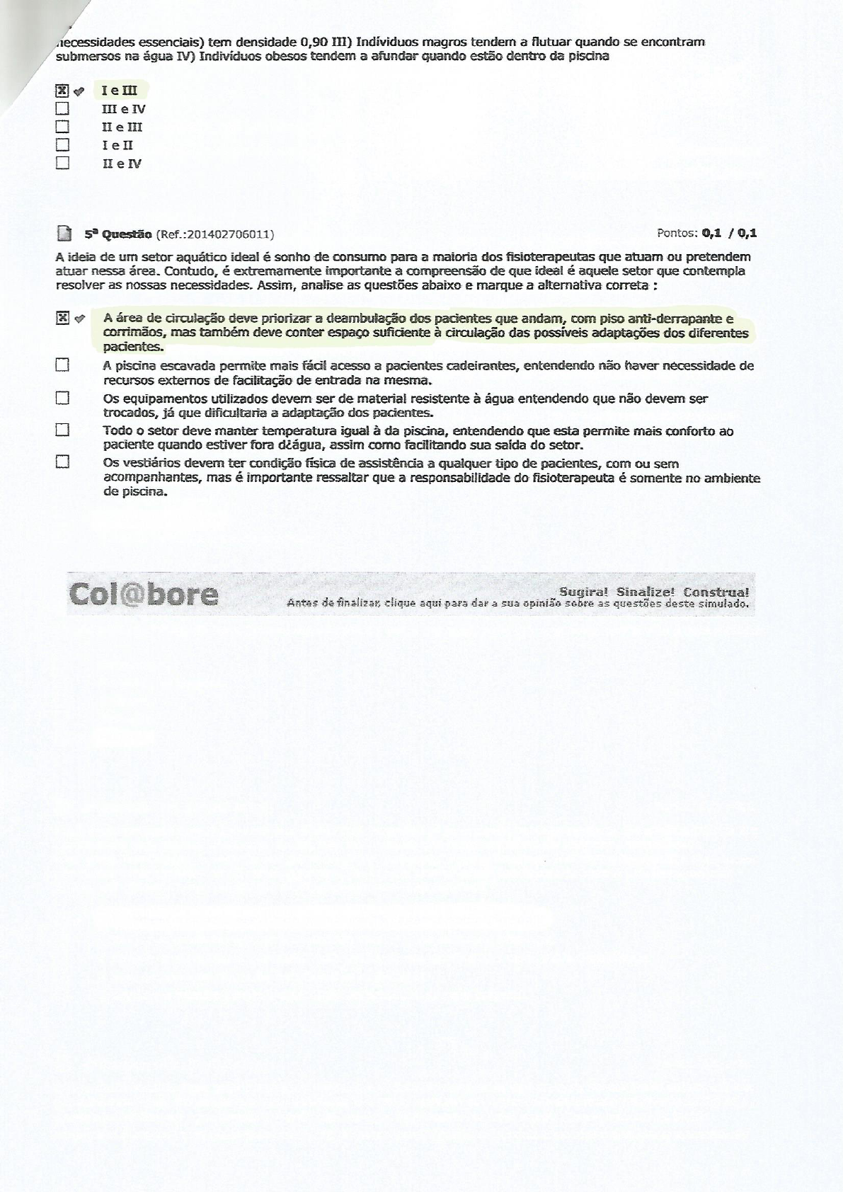Tendo como base a “Resolução COFFITO nº 443/2014” que disciplina a especialidade profissional de Fisioterapia Aquática, todas as afirmativas abaixo...